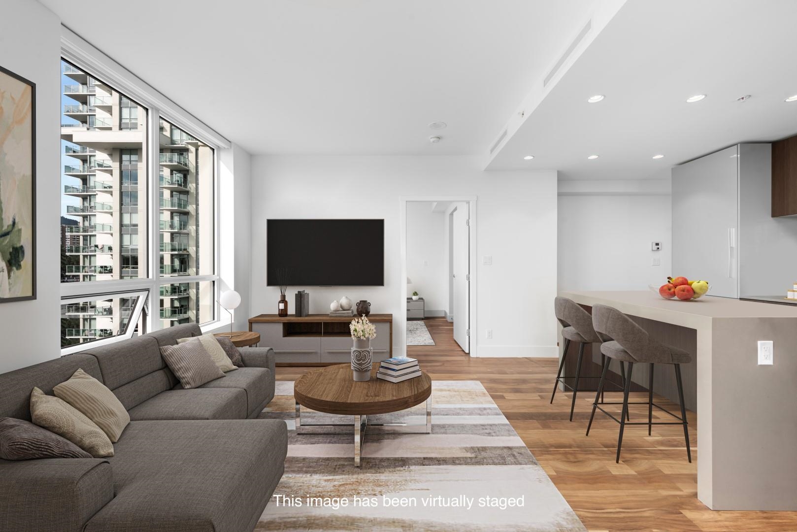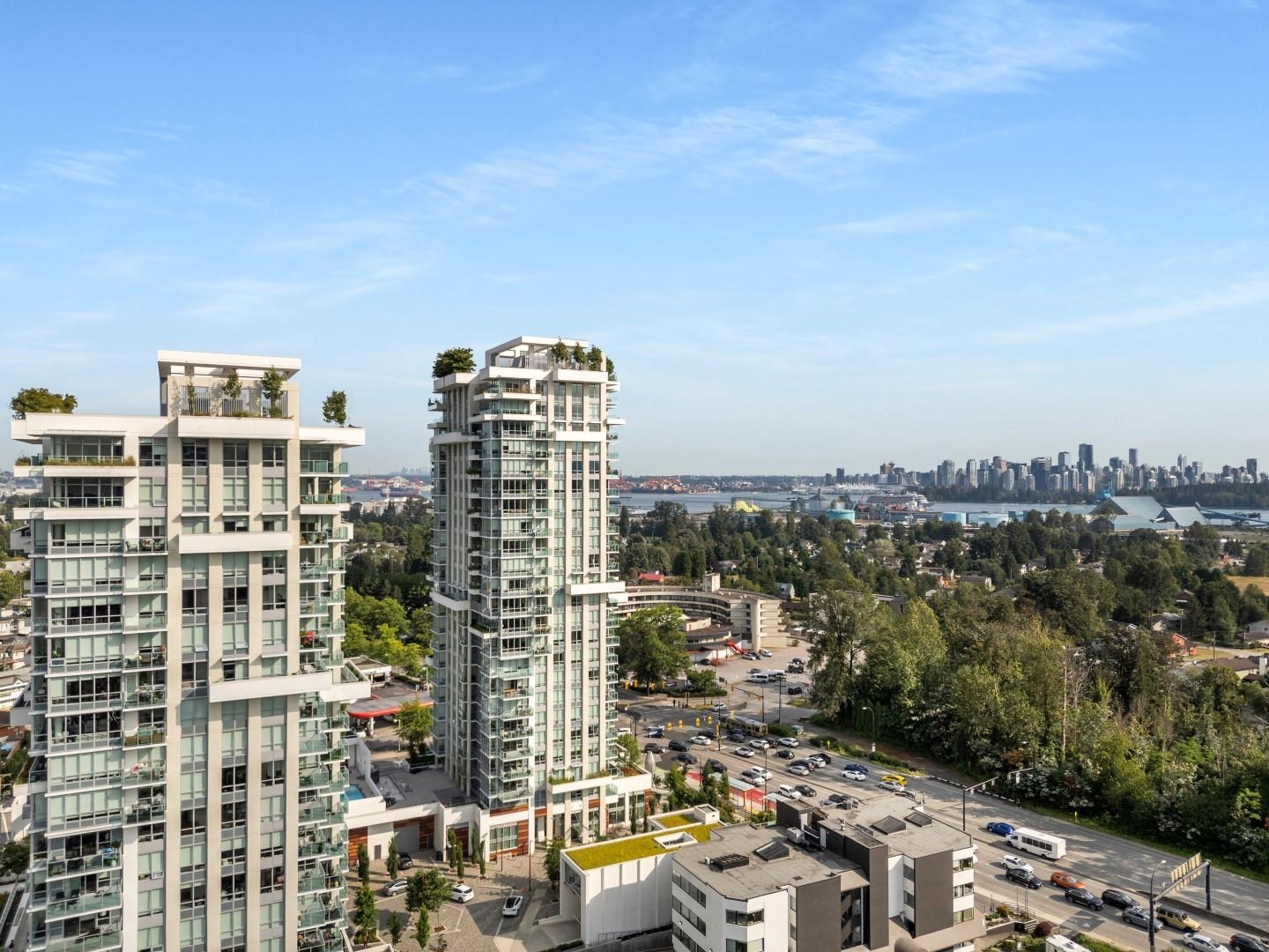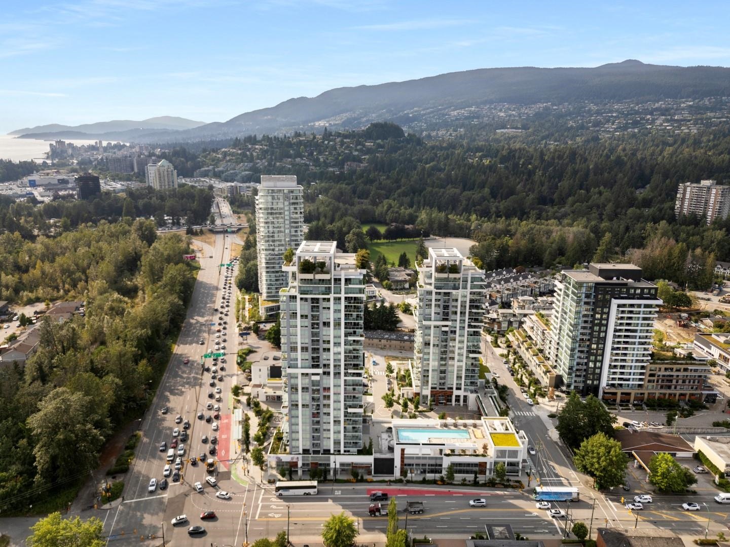 This sophisticated 2-bedroom, 2-bathroom corner unit at Park West in Lions Gate Village offers 920 square feet of refined space with stunning views of the North Shore mountains and Lions Gate Bridge. The home features hardwood floors, a high-end kitchen with Miele appliances, and an open den/flex room. Residents enjoy resort-style amenities, including an outdoor pool, fitness center, spa room, and secure underground parking with EV charging. Ideally located near Park Royal Shopping Centre and scenic Capila...