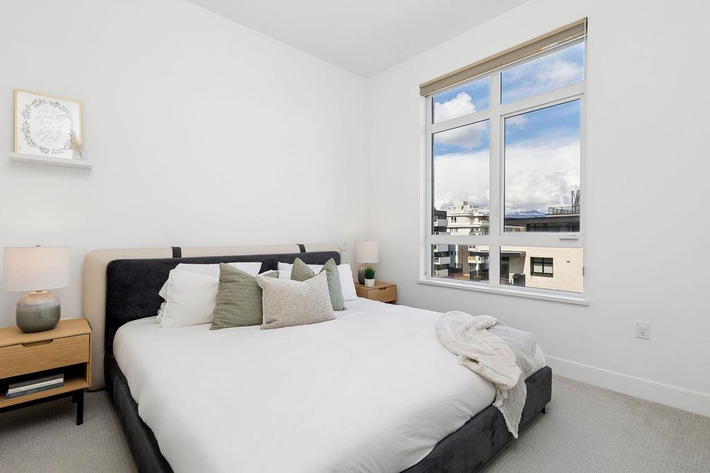 Welcome to this bright corner 2 BED + DEN, 2 BATH home in JAMES WALK by MOSAIC. A LEED Gold building, this home features soaring 10FT ceilings, radiant in-floor heating, and stunning mountain views. Open-concept living with chef’s kitchen incl. Bertazzoni gas range, quartz counters & 36” Fisher & Paykel fridge. Oversized covered balcony is perfect for soaking in the majestic mountain views. Separated bedrooms offers ultimate privacy, and primary suite offers walk-through closet & spa-like ensuite features b...