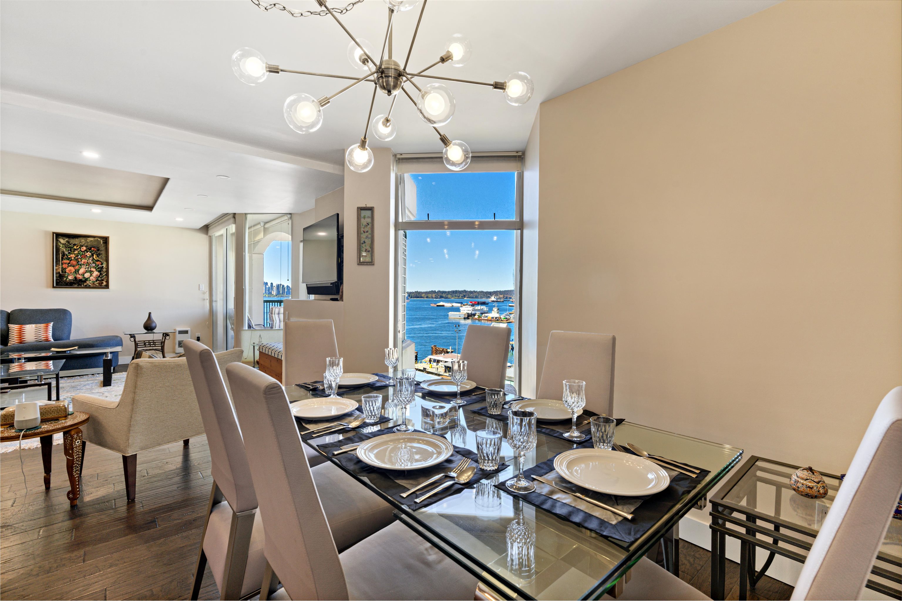 Spectacular WATERFRONT condo that features a full UNOBSTRUCTED South West PANORAMIC VIEW of the OCEAN & downtown Vancouver and North shore mountains. Split on two levels with 2 entrances boasts over 1800sqft Bosa built condo has 3 bedrooms upstairs. A large den which can easily convert into another bedroom or perfect work area. Truly open layout living room & elegant finishes of this condo. BEAUTIFULLY UPDATED the home features gorgeous hardwood floors & fully updated kitchen. Plenty of storage here plus ma...