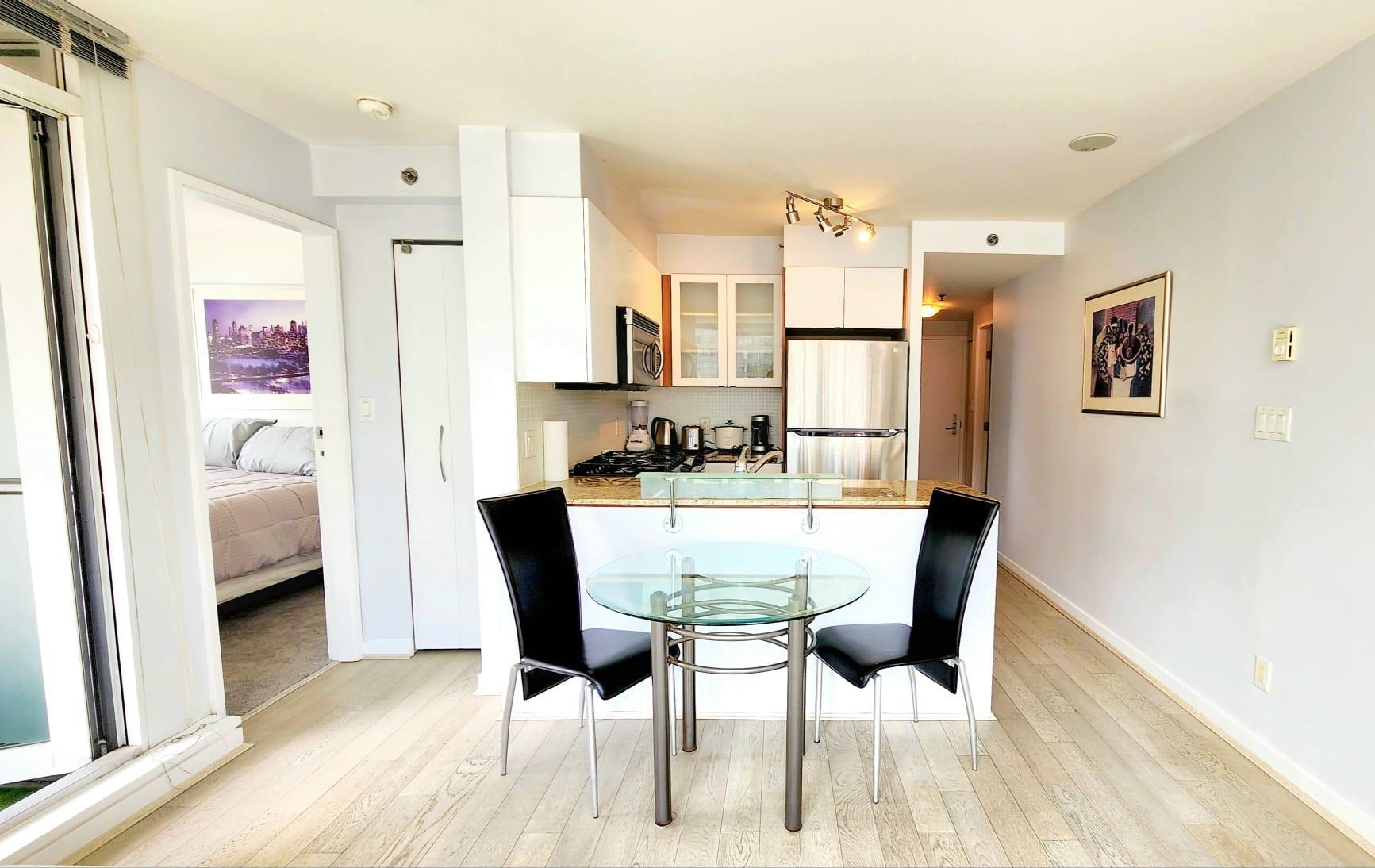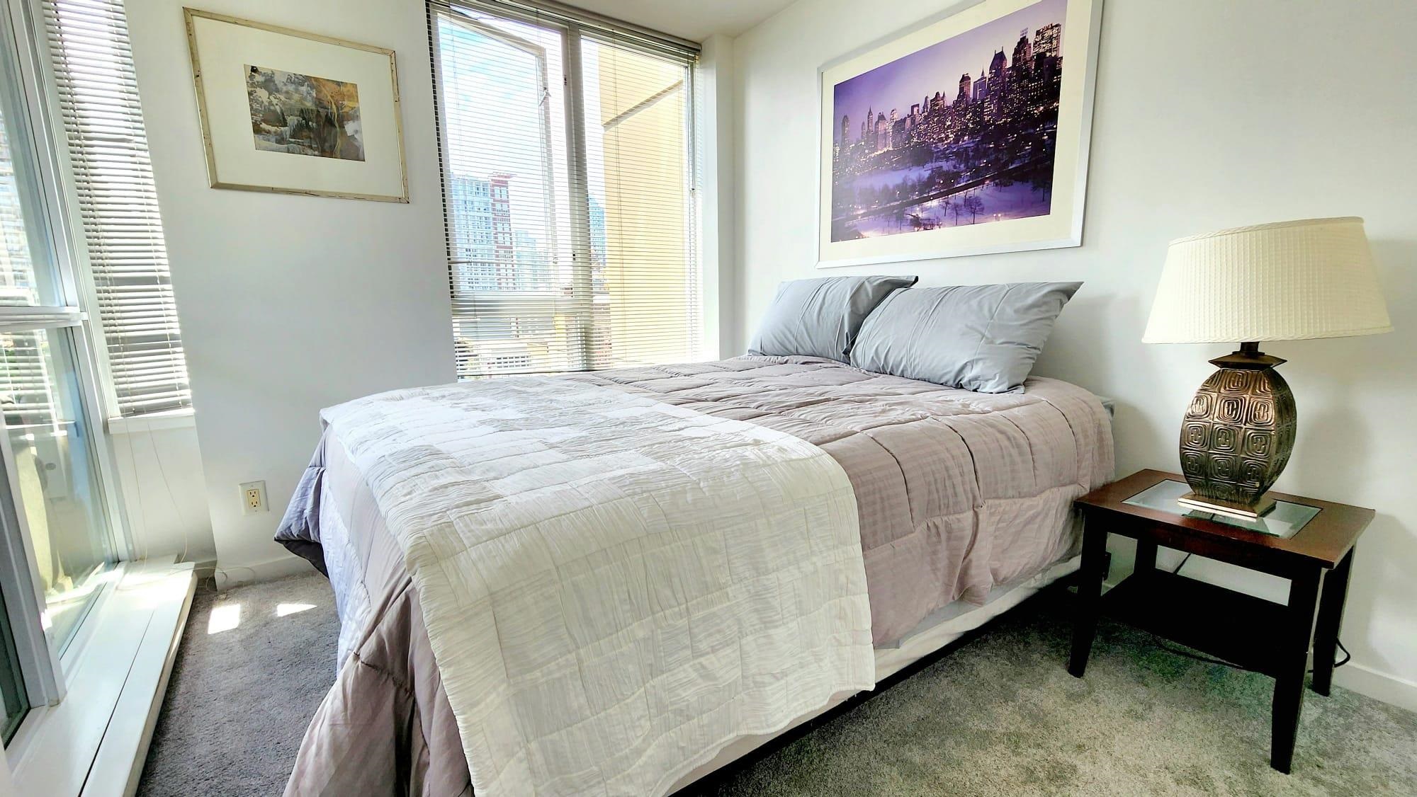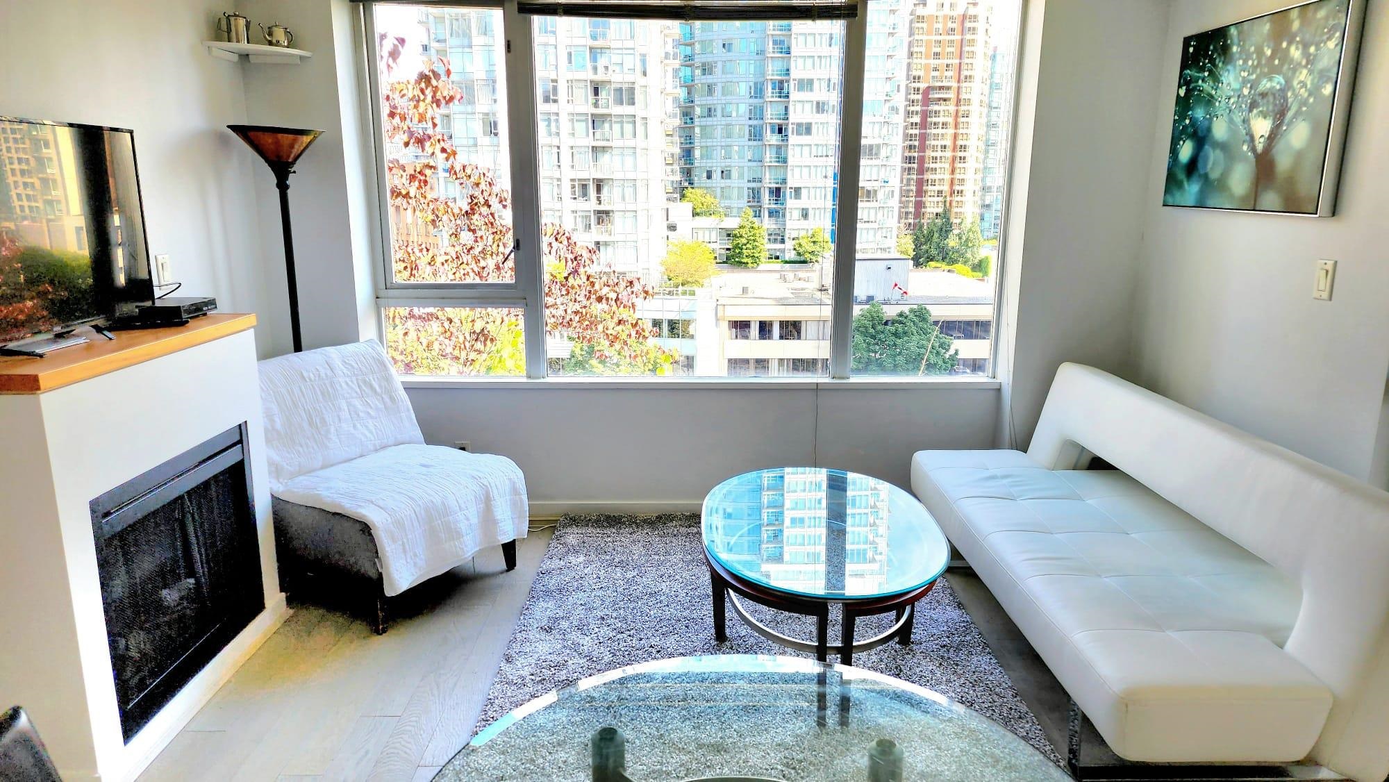 Located in the heart of Downtown Vancouver at 822 Seymour and the corner of Robson st. Beautiful SE facing 660 sqft corner unit, in a smaller concrete bldg. 1 Bdrm + den + outdoor covered balcony Queen size bed, and a sofa that folds down for an overnight guest. Easy to show and well looked after bldg and unit 1 underground parking spot, In suite washer/dryerGym and common patio,gas stove, Covered outdoor balcony, Laminate floors throughout Skytrain stations to both Airport and Everywhere else are just a ...