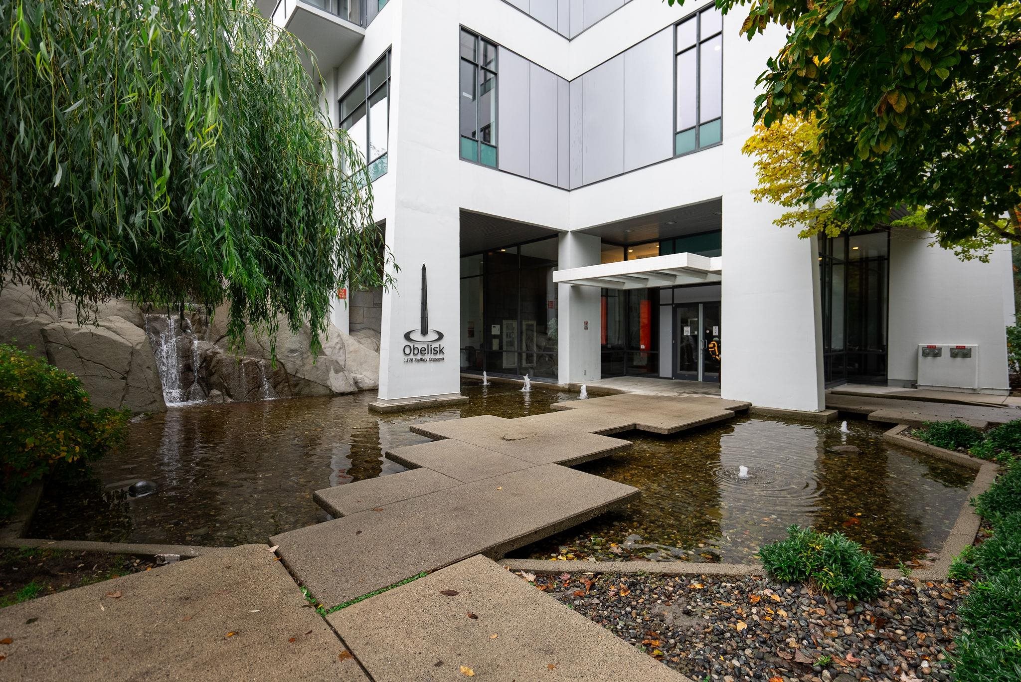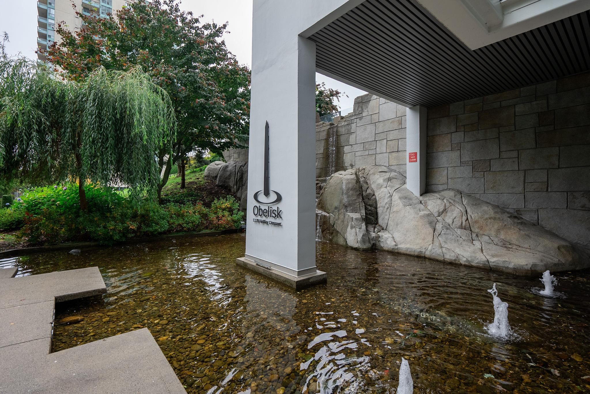 Welcome to Obelisk – Steps to SkyTrain, schools, parks, recreation & Coquitlam Centre with all its shops, dining & everyday amenities—yet perfectly tucked away for peace & quiet! Bright NW corner 1-bed + den with mountain & city views. Modern updates include laminate floors, paint & lighting. Features open-concept layout with cozy fireplace, kitchen eating bar, spacious closets & in-suite laundry. Building offers 3 elevators, gym, sauna, party room with large patio, car wash, bike room, lots of visitor park...