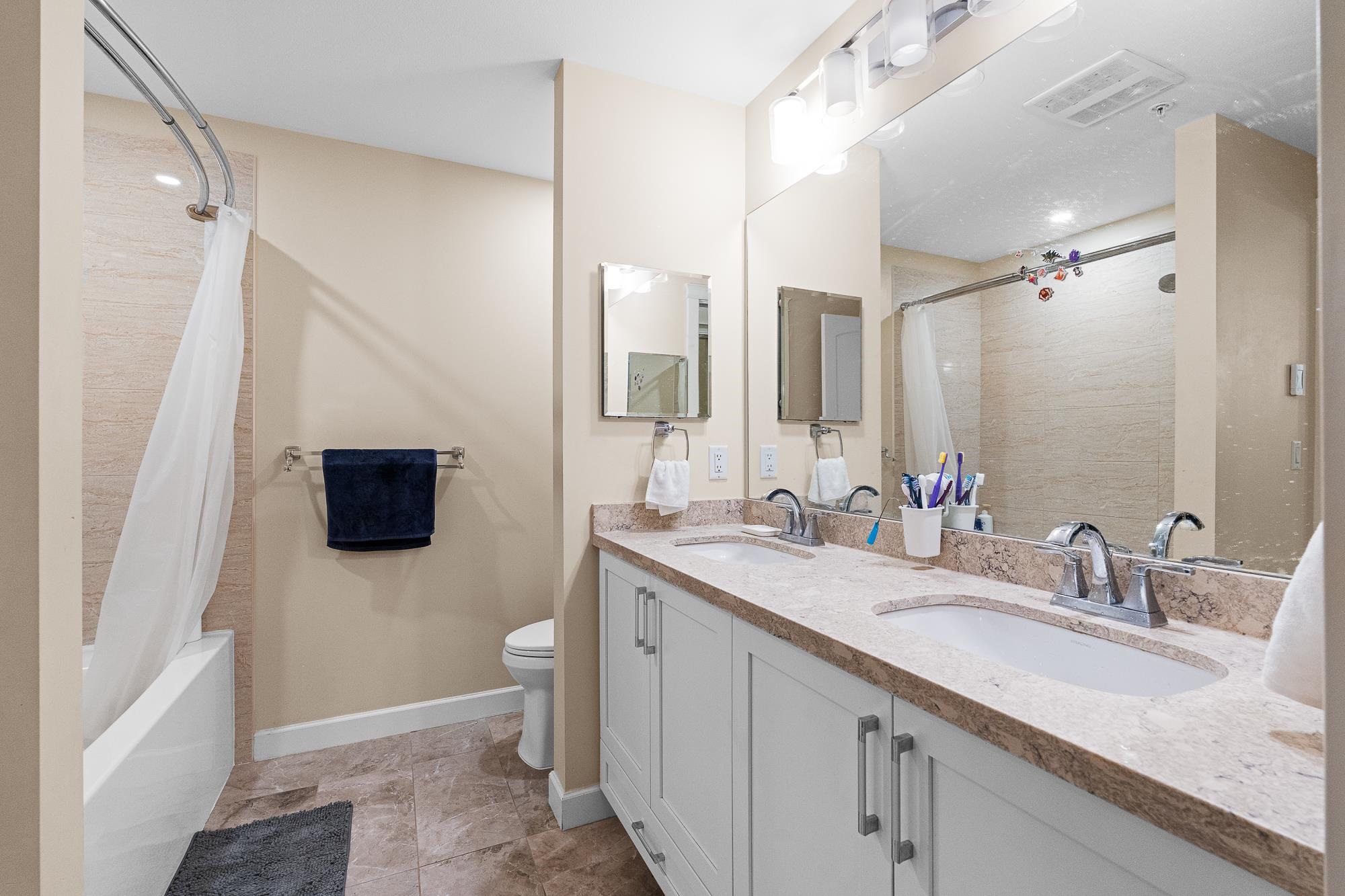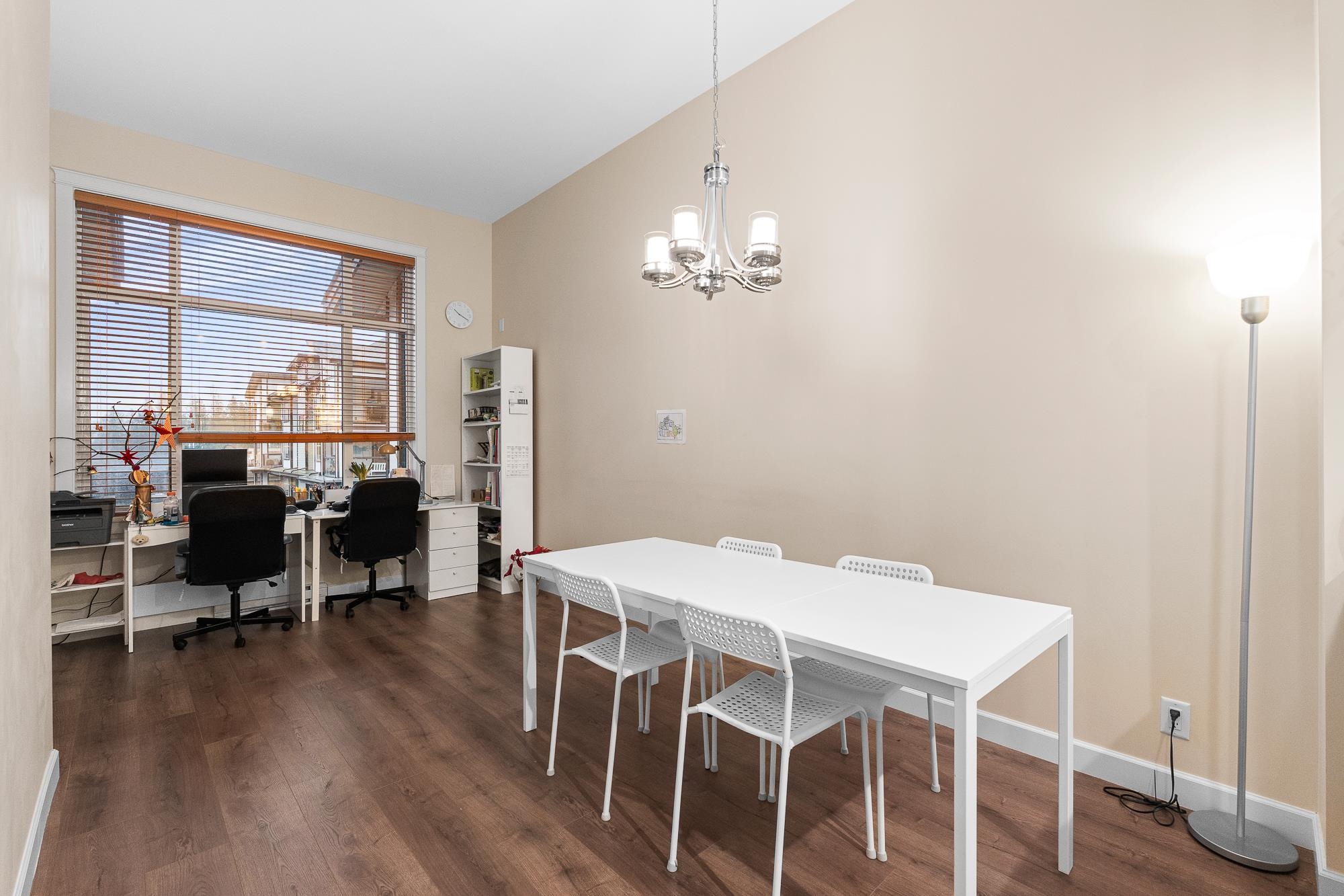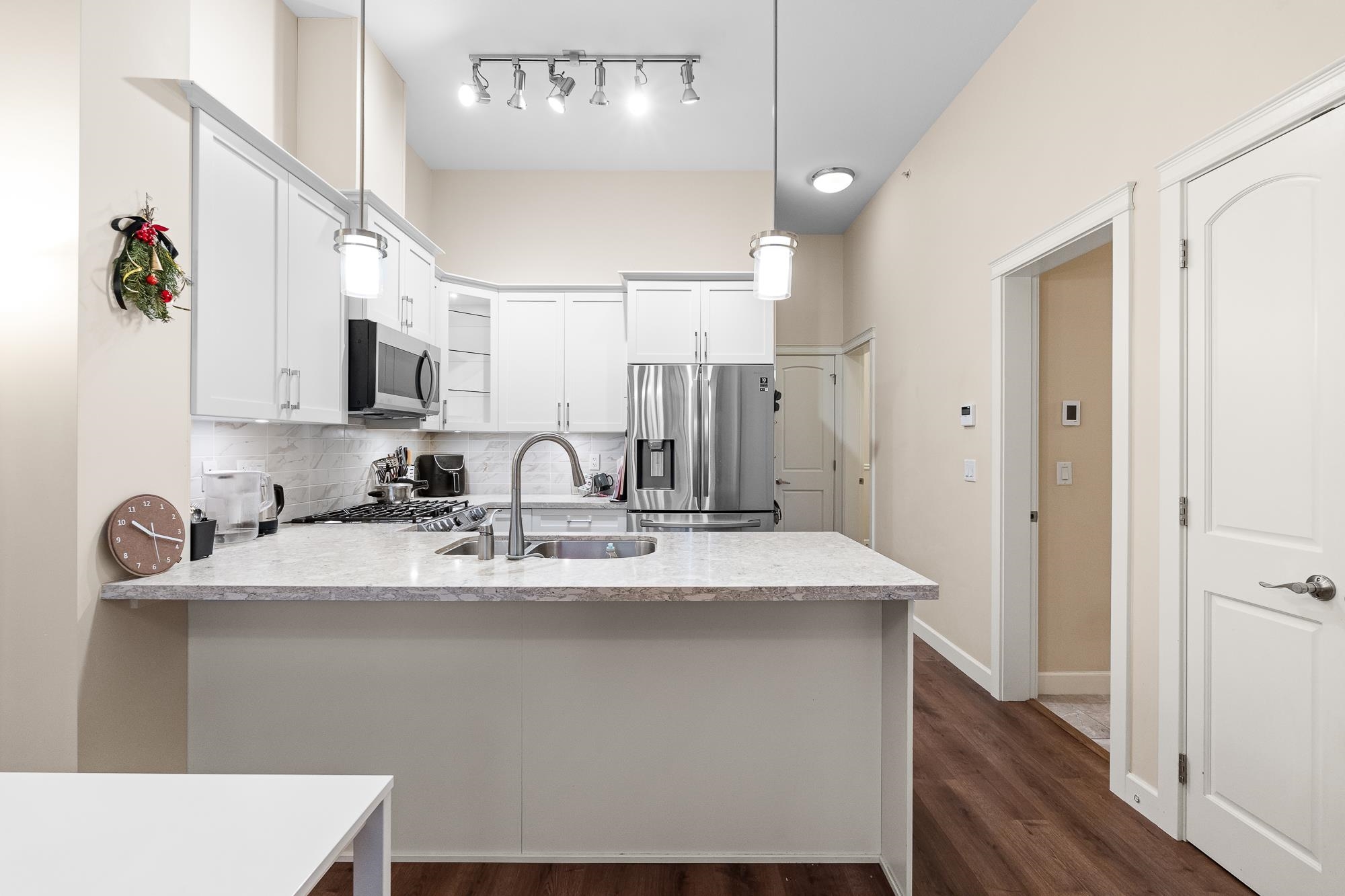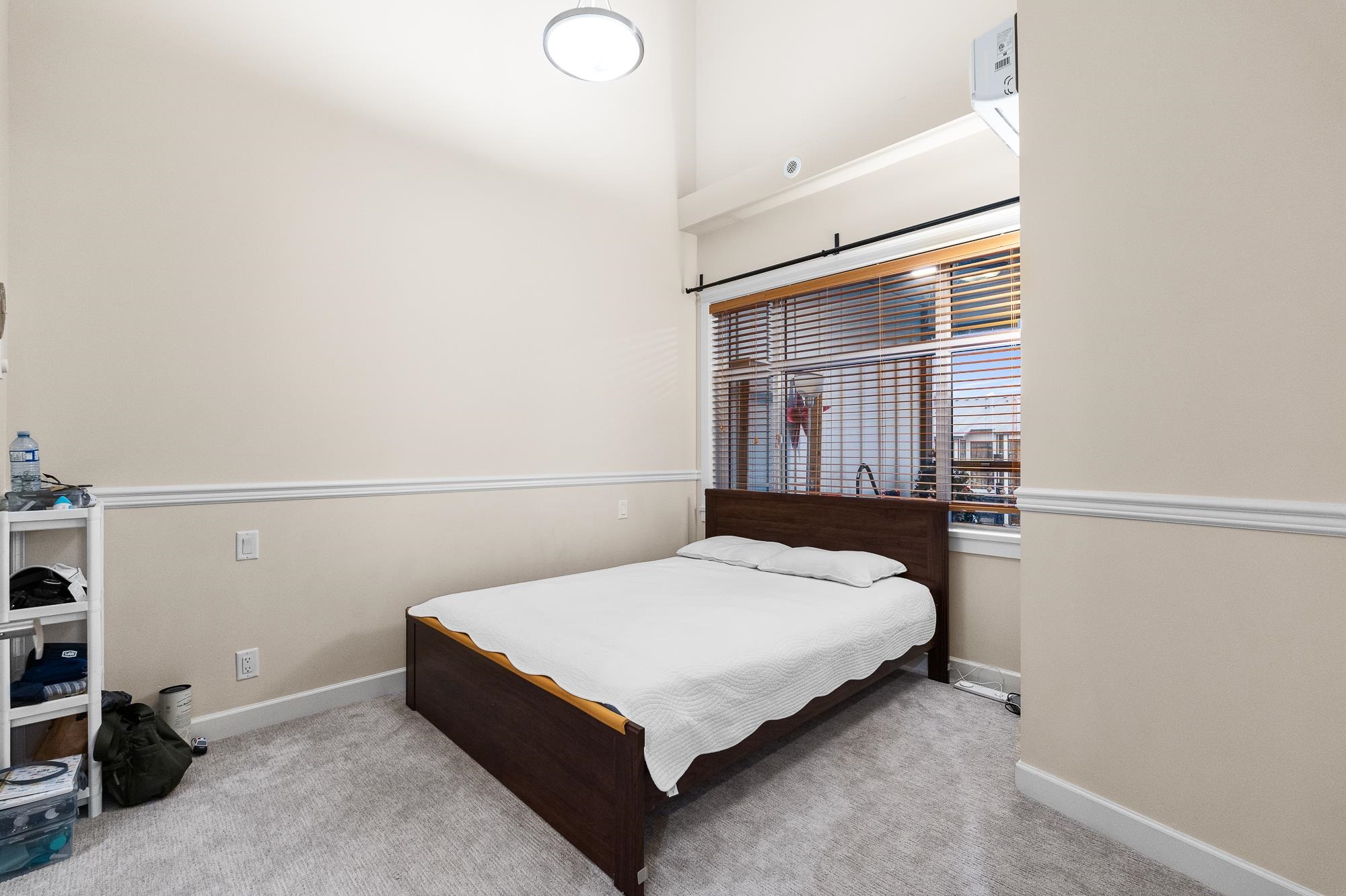Beautiful Yorkson Park Central home featuring 2 bedrooms + den, 1 bathroom, and an east-facing, unobstructed top-floor view. This unit offers high ceilings, an open-concept living space, and a versatile enclosed solarium/balcony ideal for year-round use and BBQs. The kitchen is equipped with stainless steel appliances, gas stove, and premium finishes. Enjoy air-conditioning in all rooms with a high-efficiency heat pump, plus new carpet throughout. Low strata fees include hot water and gas. Comes with 2 par...