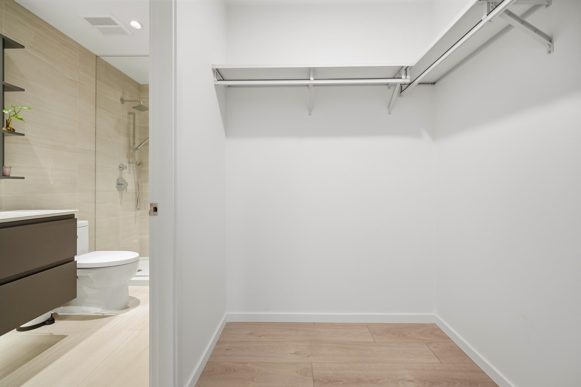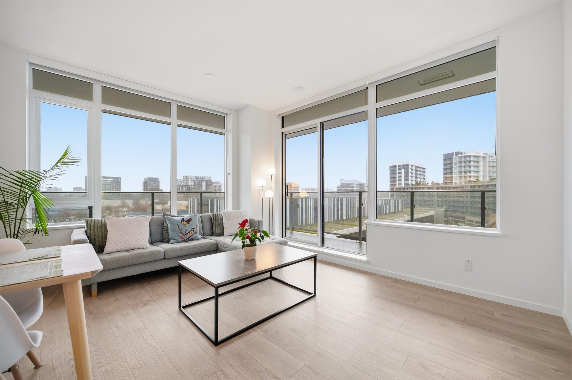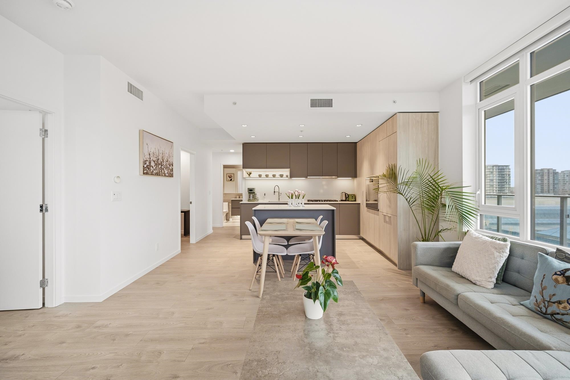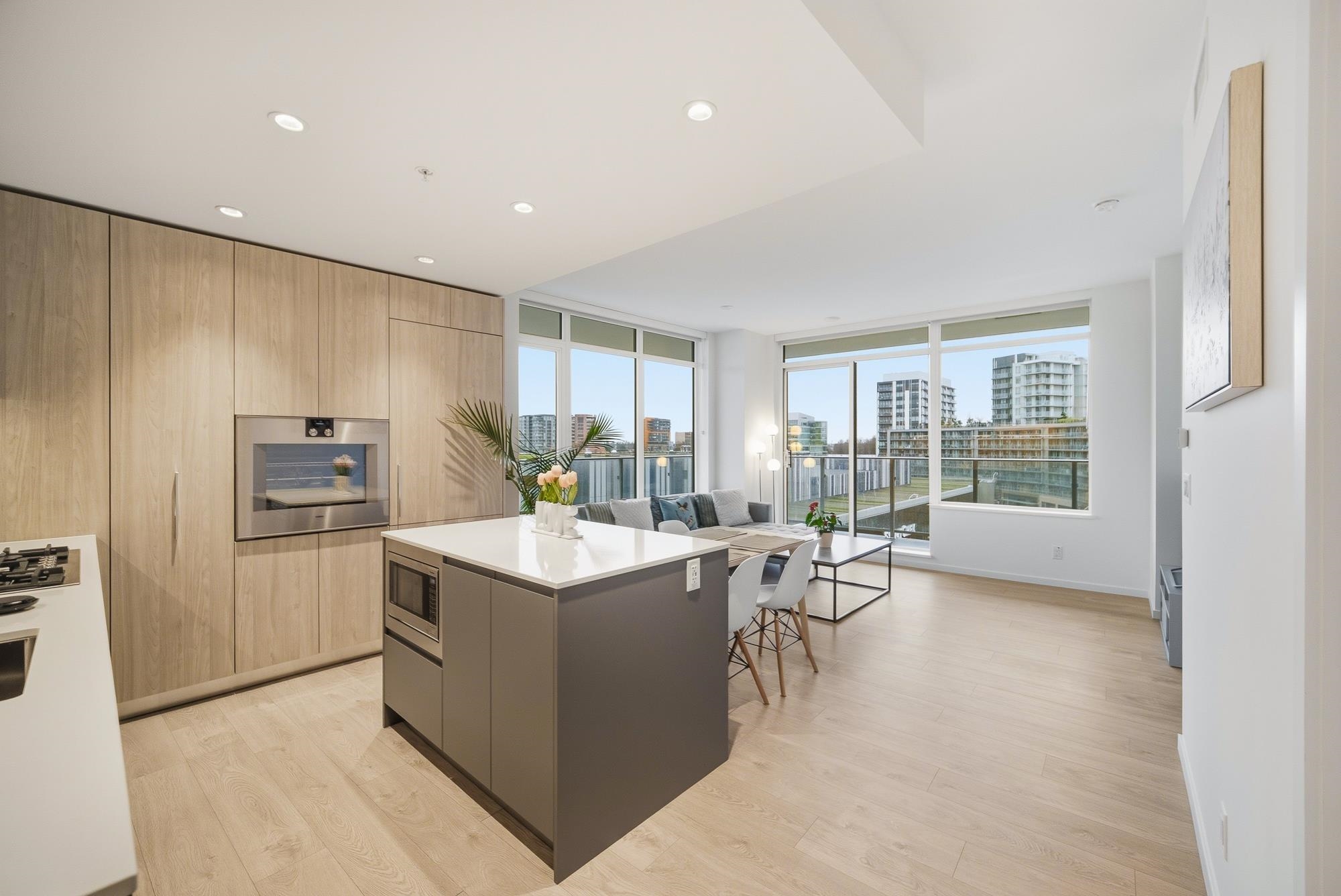 Move-in ready home at CF Richmond Centre by Cadillac Fairview & SHAPE. This SE facing corner unit home features 2 bed, 2 bath + den with expansive windows that flood the space with natural light. The oversized living area easily accommodates full-sized furniture, complemented by 9-foot ceilings and a bright open-concept layout. Kitchen is equipped with integrated Gaggenau appliances, a generous island, imported Italian cabinetry, and a sleek single-slab backsplash.Unit features air conditioning, along with ...