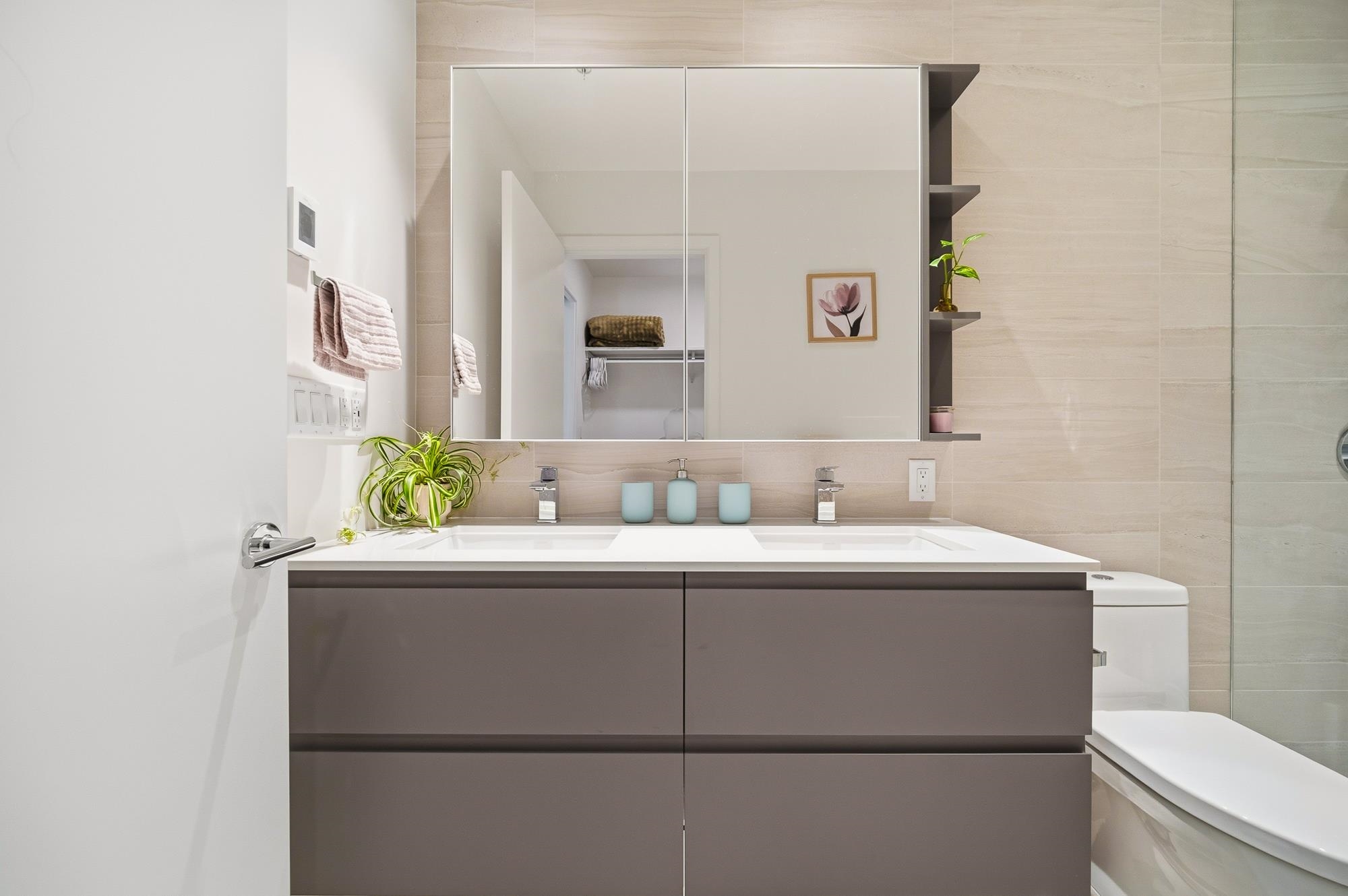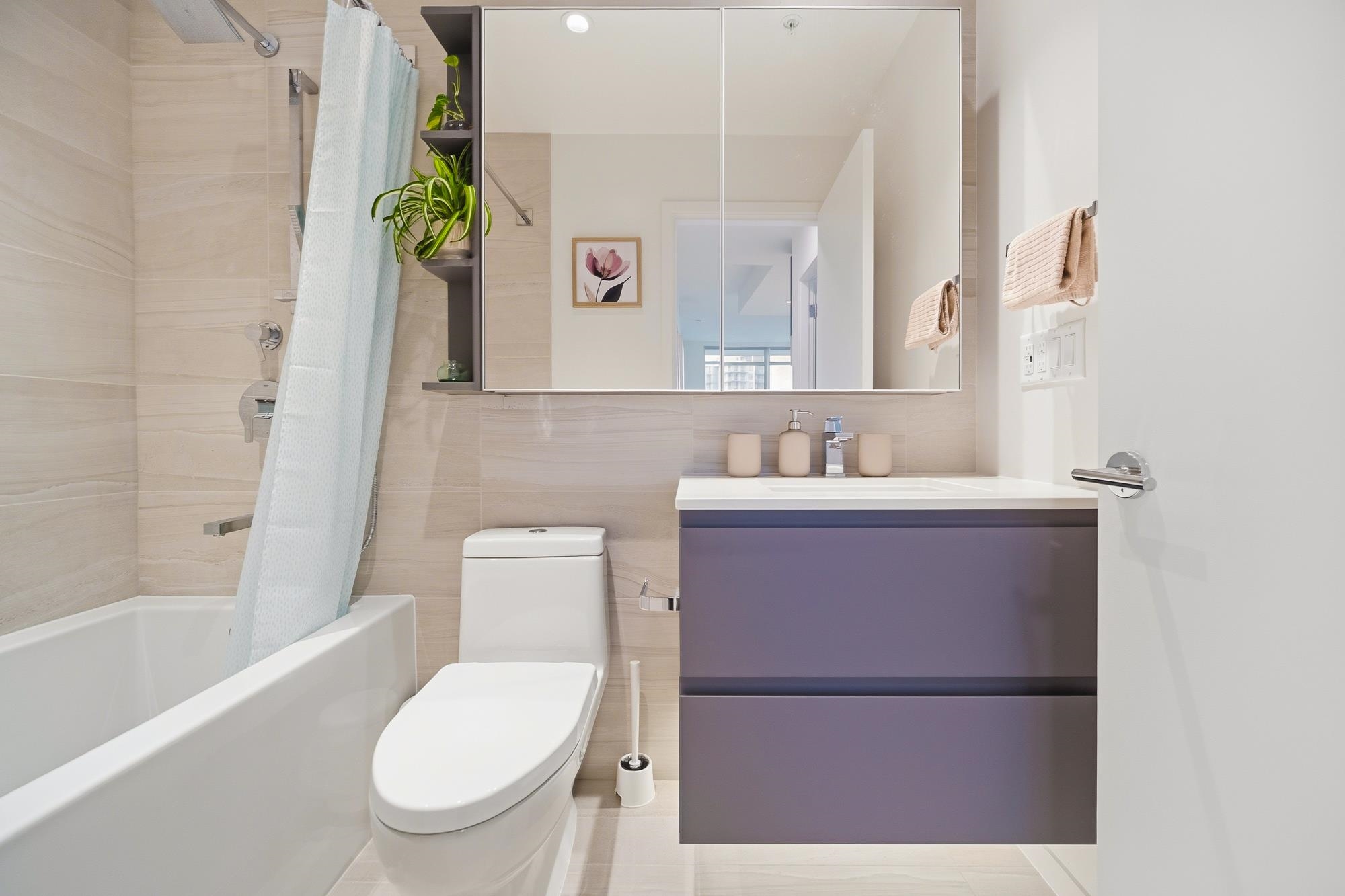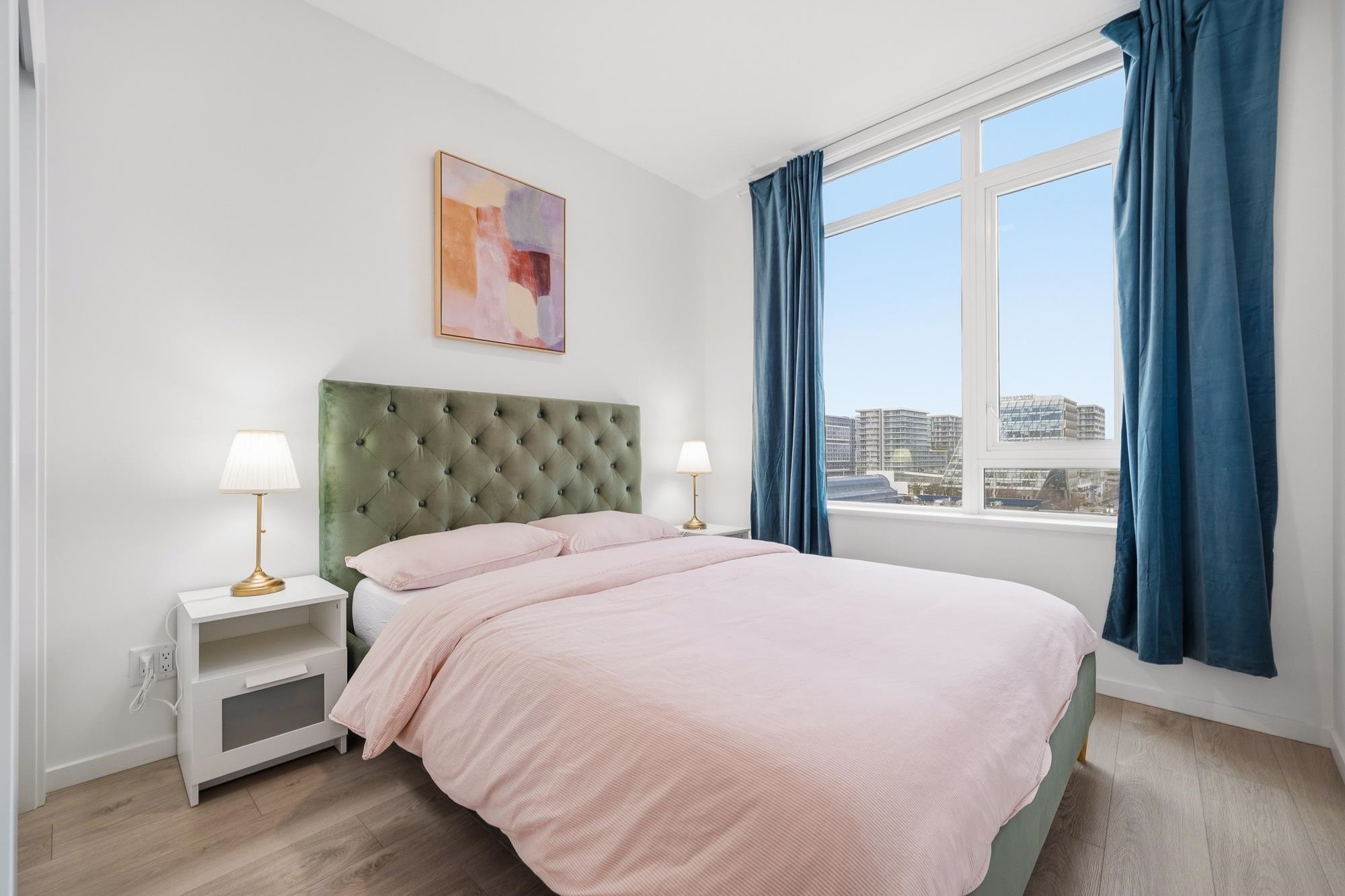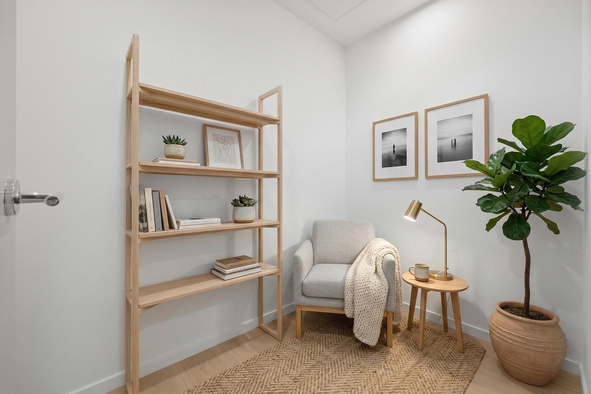 Move-in ready home at CF Richmond Centre by Cadillac Fairview & SHAPE. This SE facing corner unit home features 2 bed, 2 bath + den with expansive windows that flood the space with natural light. The oversized living area easily accommodates full-sized furniture, complemented by 9-foot ceilings and a bright open-concept layout. Kitchen is equipped with integrated Gaggenau appliances, a generous island, imported Italian cabinetry, and a sleek single-slab backsplash.Unit features air conditioning, along with ...