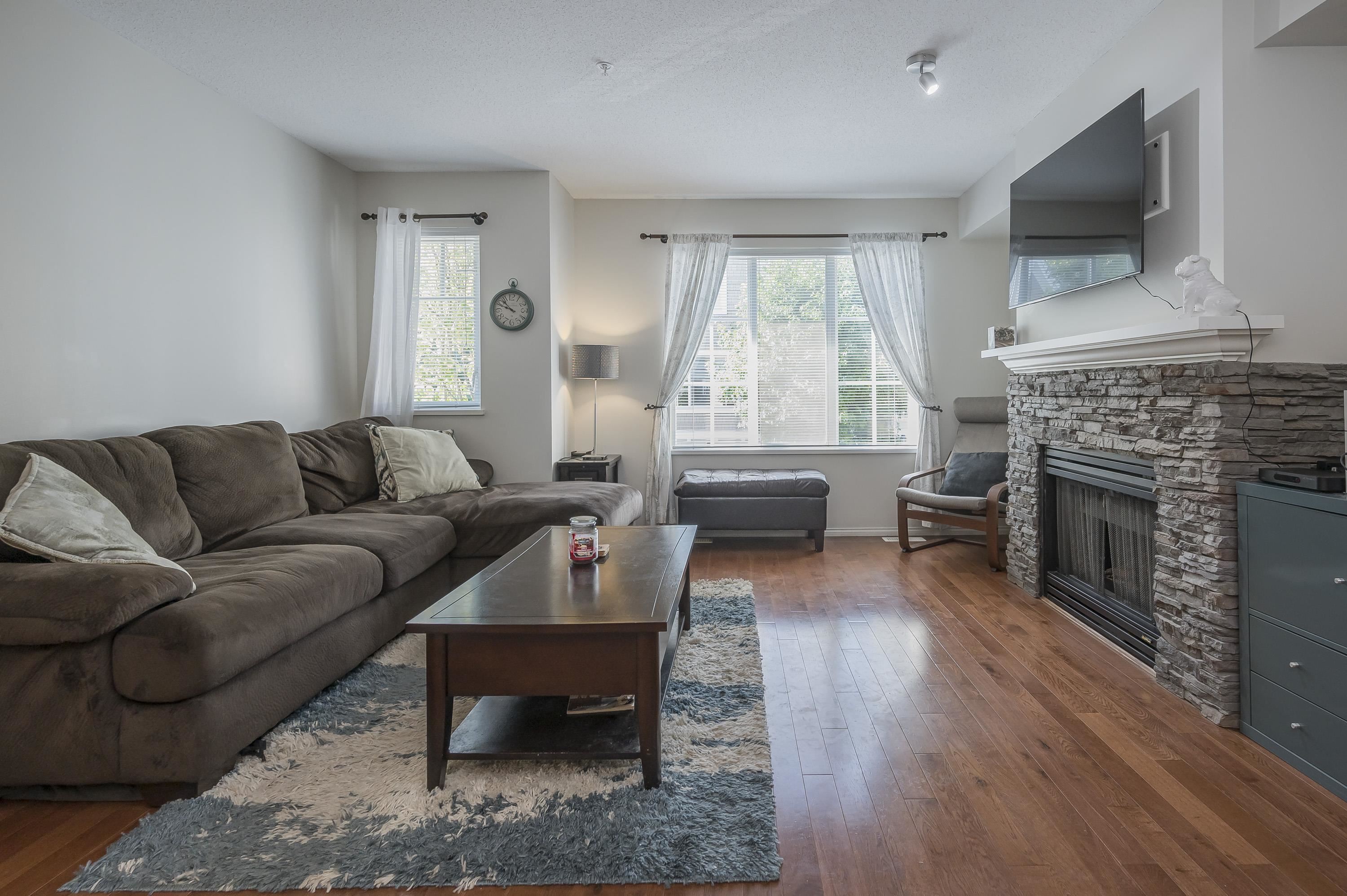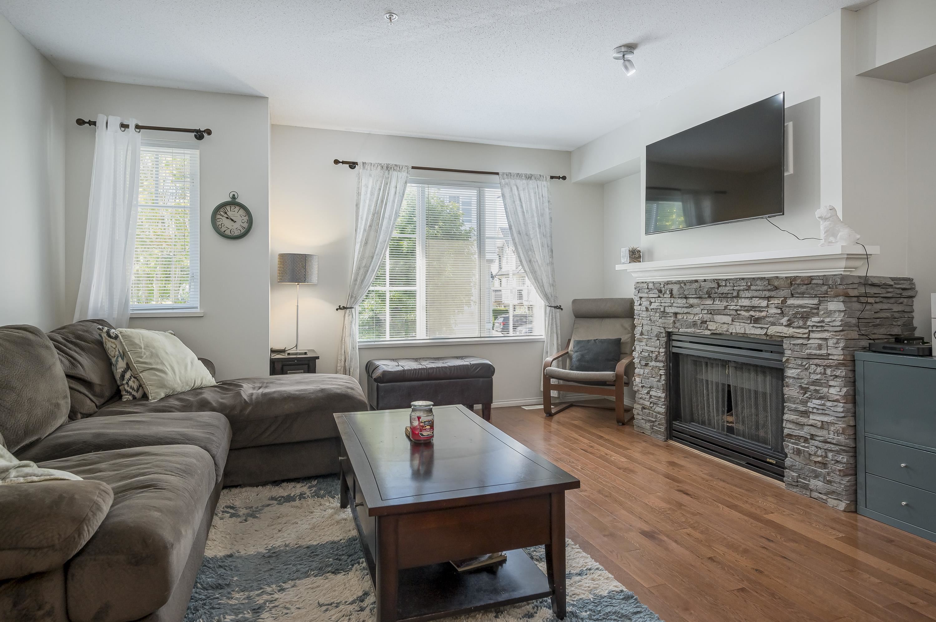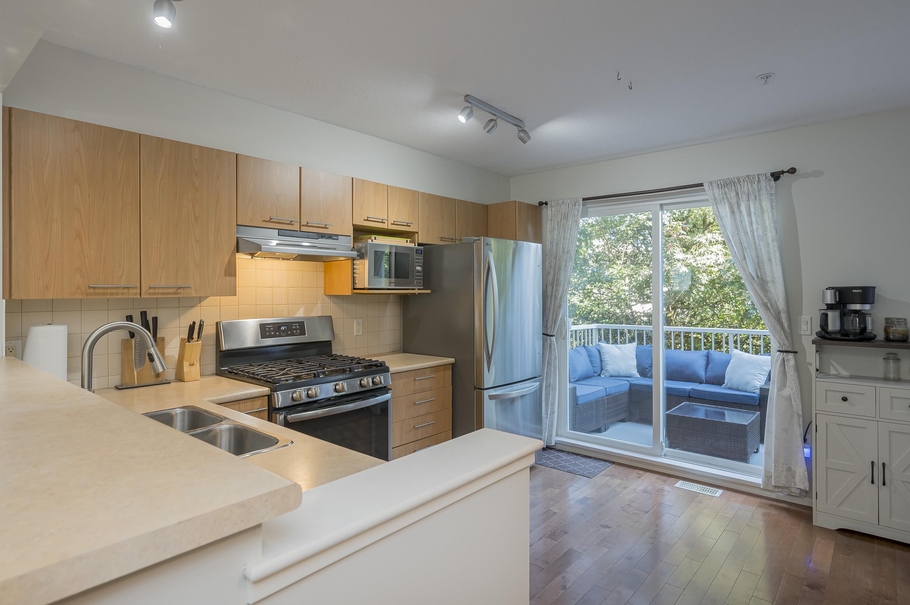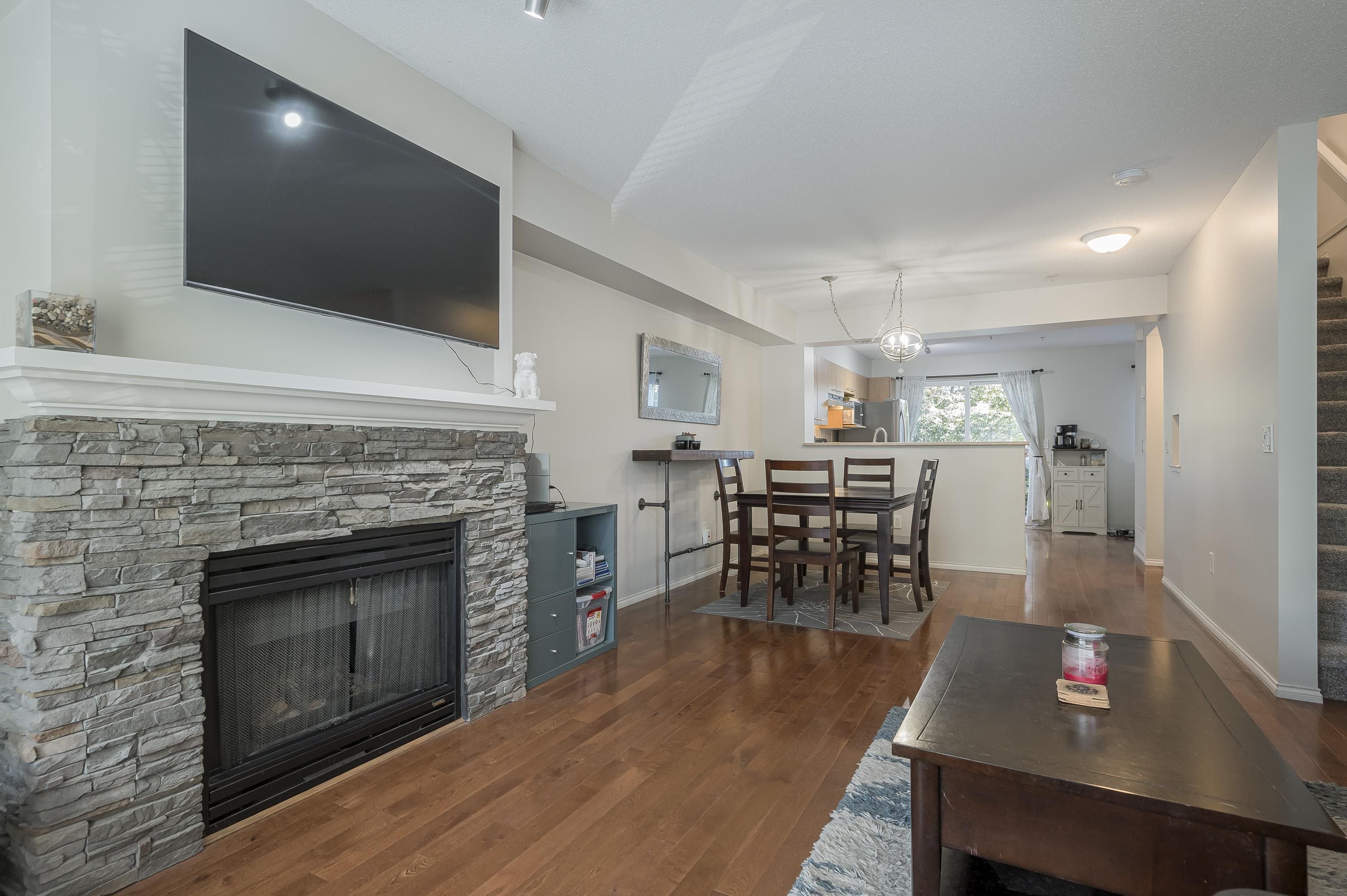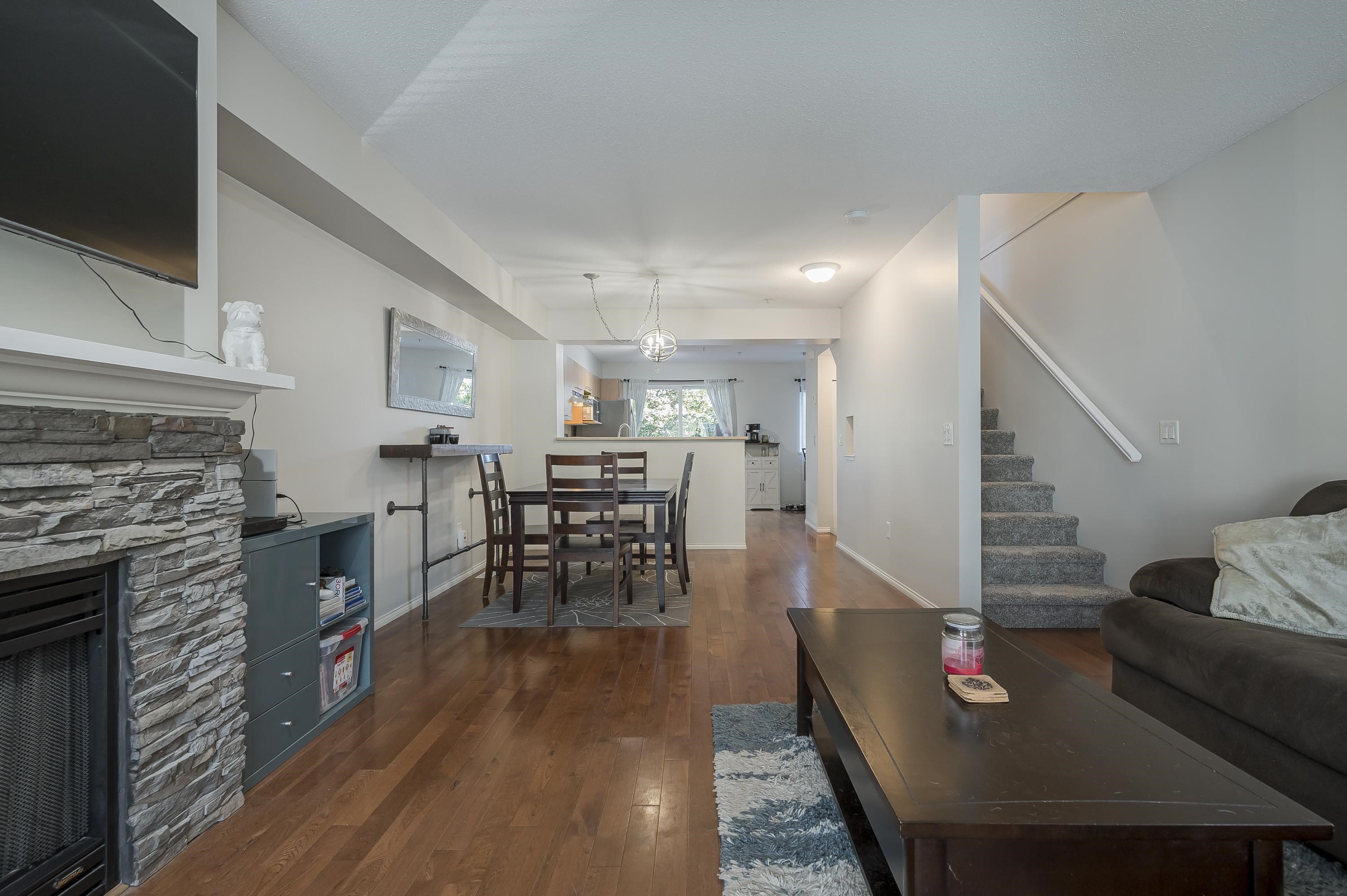 Welcome to Amberleigh—a beautifully updated 2-bed, 2-bath townhome in a sought-after Polygon community! Fresh paint, new carpets & fridge, oak hardwood floors, and a custom stone fireplace add warmth and style. The open-concept main floor flows onto a sunny deck with peaceful greenbelt views, while the walkout yard below is fully fenced—perfect for kids, pets, or gardening. Upstairs offers two spacious bedrooms, including a serene primary with ensuite that fits a king. Updates include a brand-new roof, leaf...