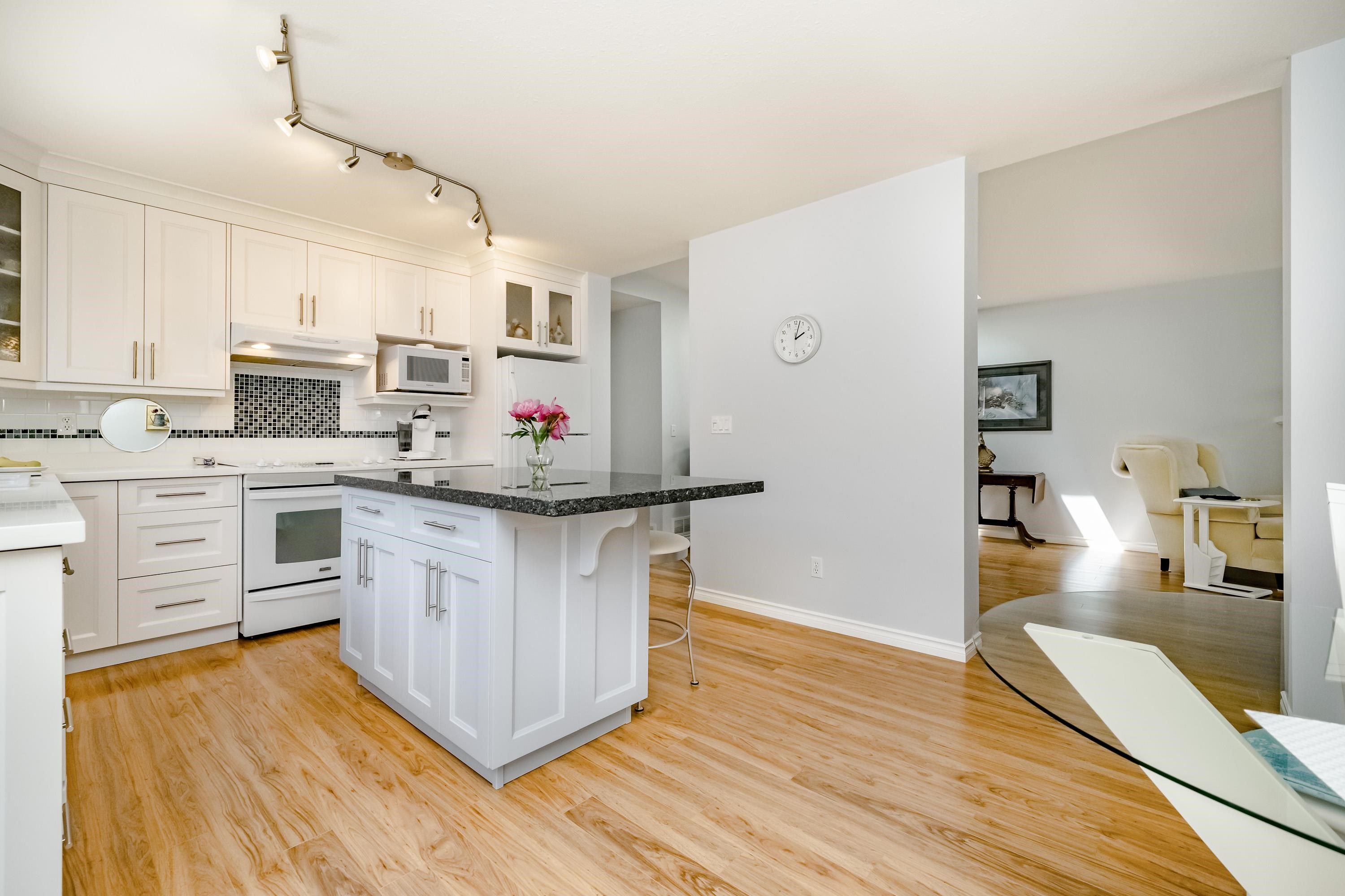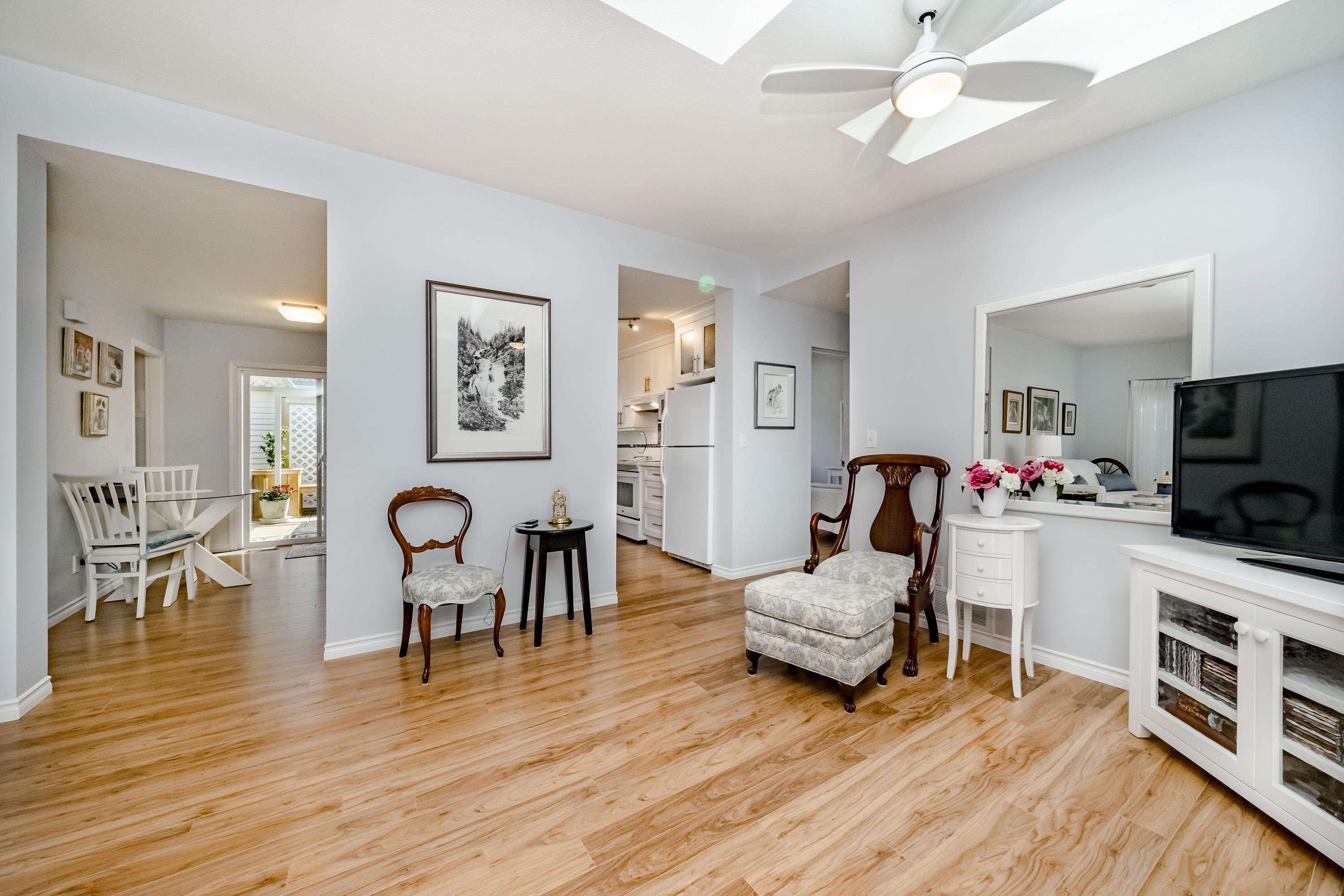 Immaculately renovated, detached rancher style home in much sought after GATEWAY GARDENS! 2 bedrooms & 2 bathrooms with 9' ceilings, beautiful flooring throughout and amazing upgrades. Modern & renovated stylish kitchen with white cabinetry, granite countertops, backsplash, newer pantry shelving and much more. Large open living room & dining room with lots of natural light. Original windows replaced. Too many upgrades to mention and meticulously cared for. The outside patio is a must see for all your entert...