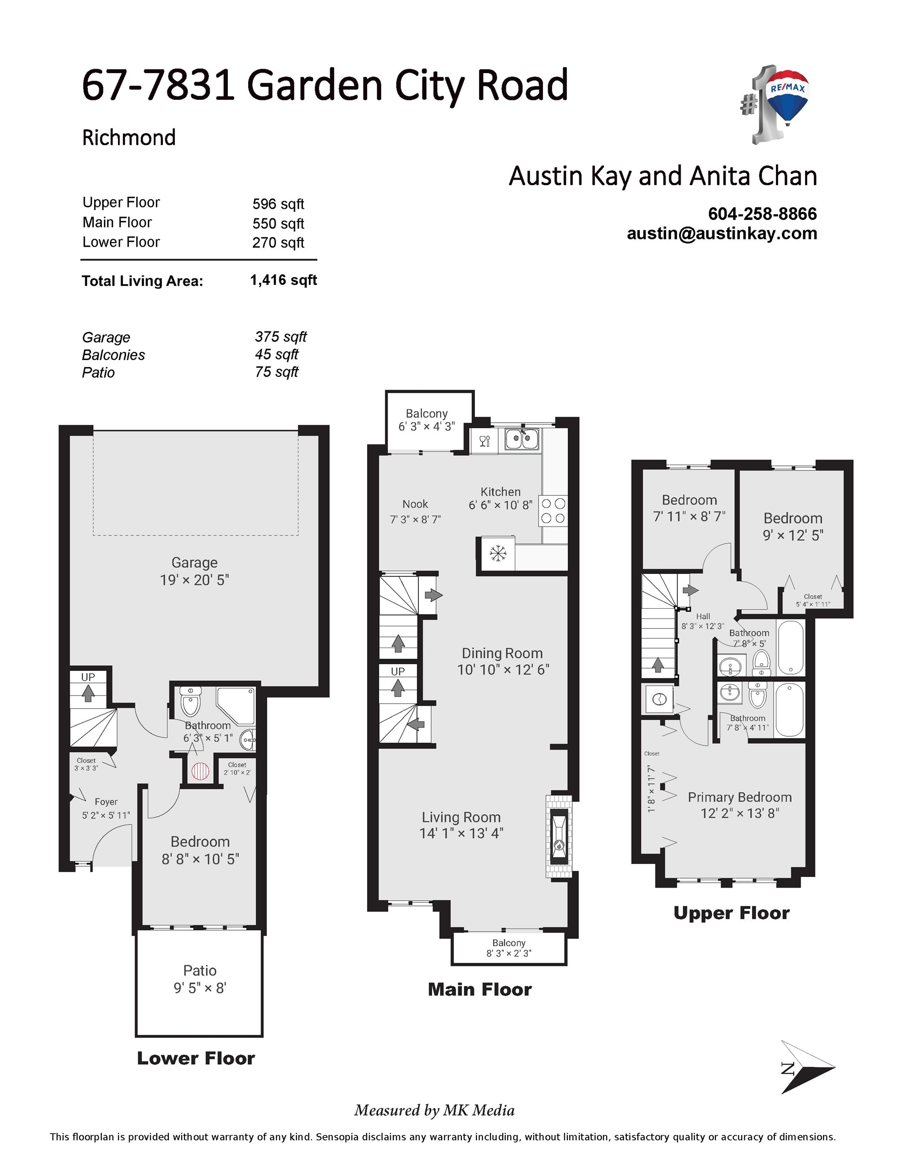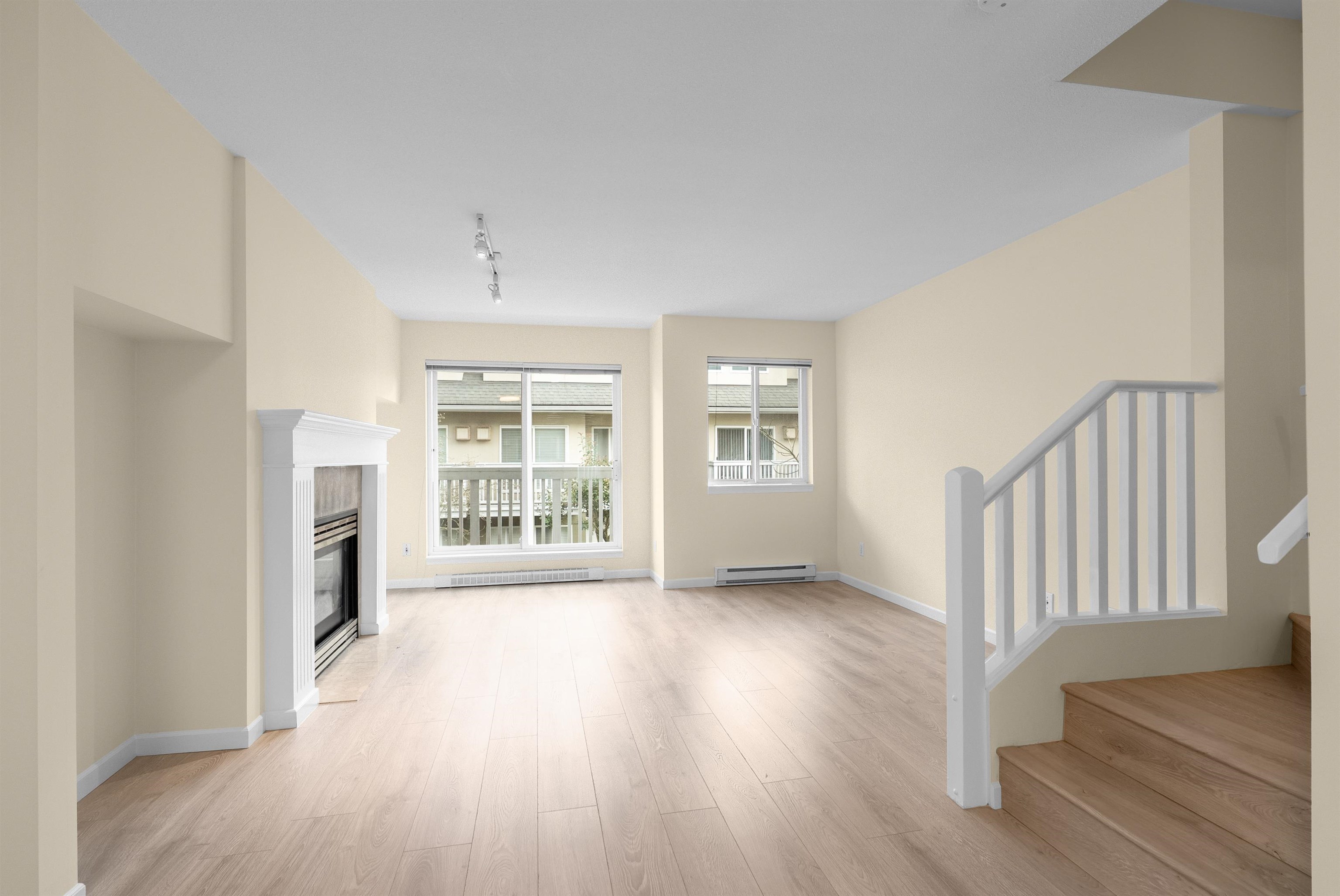 This super bright and clean 4 bedroom townhome offers 3 FULL bathrooms & the coveted side x side double garage. With 1416 SF of spacious living, this great home features brand new laminate floors on all 3 levels, fresh paint, bright kitchen with eating area, cozy gas fireplace, insuite laundry, 2 balconies and patio area. Excellent floor plan that includes 1 bedroom and full bath on the first floor – great for inlaws, teenagers, office or home business! All this in a great complex with low maintenance fees...