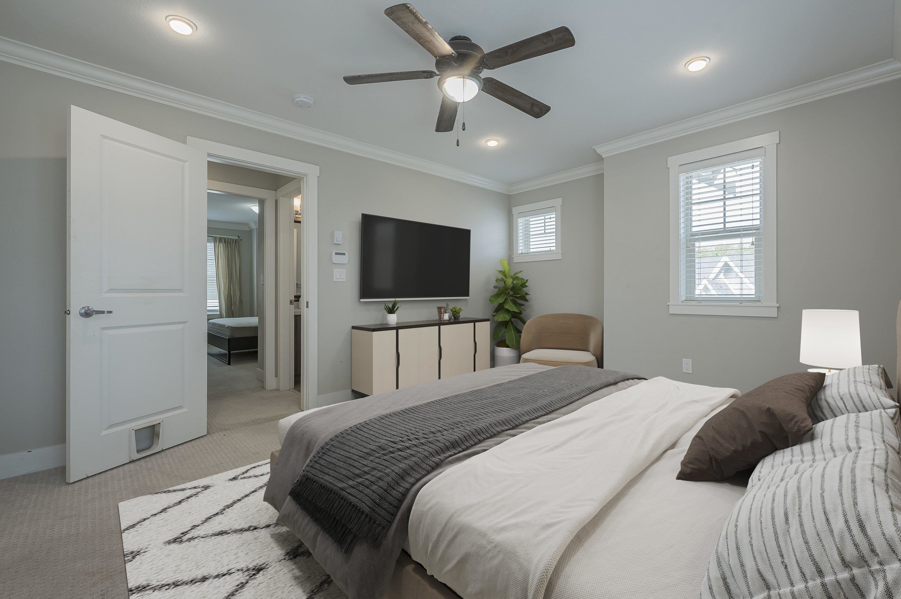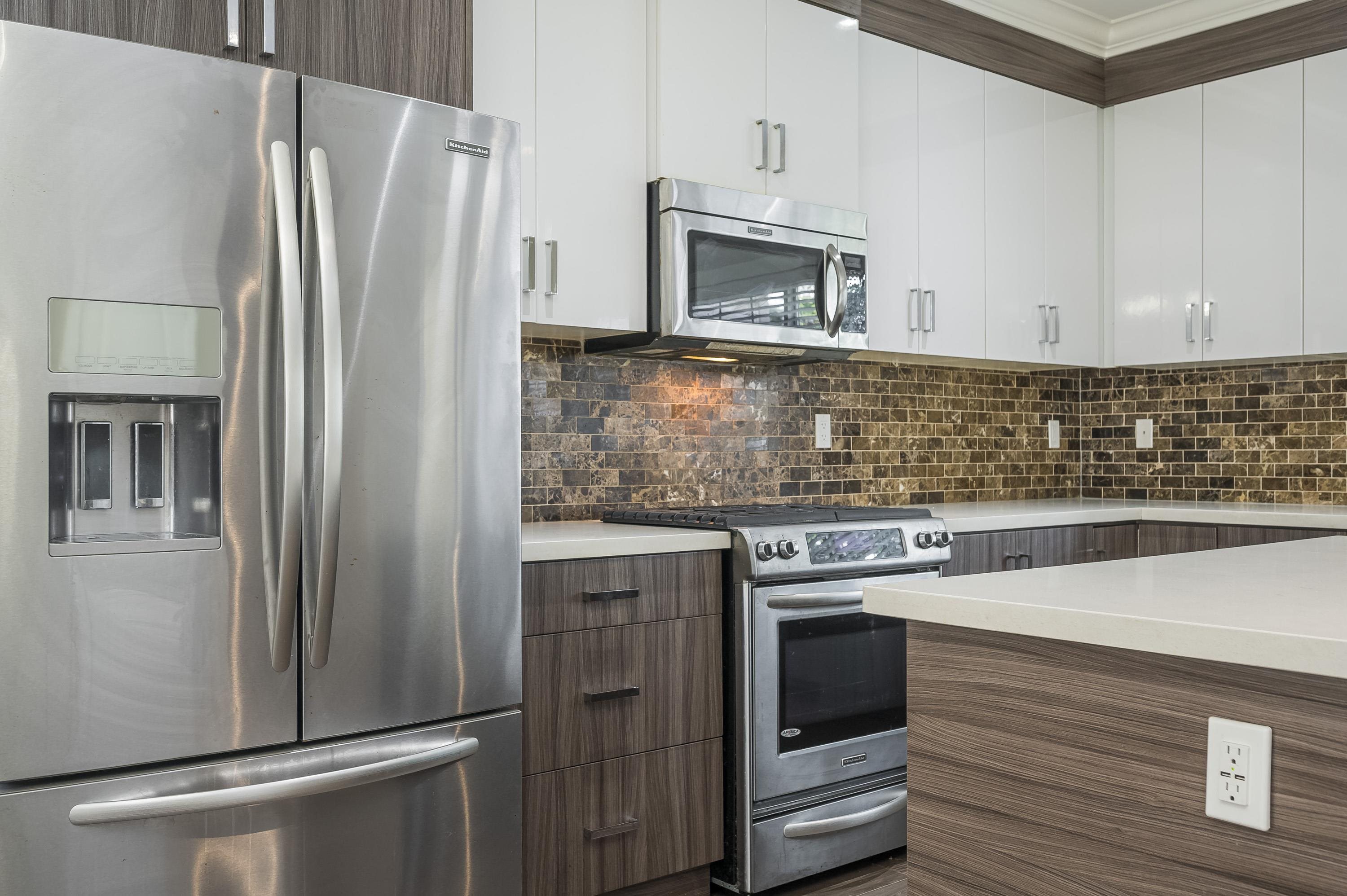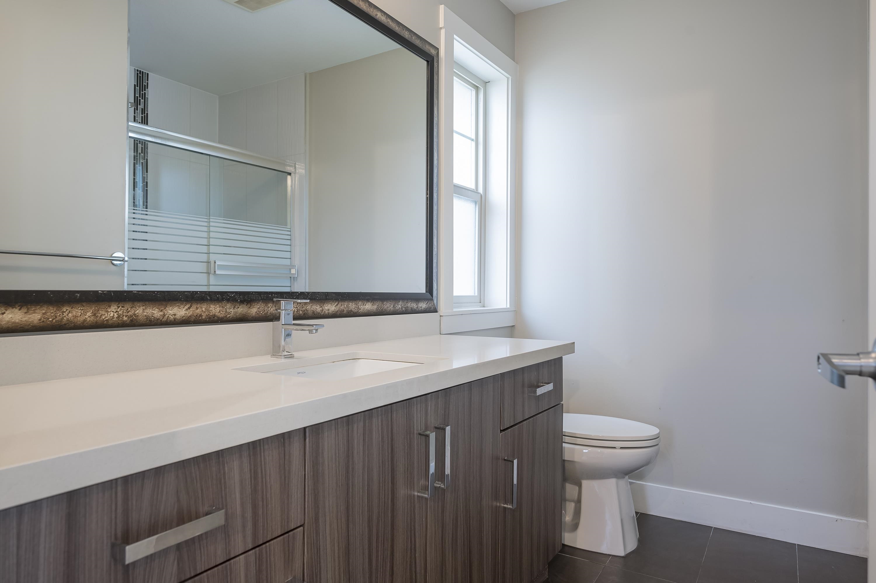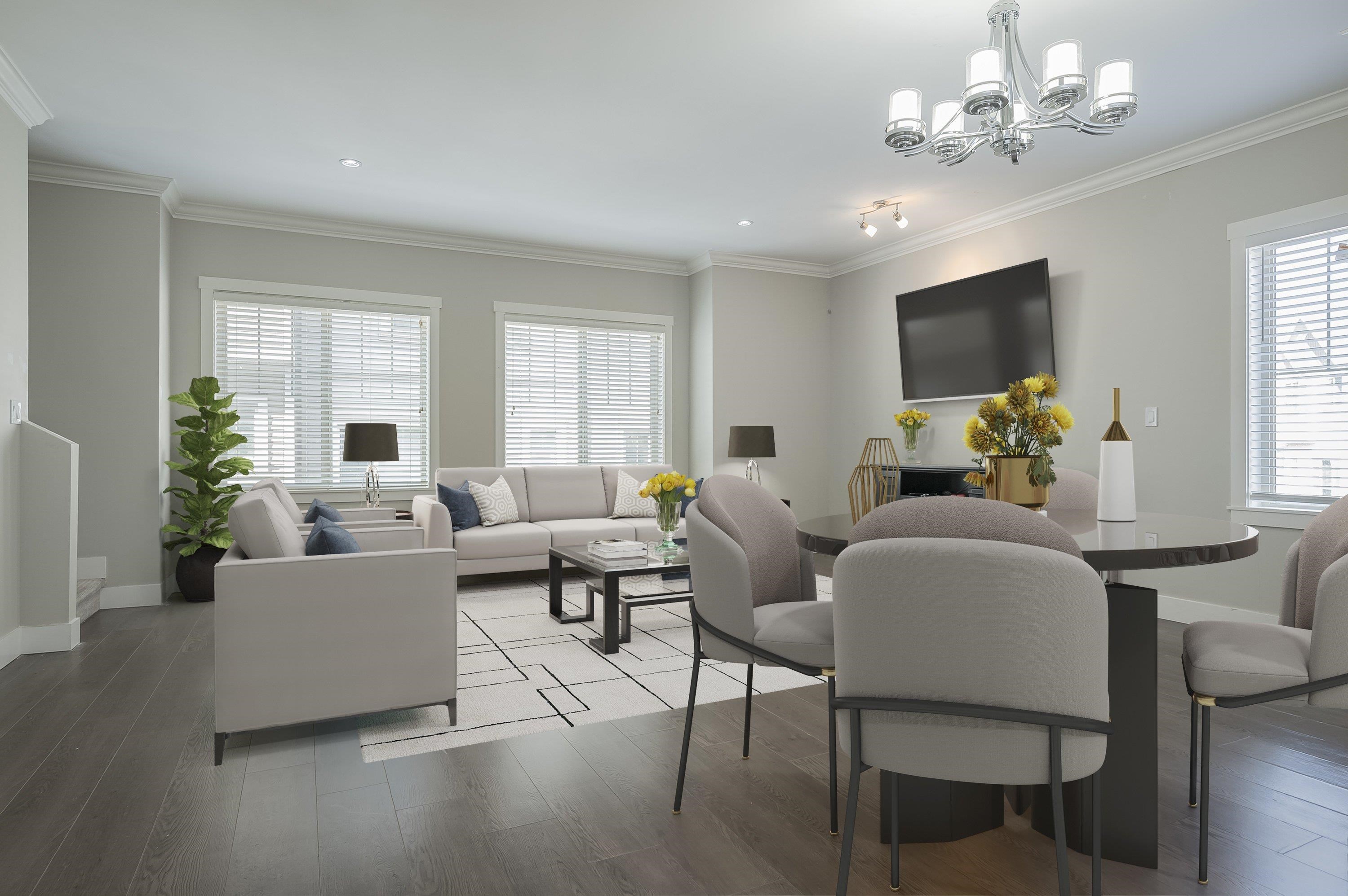 Fantastic townhouse just a short distance from the new sky train station. Does not back onto Fraser highway but does back onto a small park. Good location in "The heights". Open, great room concept on the main floor with a gourmet kitchen, Gas stove, Quartz counters and an island. Crown moulding throughout. Powder room on main floor. Upper features 2 full baths & 3 spacious bedrooms. Extra large (20x28) Side by side Double garage with 11' ceilings and backyard access. Lots of visitor parking very close ...