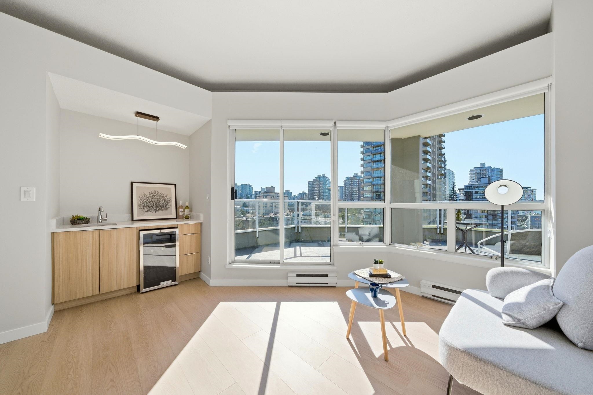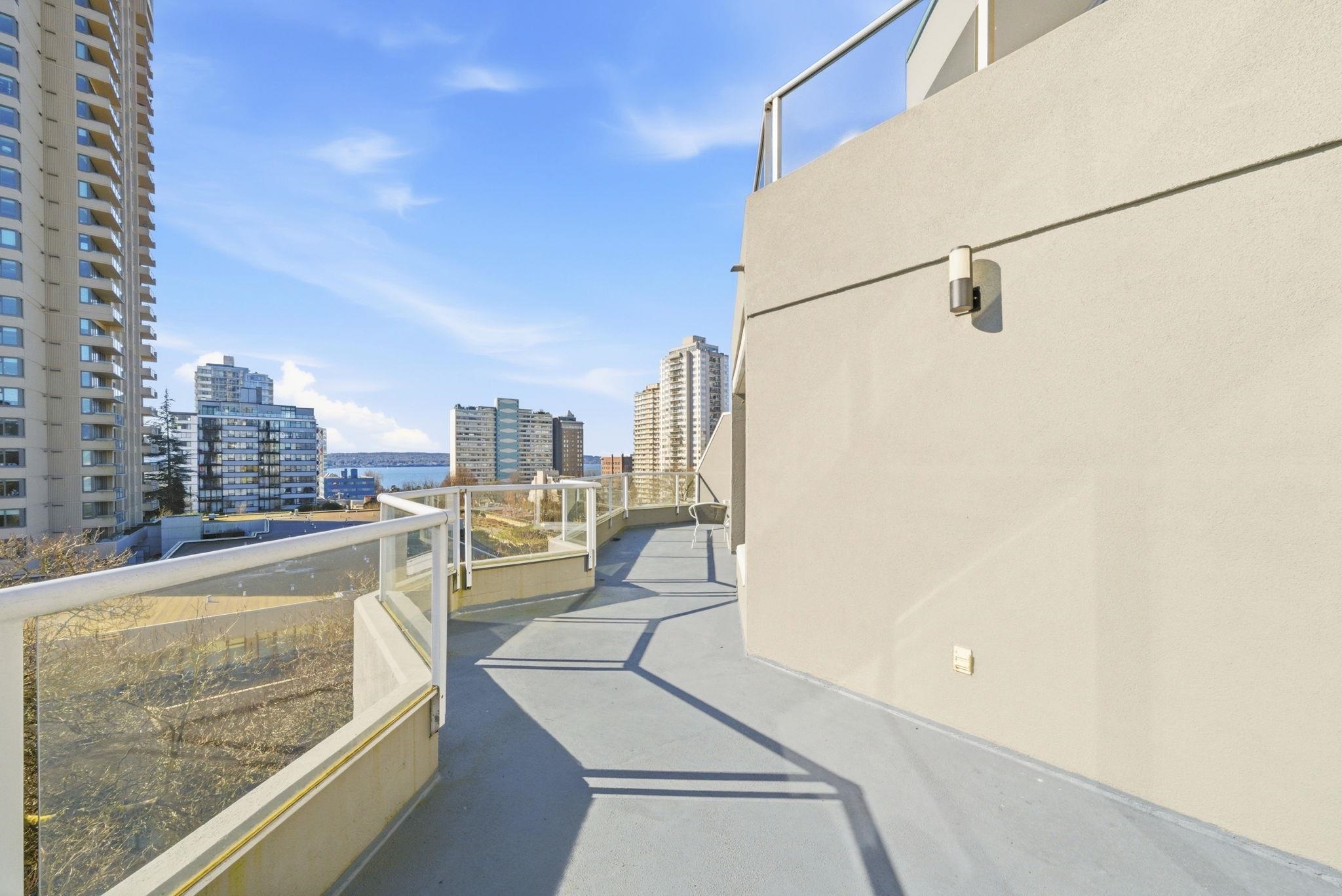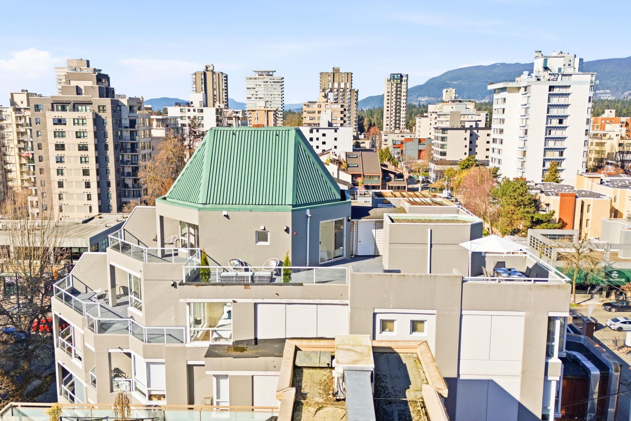 SPECTACULAR WEST END PENTHOUSE WITH OVER 1,100 SQFT OF PRIVATE OUTDOOR SPACE. Nearly 1,550 sqft over 2 levels w/ sweeping views of English Bay & North Shore mountains. Recently renovated in 2025, the home features an updated kitchen w/ stainless steel appliances & sleek countertops, beautifully upgraded bathrooms, & wide plank vinyl flooring, modern lighting & roller blinds throughout. Bright open living w/ gas fireplace & floating staircase opens to a south facing wraparound patio. Primary suite on the mai...