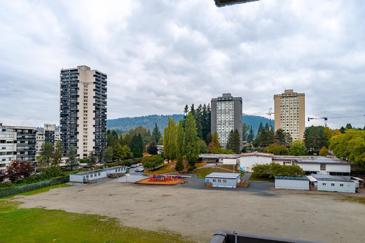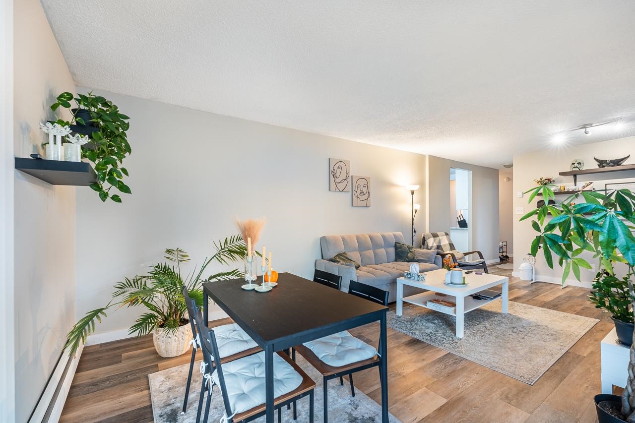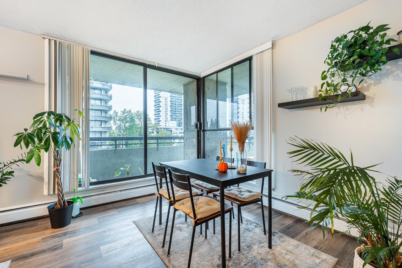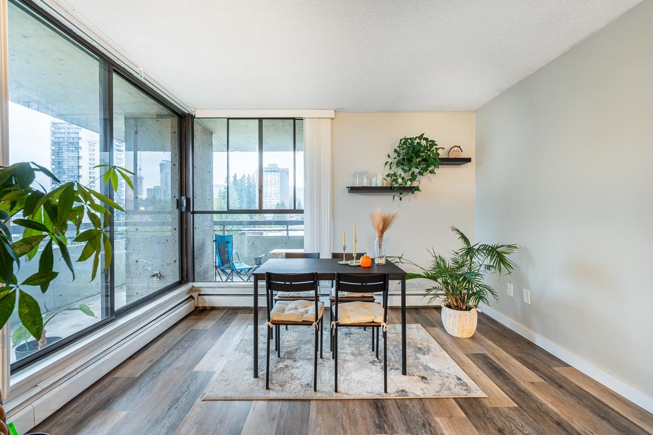 LOCATION! LOCATION! Across the street from Lougheed Mall and SkyTrain, this beautifully maintained and updated 1 bed, 1 bath corner unit at The Oaks offers 673 sq ft of bright living space. Enjoy large windows and sliders to a wraparound balcony with Burnaby Mountain views. Updates include new vinyl flooring, a modern kitchen with sleek cabinetry, countertops, and stainless steel appliances, plus a renovated bathroom with floating vanity. The spacious primary bedroom features two closets. Fantastic amenitie...