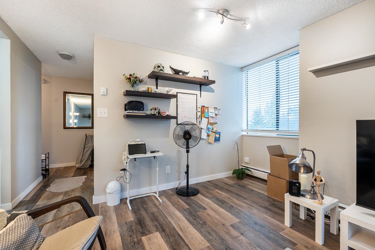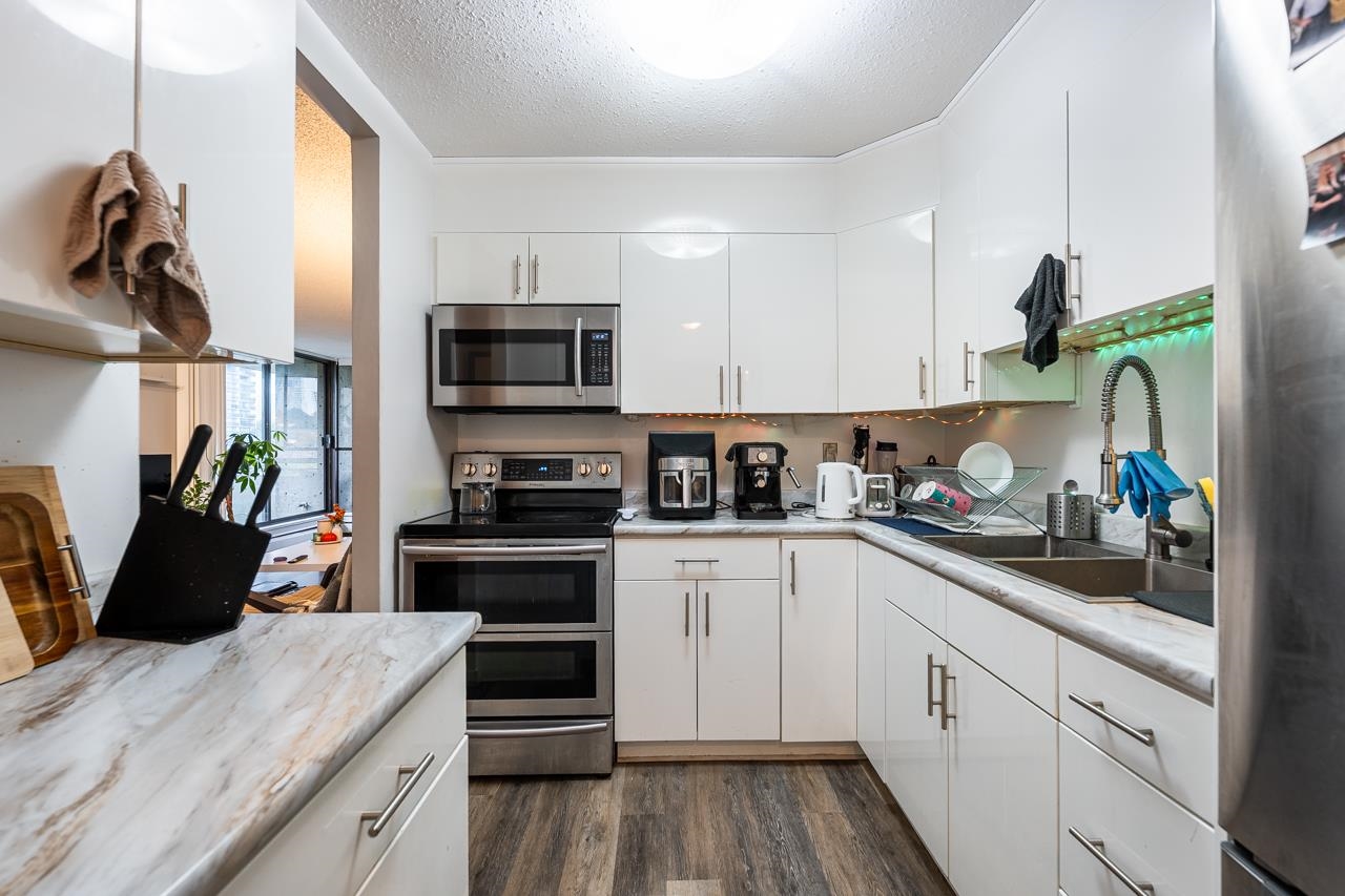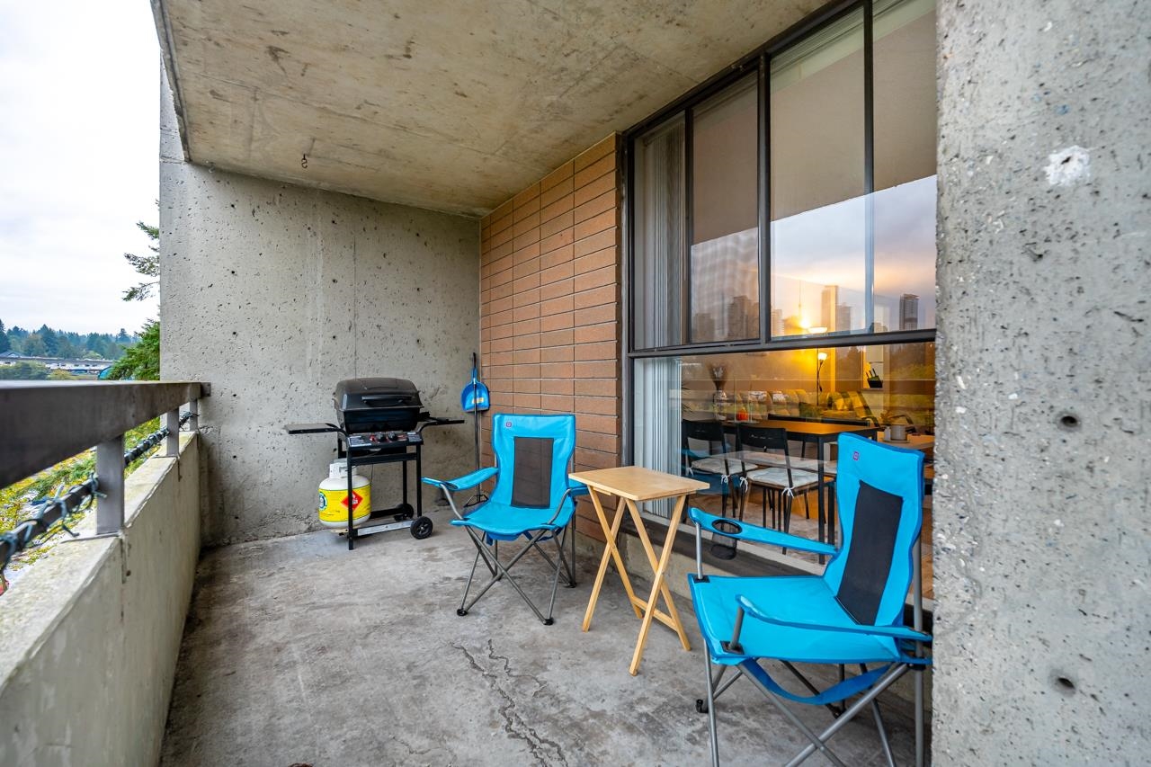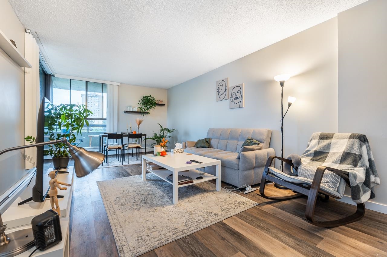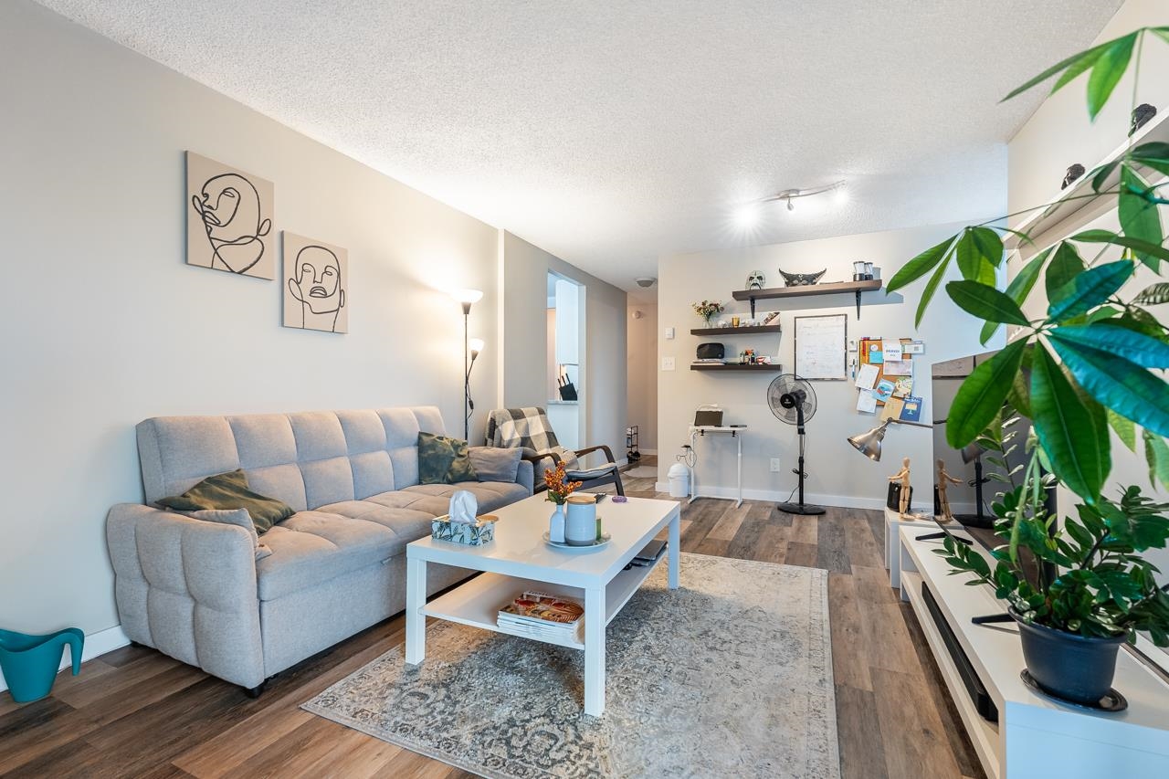LOCATION! LOCATION! Across the street from Lougheed Mall and SkyTrain, this beautifully maintained and updated 1 bed, 1 bath corner unit at The Oaks offers 673 sq ft of bright living space. Enjoy large windows and sliders to a wraparound balcony with Burnaby Mountain views. Updates include new vinyl flooring, a modern kitchen with sleek cabinetry, countertops, and stainless steel appliances, plus a renovated bathroom with floating vanity. The spacious primary bedroom features two closets. Fantastic amenitie...