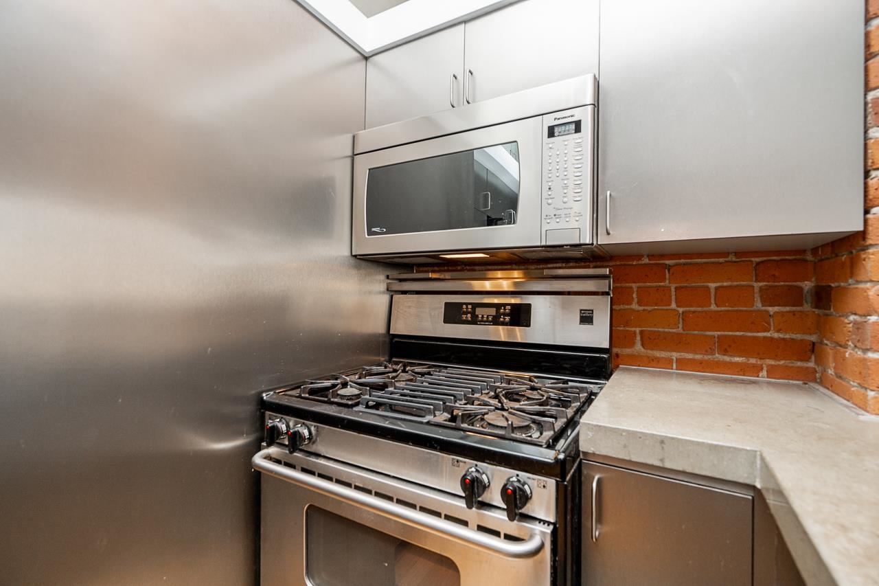Unit 703 at 518 Studios! This heritage loft conversion studio has over 800 SF. This studio & 1 bath is well appointed with hardwood floors & exposed brick walls. Kitchen showcases solid wood cabinetry with concrete counter tops and stainless appliances. High ceilings, exposed wood beams, vast city views and this an ideal city home. Steps to Jam café and niche restaurants like Chambar + top coffee shops. 5 mins to the False Creek seawall and 10 mins from sporting and theatre venues. Gastown and CBD a 5 min ...