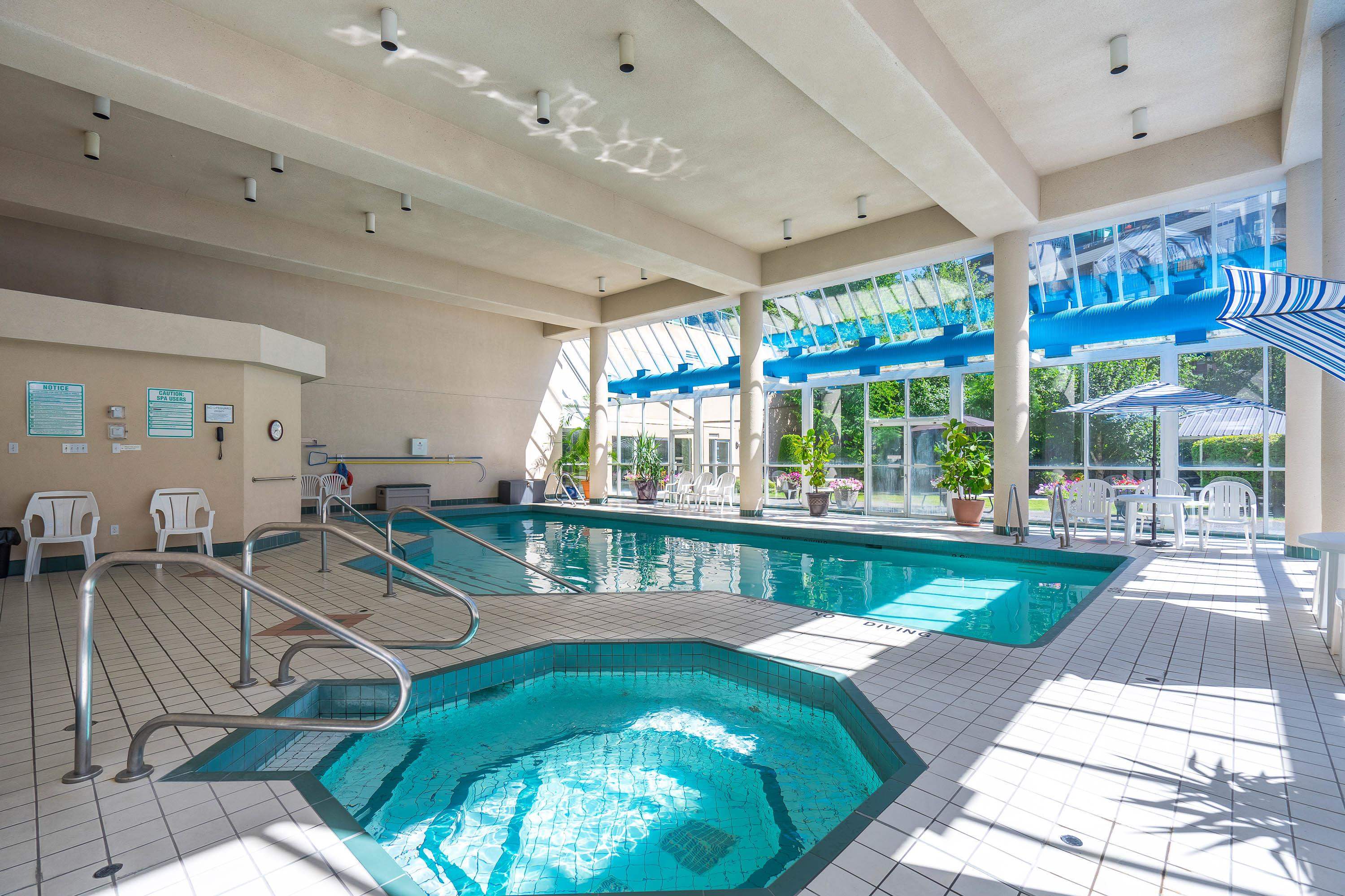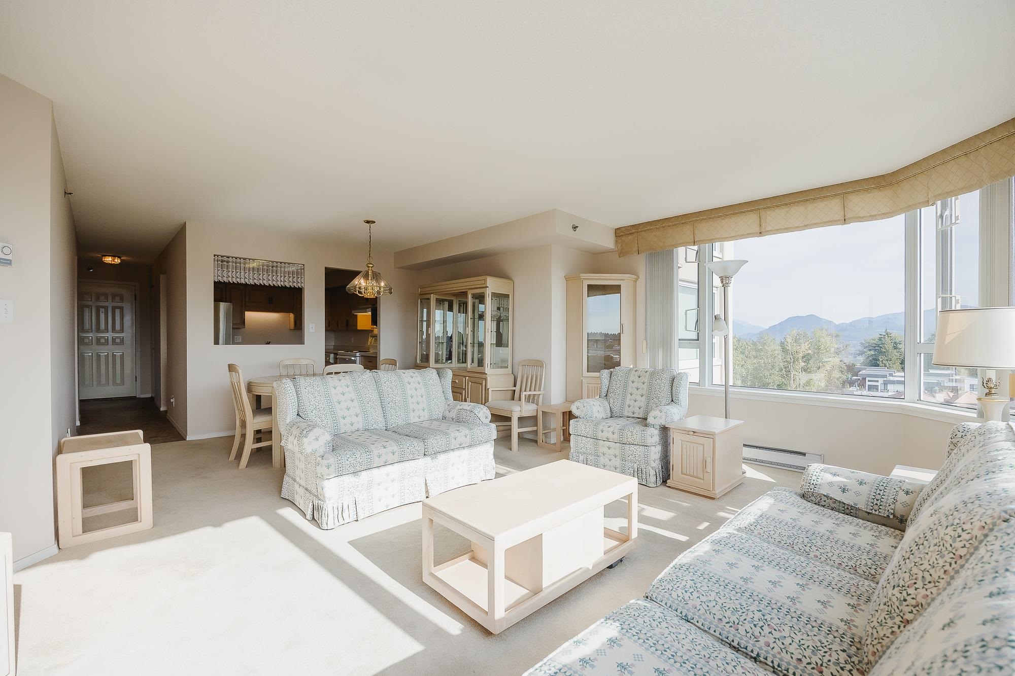 55+ REGENCY PARK. Mt. Baker and Mt Cheam views from the deck to enjoy your morning coffee or sunset wine!! This bright corner unit features a kitchen w/eating area, large dining room and full size living room to enjoy family and watch your favourite shows. Primary bdrm with ensuite bathroom, large closet, 2nd bedroom for guests or home office. Building amenities include indoor pool, steam room, whirlpool, pool table, exercise room, 3 guest suites $35/night a workshop and a hair salon by appt. Close to Mill ...