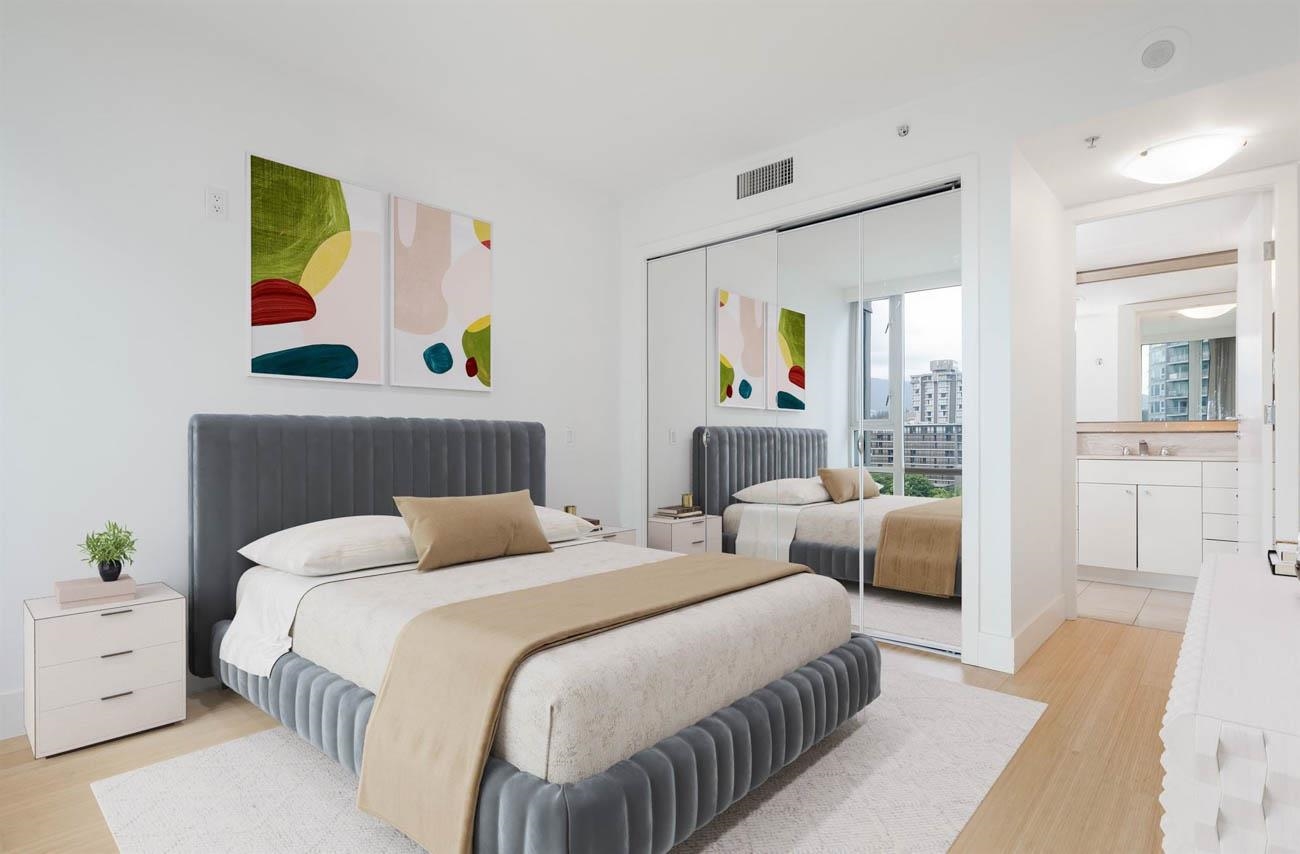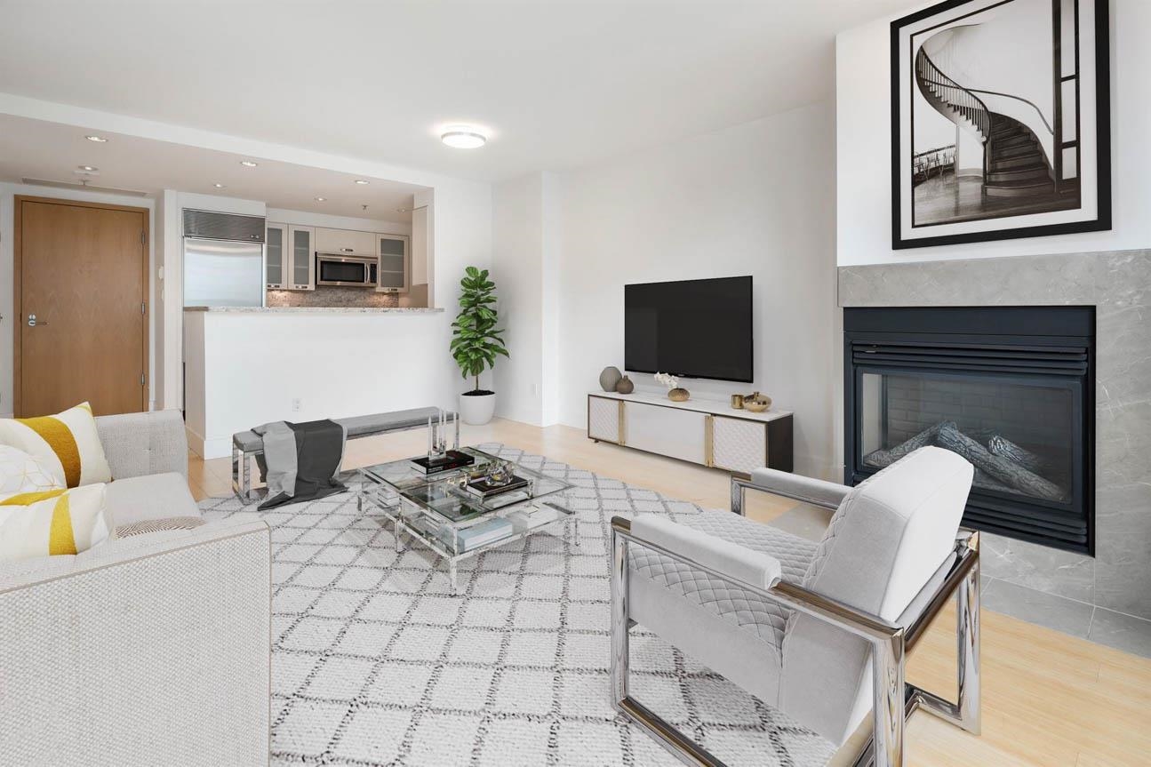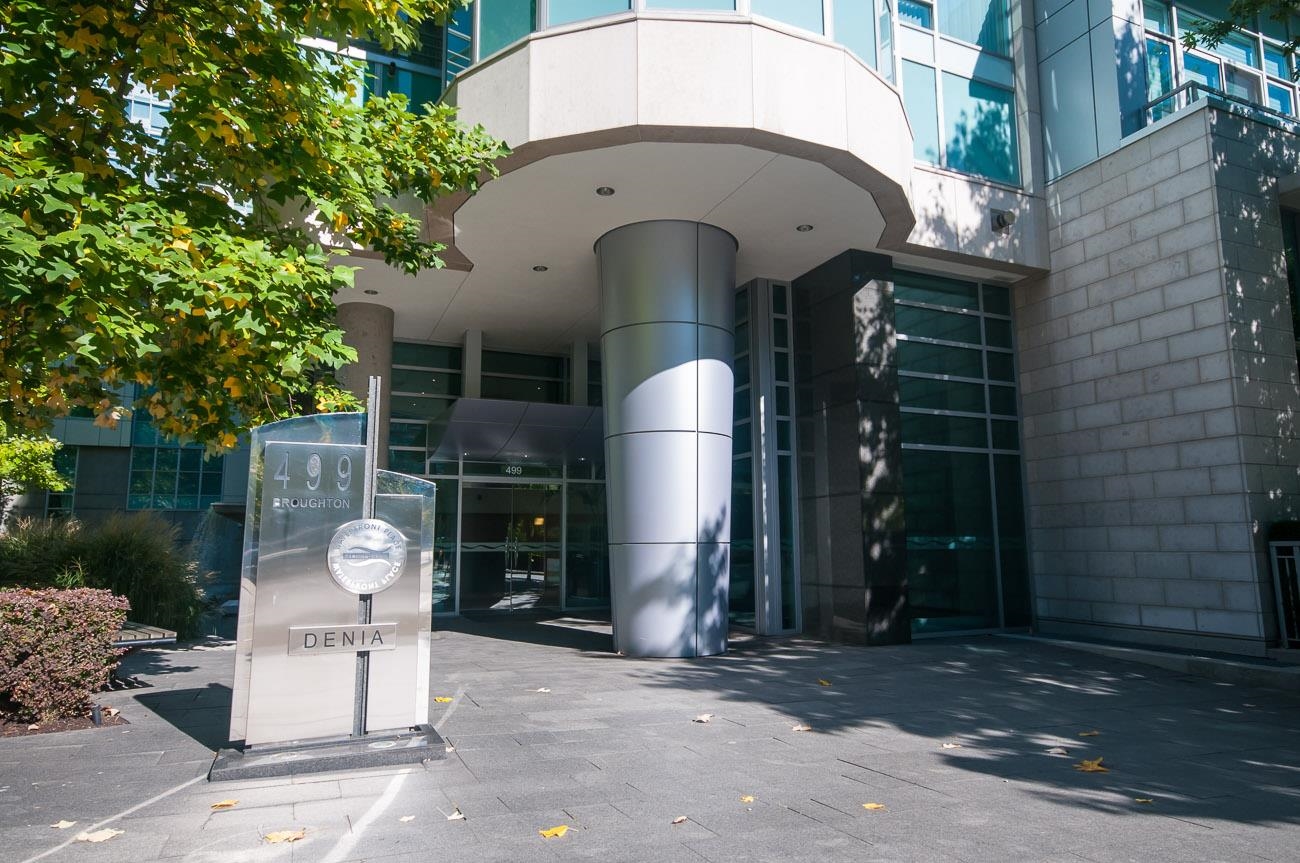 This beautifully appointed 2-bed, 2-bath condominium in the prestigious Denia building offers refined urban living in the heart of Coal Harbour. Bright, open-concept living space features a modern kitchen with full-size appliances and seamless flow to the living and dining areas. Large windows provide natural light and partial city and water views. The primary bedroom includes an ensuite, while the second bedroom has a full bath. A covered balcony offers a peaceful retreat. The building provides secure park...