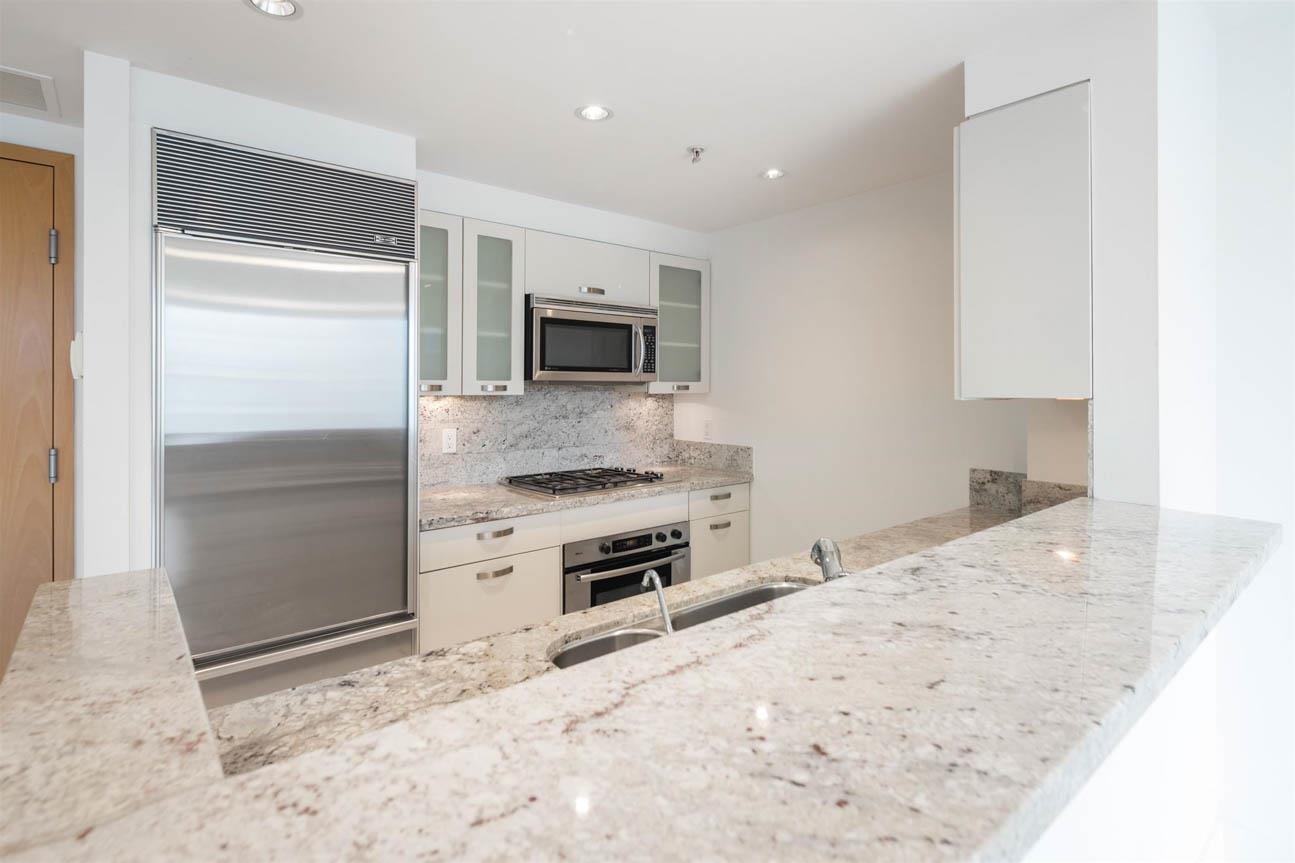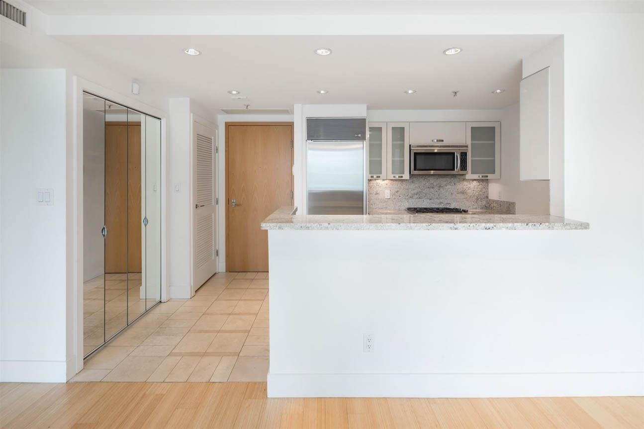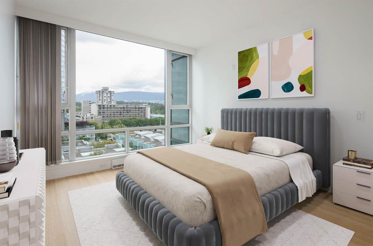 This beautifully appointed 2-bed, 2-bath condominium in the prestigious Denia building offers refined urban living in the heart of Coal Harbour. Bright, open-concept living space features a modern kitchen with full-size appliances and seamless flow to the living and dining areas. Large windows provide natural light and partial city and water views. The primary bedroom includes an ensuite, while the second bedroom has a full bath. A covered balcony offers a peaceful retreat. The building provides secure park...