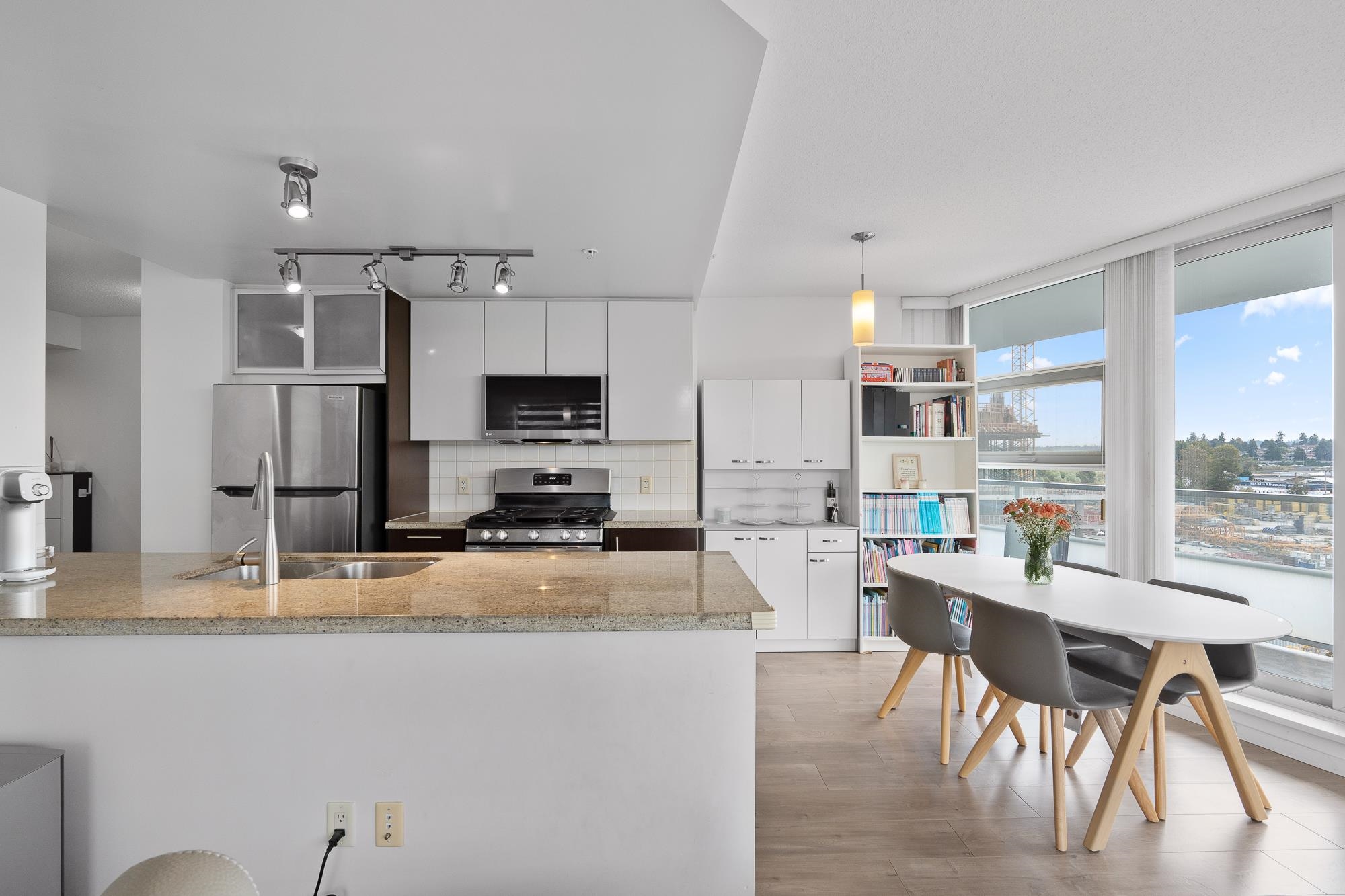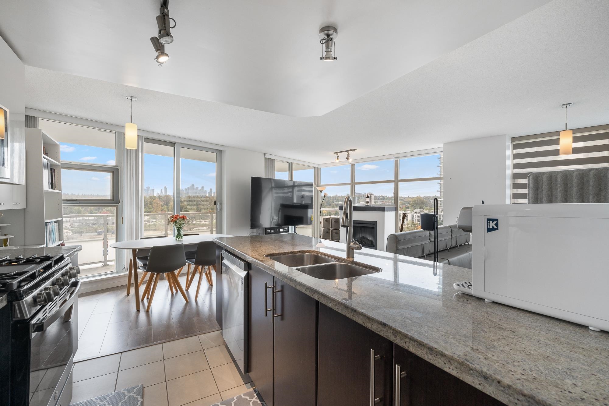 Built in 2008 by renowned Polygon, Watercolours is a sturdy concrete tower on a peaceful, private street, offering stunning, unobstructed city and mountain views. This bright 2-bed, 2-bath corner unit features an open layout with floor-to-ceiling windows, flooding the space with light. Recent upgrades include new flooring, fresh paint, a modern fridge, and a sleek cooking range. The stylish kitchen boasts granite countertops and chic cabinetry, paired with an electric fireplace and a spacious balcony ideal ...