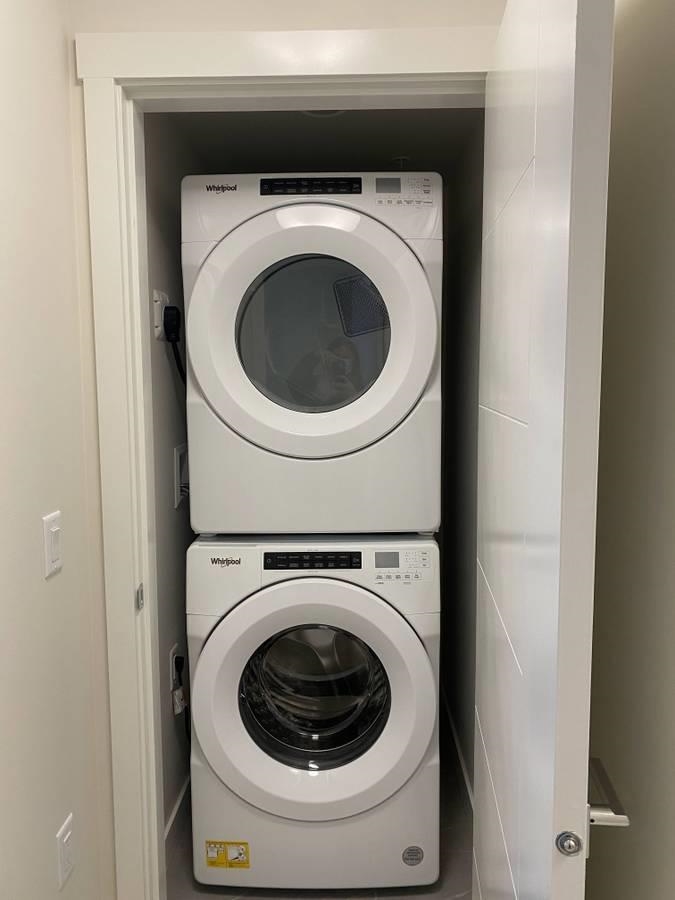 This 4 year old STUNNING 2 bedroom, 1.5 bathroom with ROOF TOP PATIO townhouse in Coquitlam features a perfect layout with above ground entrance leading into the open concept living space/kitchen. Large windows for plenty of natural light, stone countertops with dark accent finishings, top of the line stainless steel appliances, under cabinet lighting, tile backsplash, and plenty of cabinet storage. Powder room on main floor leading up to the second floor which holds the main luxury bathroom with stunning s...
