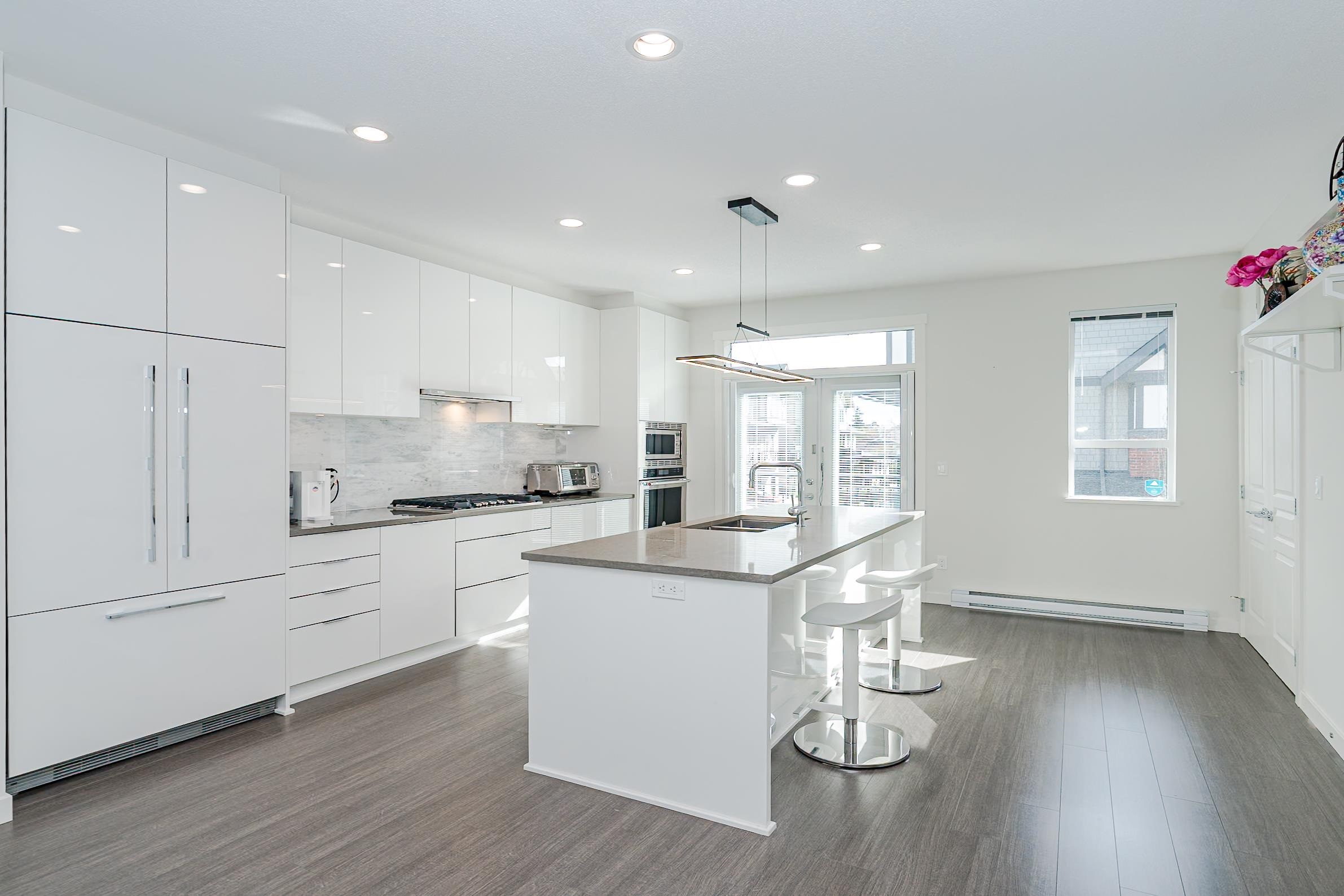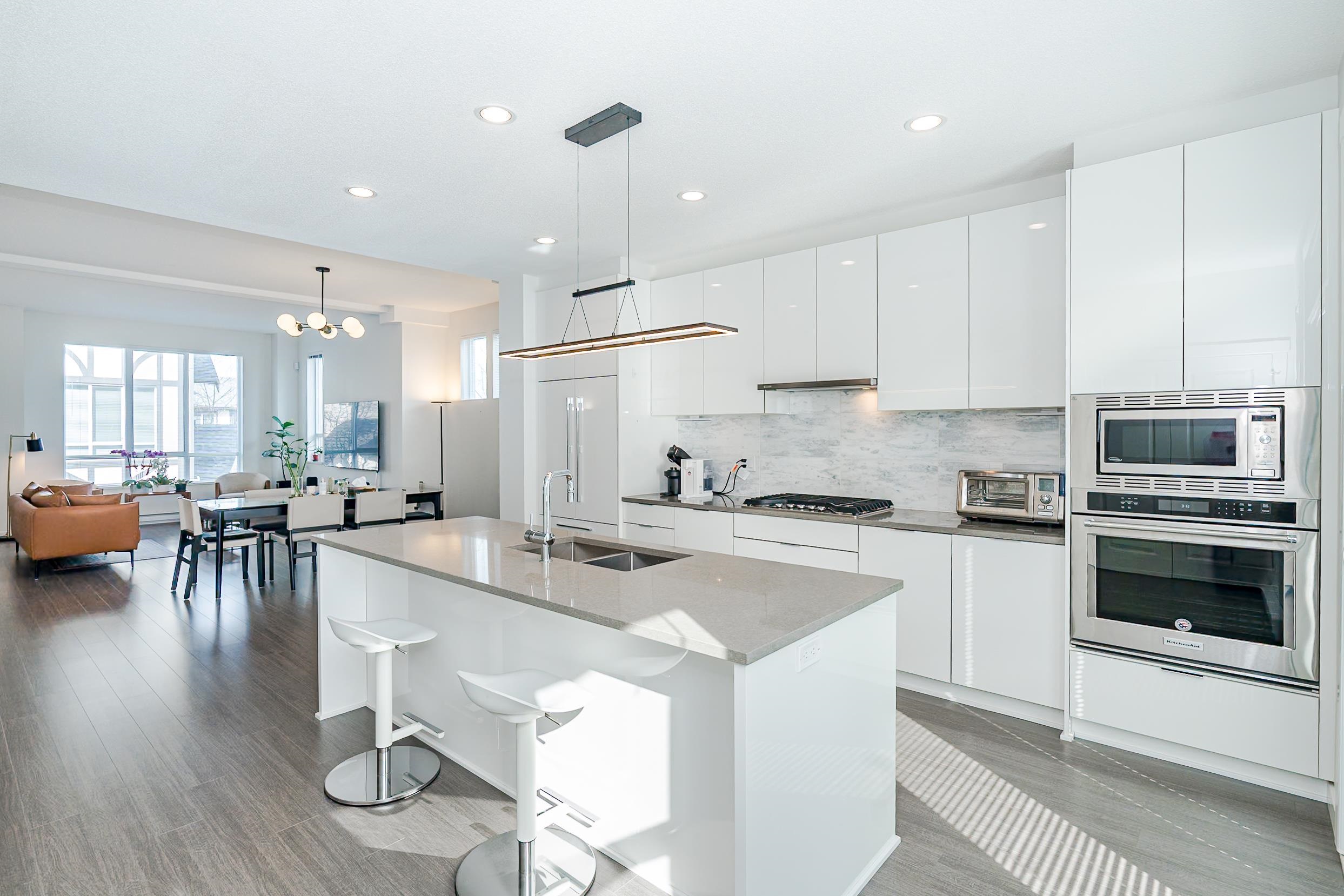 Rare Tudor style CORNER home at Kingsley Estates by Polygon in Richmond’s sought after Woodwards neighborhood, offering refined Parkside living with amazing views of the park. Over 2100 SF of interior space, this 4 bed residence lives like a single family home. All bedrooms feature their own ensuite bathroom for exceptional comfort and privacy. The main level offers near 10ft ceilings and a gourmet kitchen with large island, walk in pantry, premium appliances, gas cooktop and wall oven. The primary ensuite ...