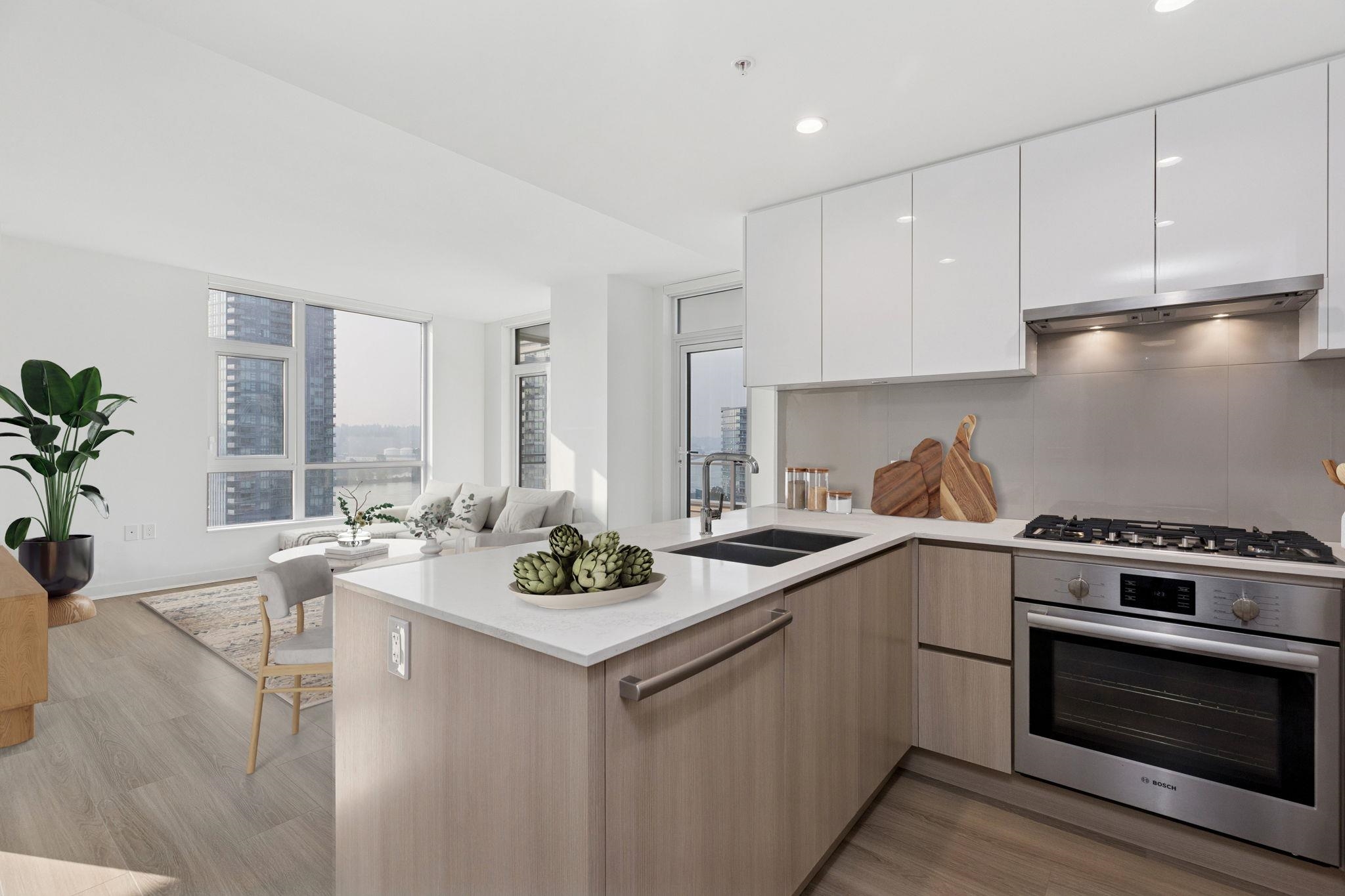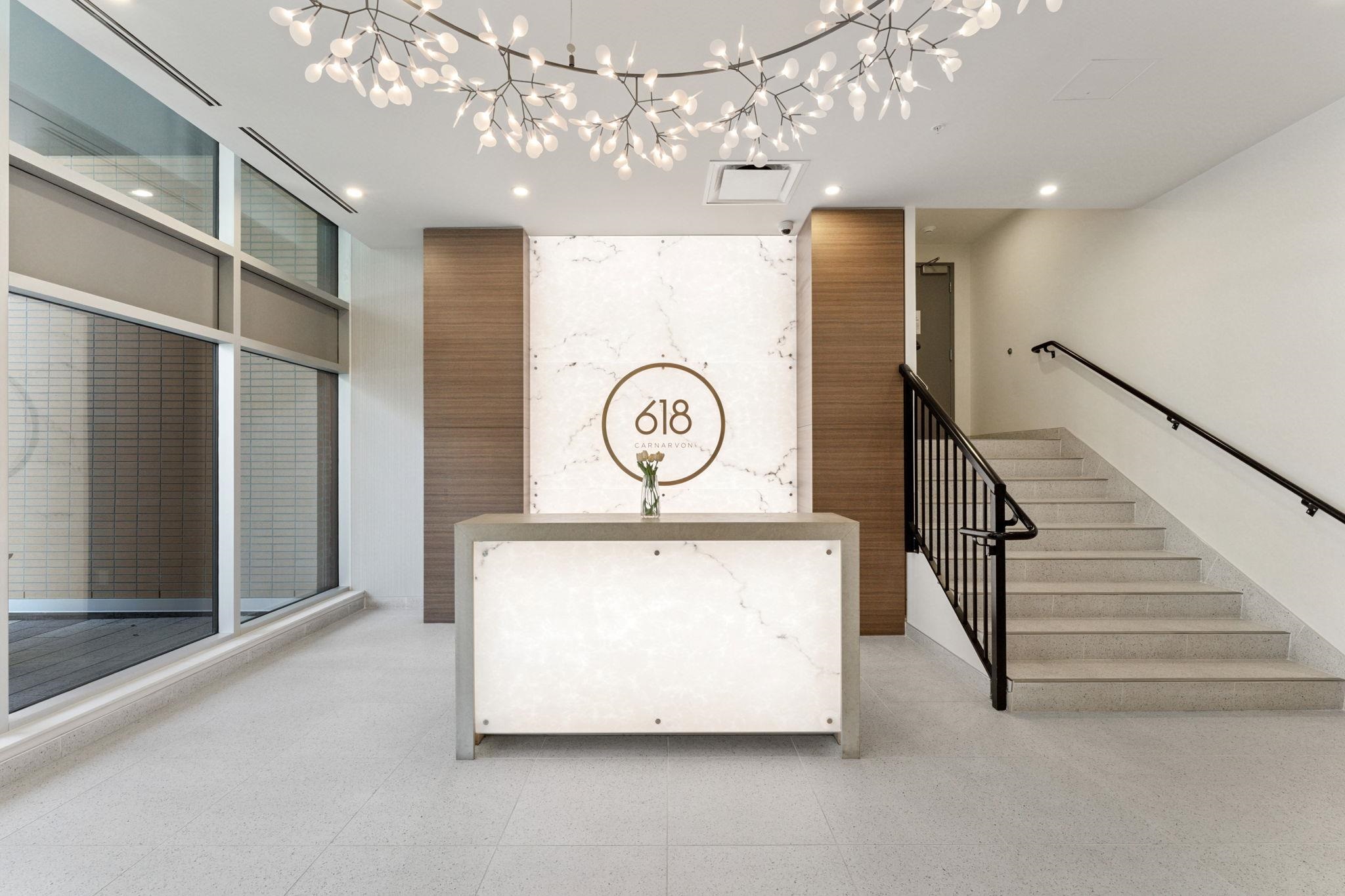 Welcome home to 618 Carnarvon! This 889 SF, 2 Bed, 2 Full bath, CORNER SUITE features the rarely available C2 plan, south exposures, UNOBSTRUCTED RIVER VIEWS, quartz countertops, porcelain backsplashes, under cabinet lighting, FORCED AIR HEATING & COOLING, 5 burner gas range, BOSCH appliances, KOHLER fixtures, wall to wall tiles in both bathrooms, 1 locker, & 1 Parking with EV ROUGH-IN. Both bedrooms are on opposite sides of the home for extra privacy. Square living/dining area makes it easy for furniture. ...