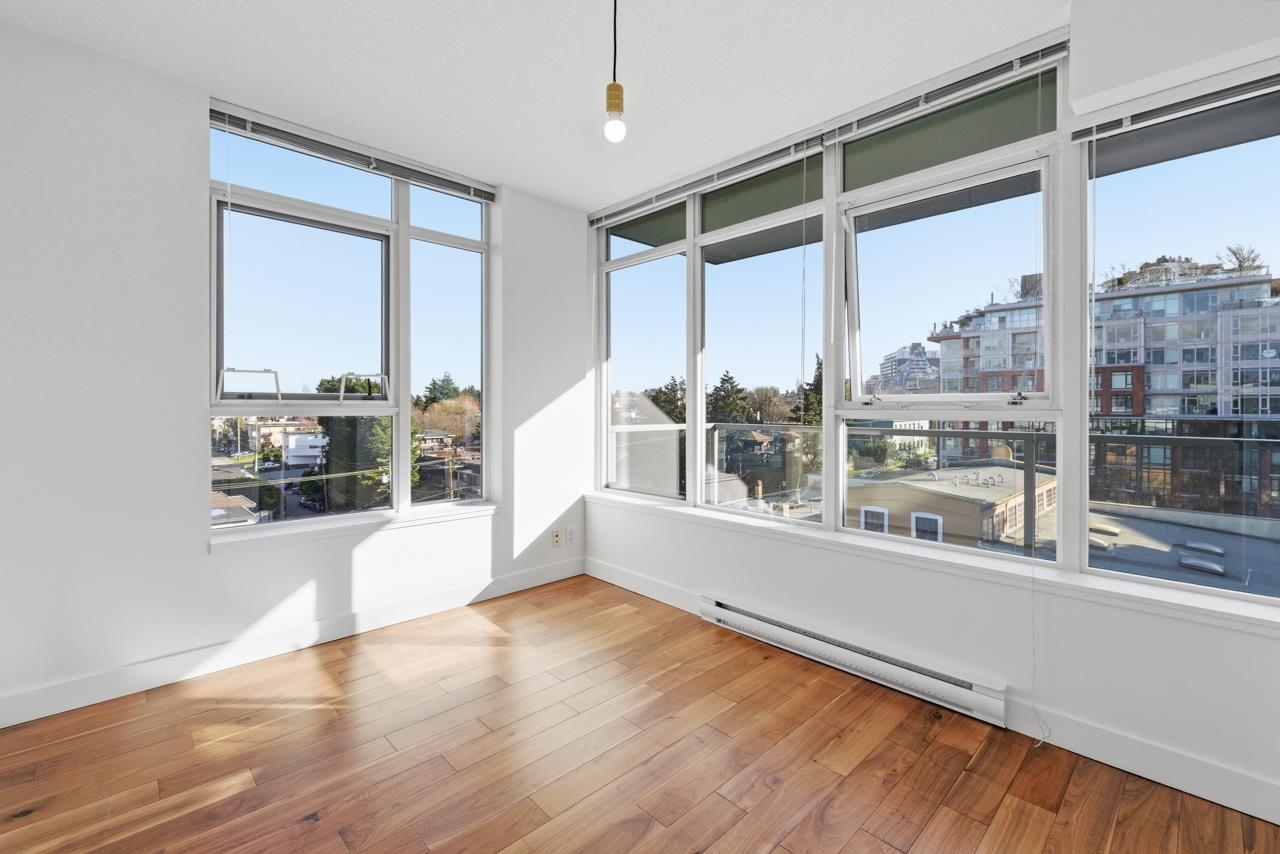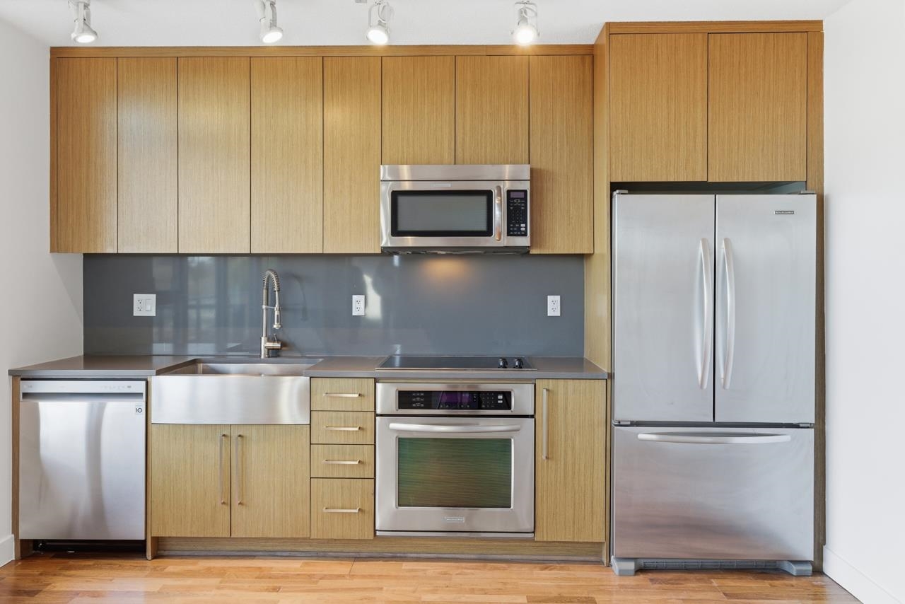 The District Building, by award winning Amacon. Located in the heart of Mount Pleasant, this 1 Bedroom CORNER unit features H/W floors, S/S Appliances, Wood Cabinets, In Suite Laundry, & an OVERSIZE south facing balcony w/views. The unit features floor to ceiling windows throughout offering ample natural light. The building features 2 rooftop decks w/BBQs, fireplaces, & stunning views of Downtown & Mountains, a media room, & gym. Outside your door you are steps from Parks, Craft Breweries, Mount Pleasant Co...
