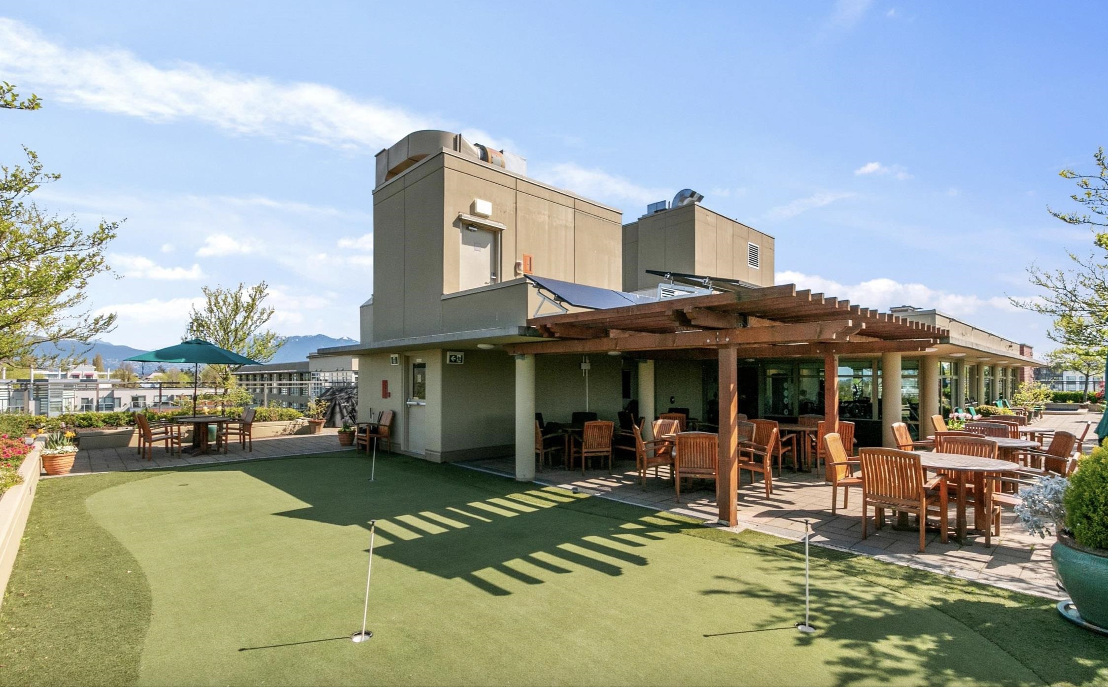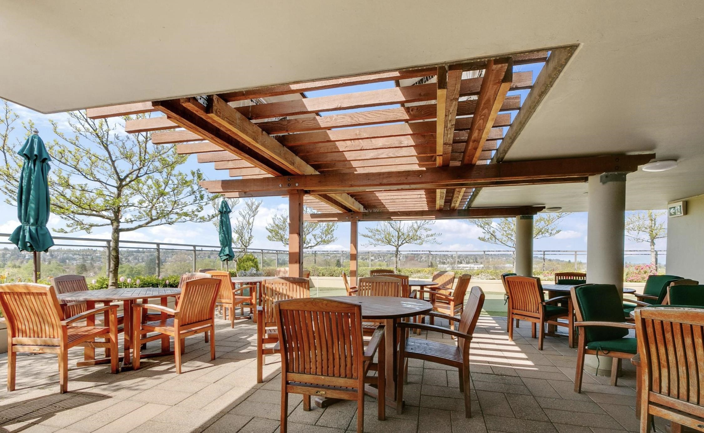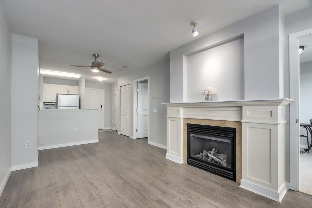 Fabulous Sub Penthouse at Season's, a 60+ building situated in the picturesque Arbutus Walk neighbourhood. Luxurious hotel-style amenities and services. This sub penthouse 1 bdrm & den with air conditioning boasts an eastern orientation with views of the mountains/trees. Enjoy the extensive fitness centre, rooftop garden terrace, and putting green. Notable features include a gas fireplace, newer flooring, additional pantry added, generous bedroom closet, a spacious bathroom with tub, in-suite washer/dryer, ...