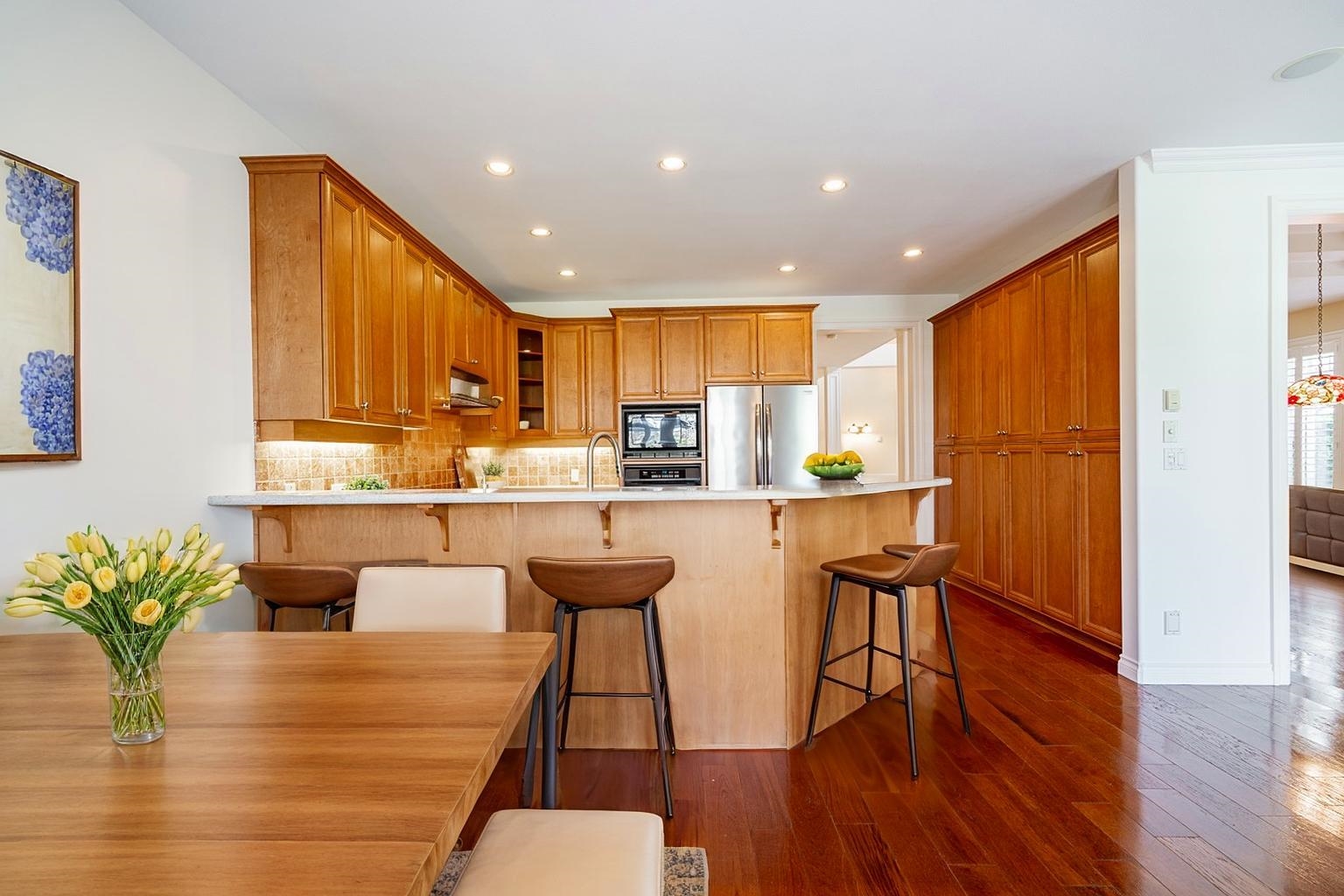 Nestled in the sought-after Morgan Creek community near the golf course, this executive duplex-style home offers exclusive living within a gated enclave—luxury at its finest. The main floor features a living room w double height ceilings & a stunning oversized gas fireplace, a private den/office, & a chef-inspired kitchen w ample storage & a gas stove. A cozy family room w a second gas fireplace creates the perfect space for relaxing/entertaining. Upstairs, you’ll find 3 spacious bdrms, incl beautiful prima...