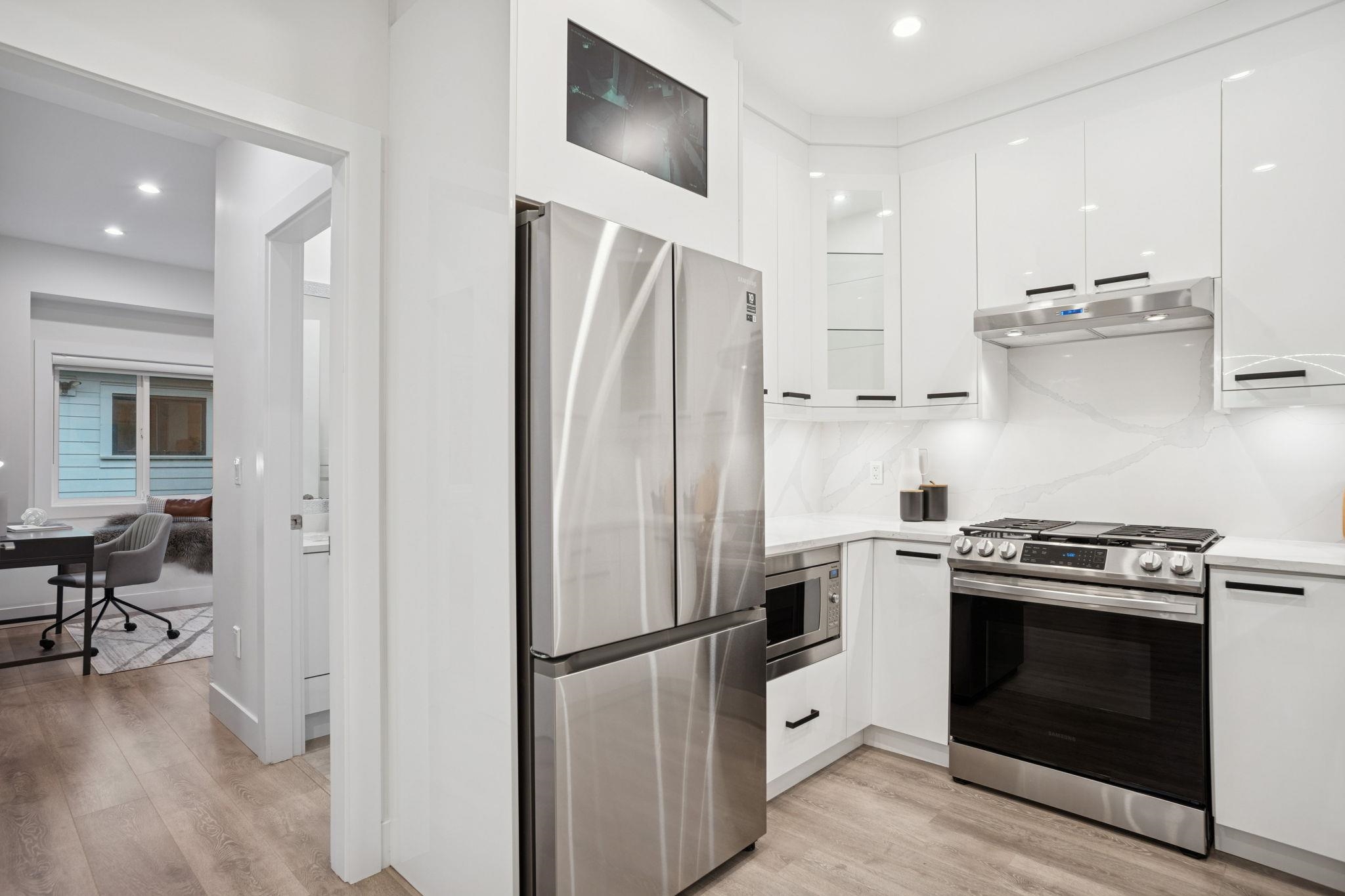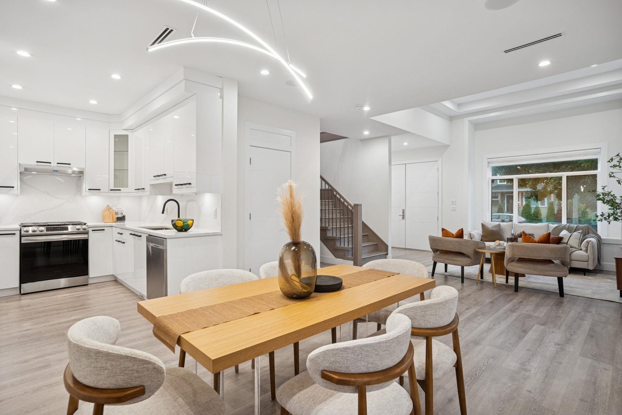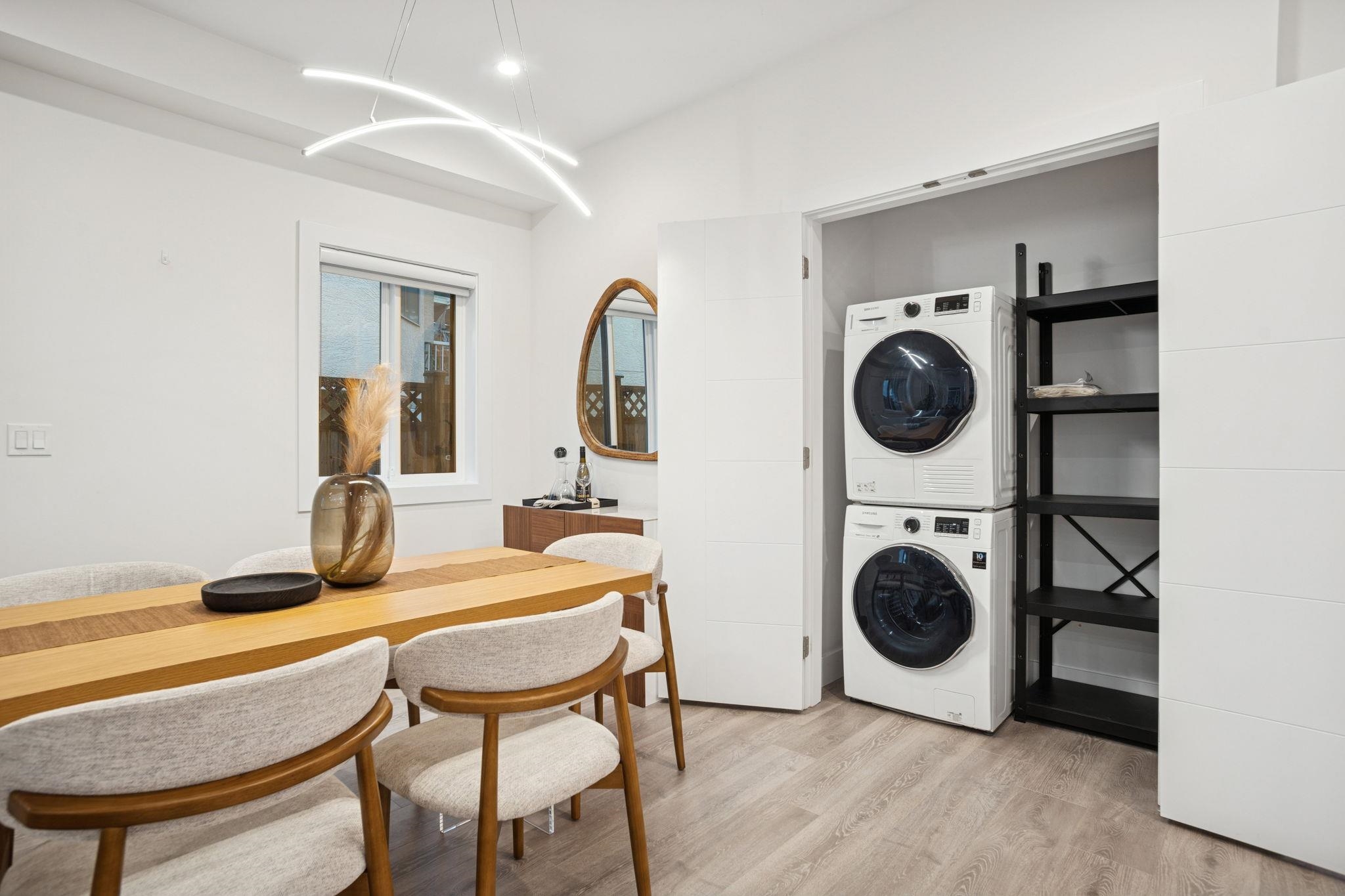 Well-designed 4 bed/4 bath modern duplex blends comfort, style, and function. Bright main living area features over-height ceilings and large windows that invite natural light. A well-equipped kitchen with quality appliances offers space for daily cooking and entertaining, while spa-inspired bathrooms add a relaxing touch. Stay comfortable year-round with radiant in-floor heating and A/C. Smart home features include built-in speakers, central vacuum, and a security camera system. The flexible main floor lay...