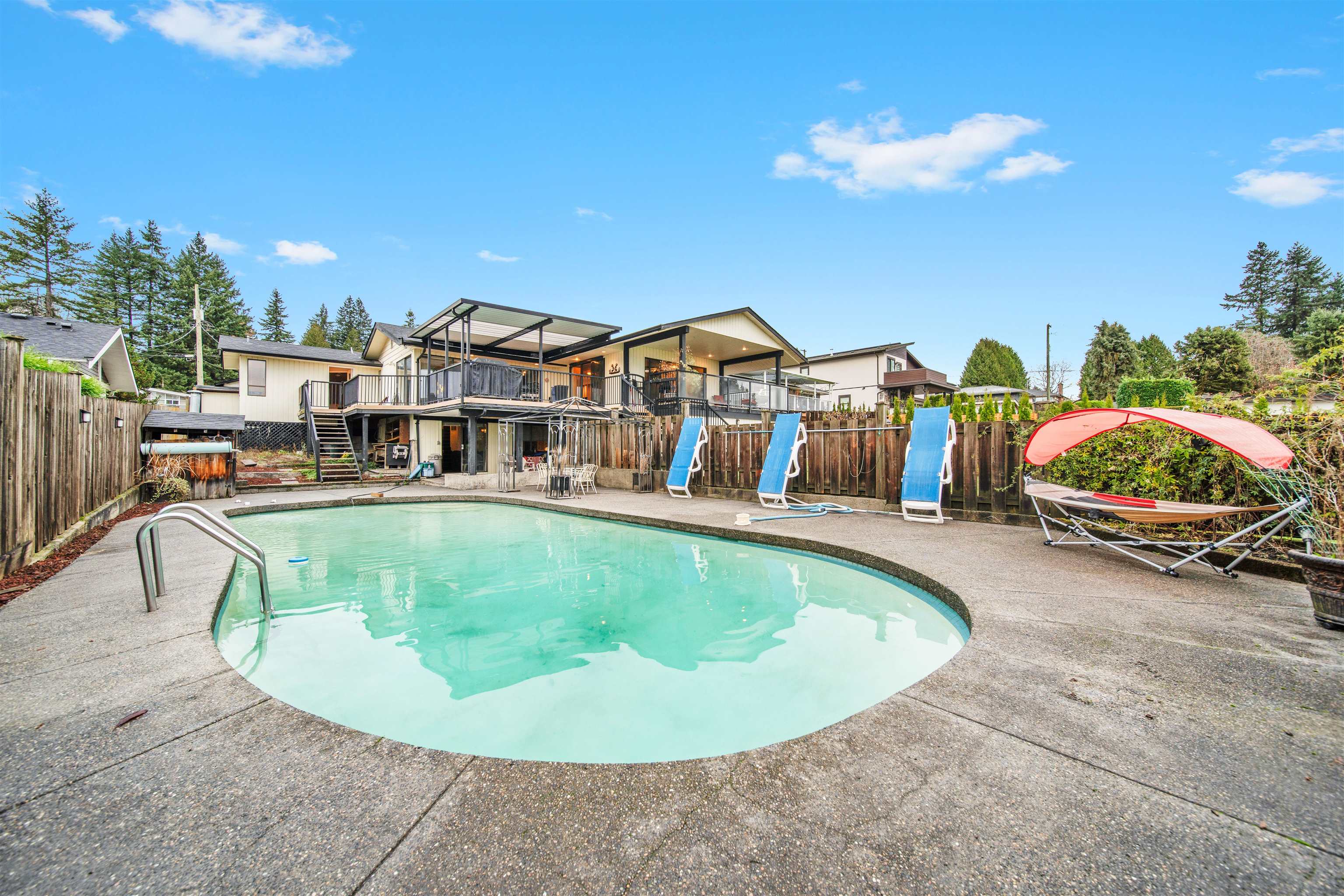Spacious family home on a large view lot w/ in-ground pool, huge covered deck & great indoor-outdoor flow. Main level offers bright open living/dining areas w/ big windows, skylight, stone FP & multiple sliders to the deck. Oversized kitchen features ample cabinetry, FiveStar gas cooktop, S/S hood, F&P fridge, wall oven & built-in microwave. Generous bdrms & functional layout w/ excellent natural light. Lower level is walk-out to pool & yard—ideal for family use or future suite potential (buyer to verify). ...