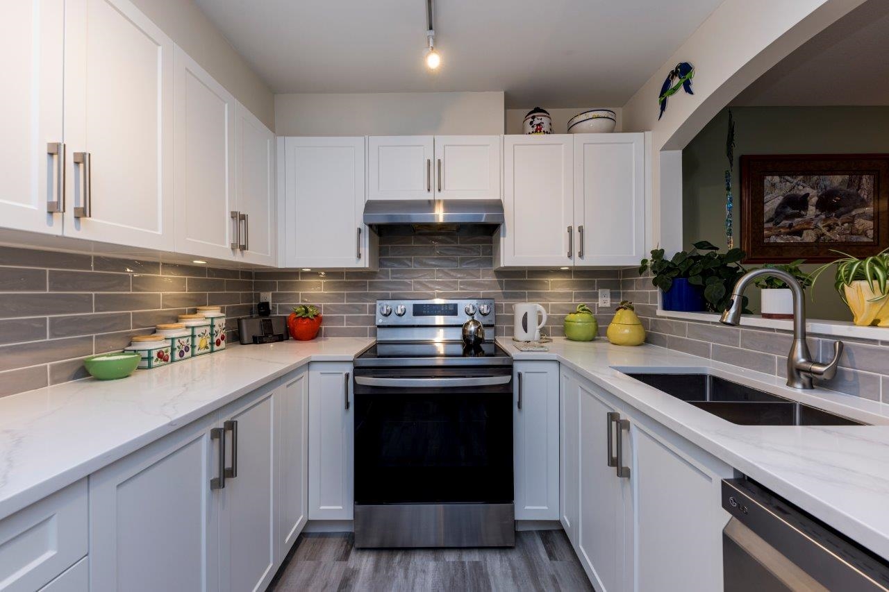 TUDOR GROVE BY ADERA. Tucked away on a CHERRY TREE LINED STREET, this inviting 2 bdrm, 2 bath ,2 parking stall Townhome with its own private entrance offers the perfect blend of comfort and style. Extensively updated in 2021, feat: UPDATED KITCHEN (appliances, flooring, cabinetry, counters, lighting & hardware), UPDATED MAIN BATHROOM & NEWER CARPETS. Spacious primary bdrm includes a lovely ensuite as you pass through the spacious walk in closet. Enjoy cozy evenings by the gas fireplace in the BRIGHT LIVING ...