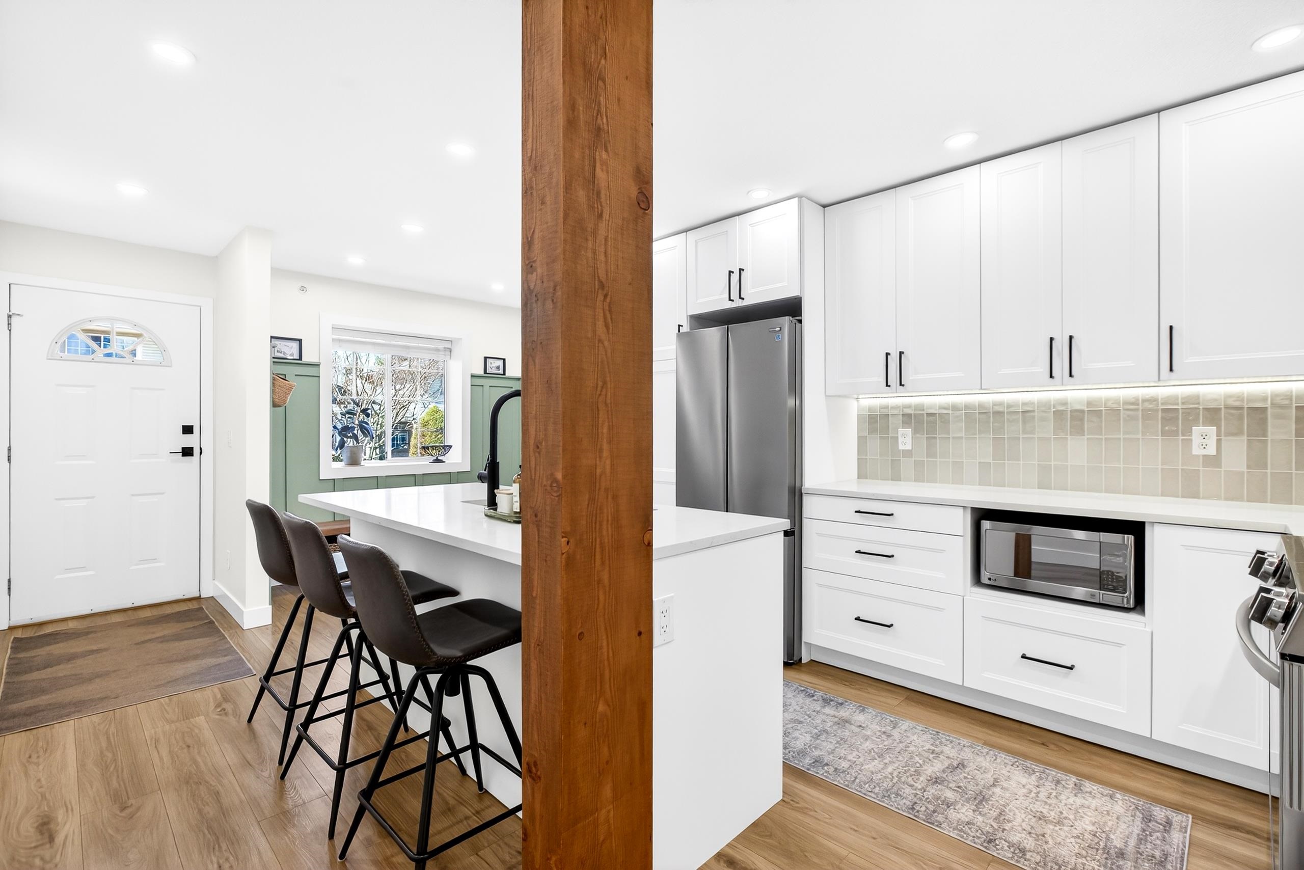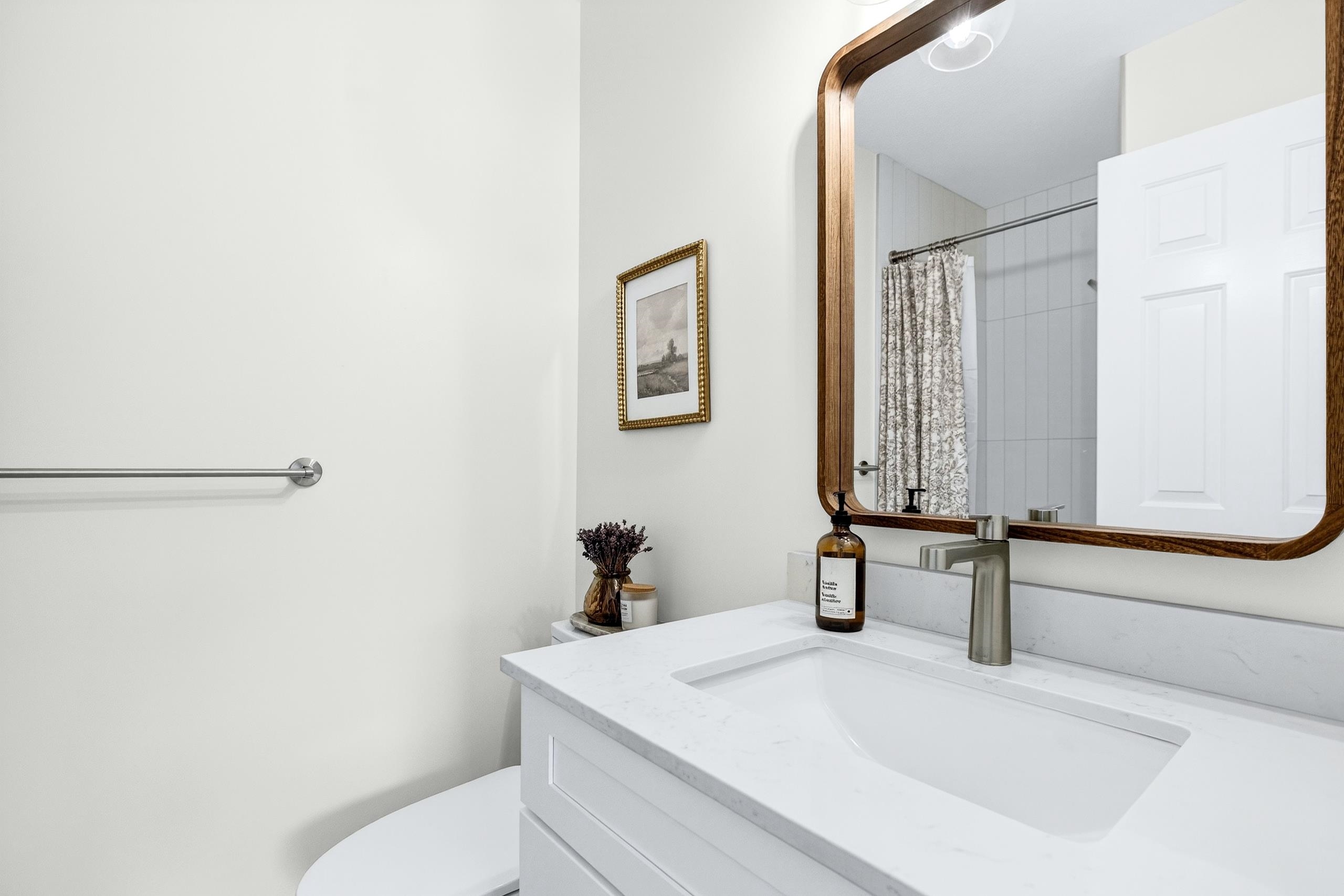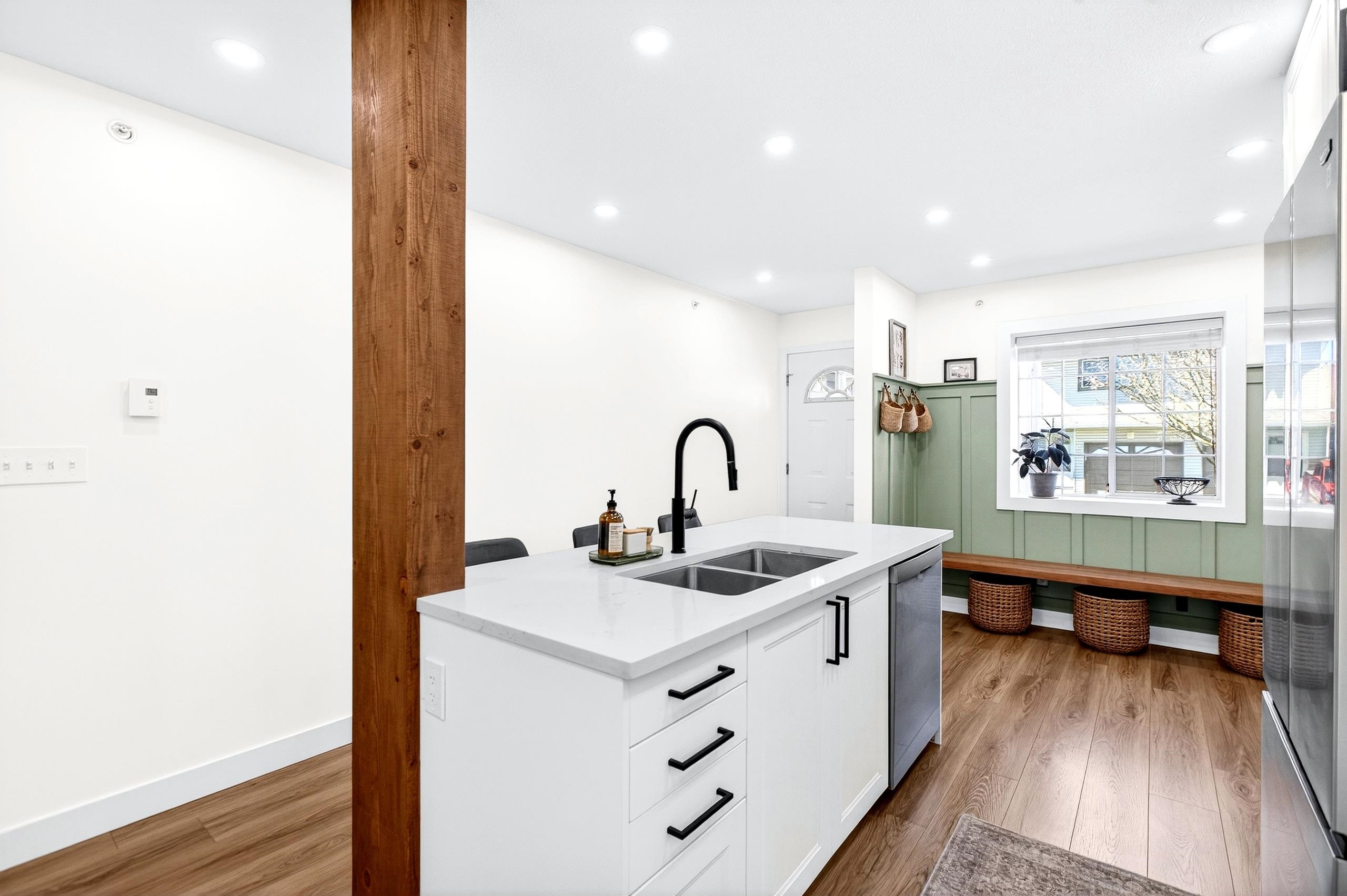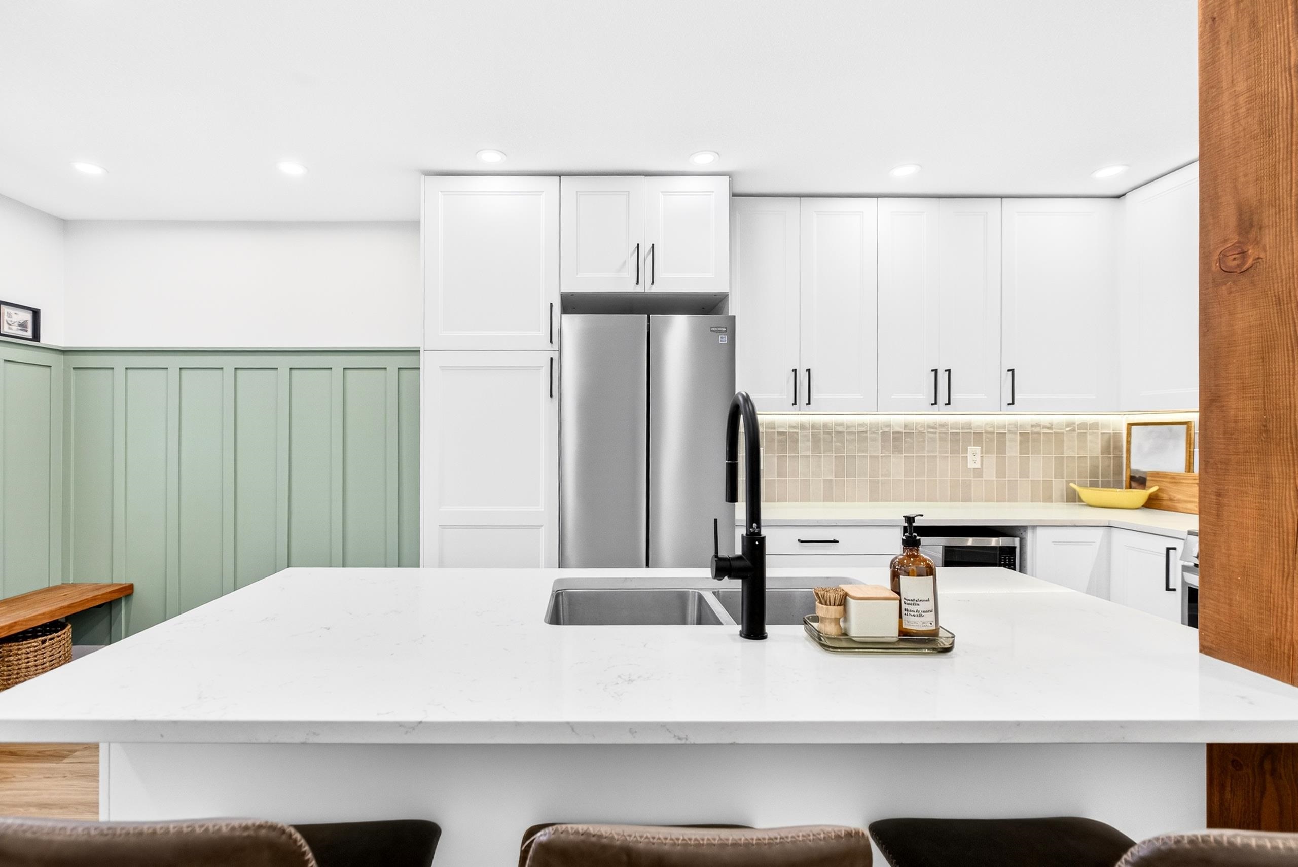 Renovated 2 bdrm, 2 bthrm centrally located at the popular Mcmyn Estates. Large gourmet kit offers updated cabinets w/ undermount lighting, quartz counters/breakfast bar, tiled bcksplsh, recessed lights, wainscotting & stainless steel appl. Adjacent dining/living rm w/ new gas fireplace w/ tile surround & custom mantle. Sliding doors leading to a private east facing bckyrd/garden w/ cement patio perfect for entertaining. Spacious bdrms, both w/ ensuite bthrms, incl primary w/ WIC. Stylish barn doors, lam fl...