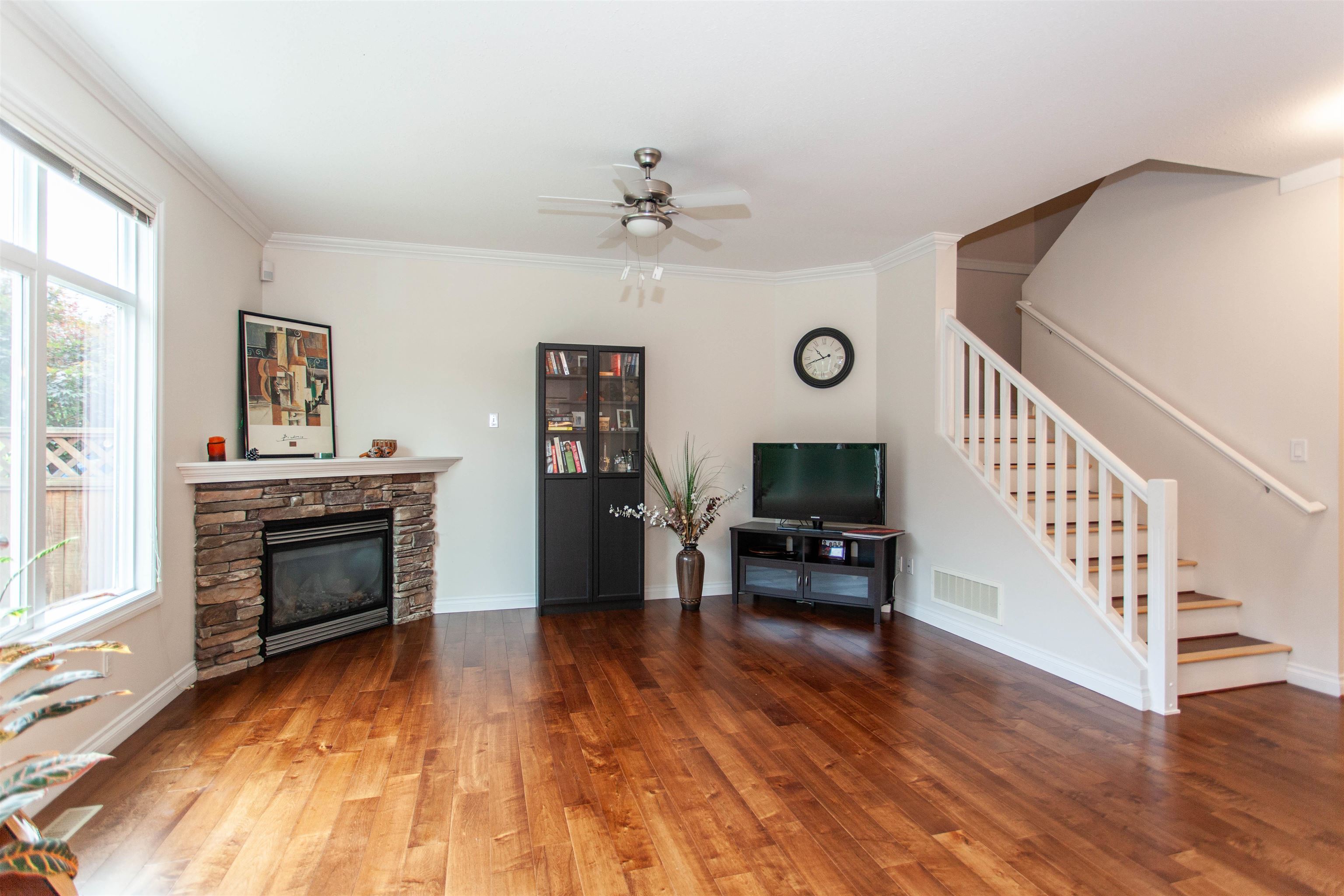 Quarrystone — 10-out-of-10 townhome. Beautifully maintained 12-unit complex! This spacious 2-level home offers 3 bedrooms + 3 bathrooms, combining comfort, style, & functionality. Recent upgrades include new maple hardwood flooring on both levels, new kitchen cabinets + countertops, fresh paint, new crown moulding throughout, updated appliances, & a newly renovated washroom. The open-concept living & dining areas feature a stunning stone fireplace, while the private back patio overlooks peaceful green space...