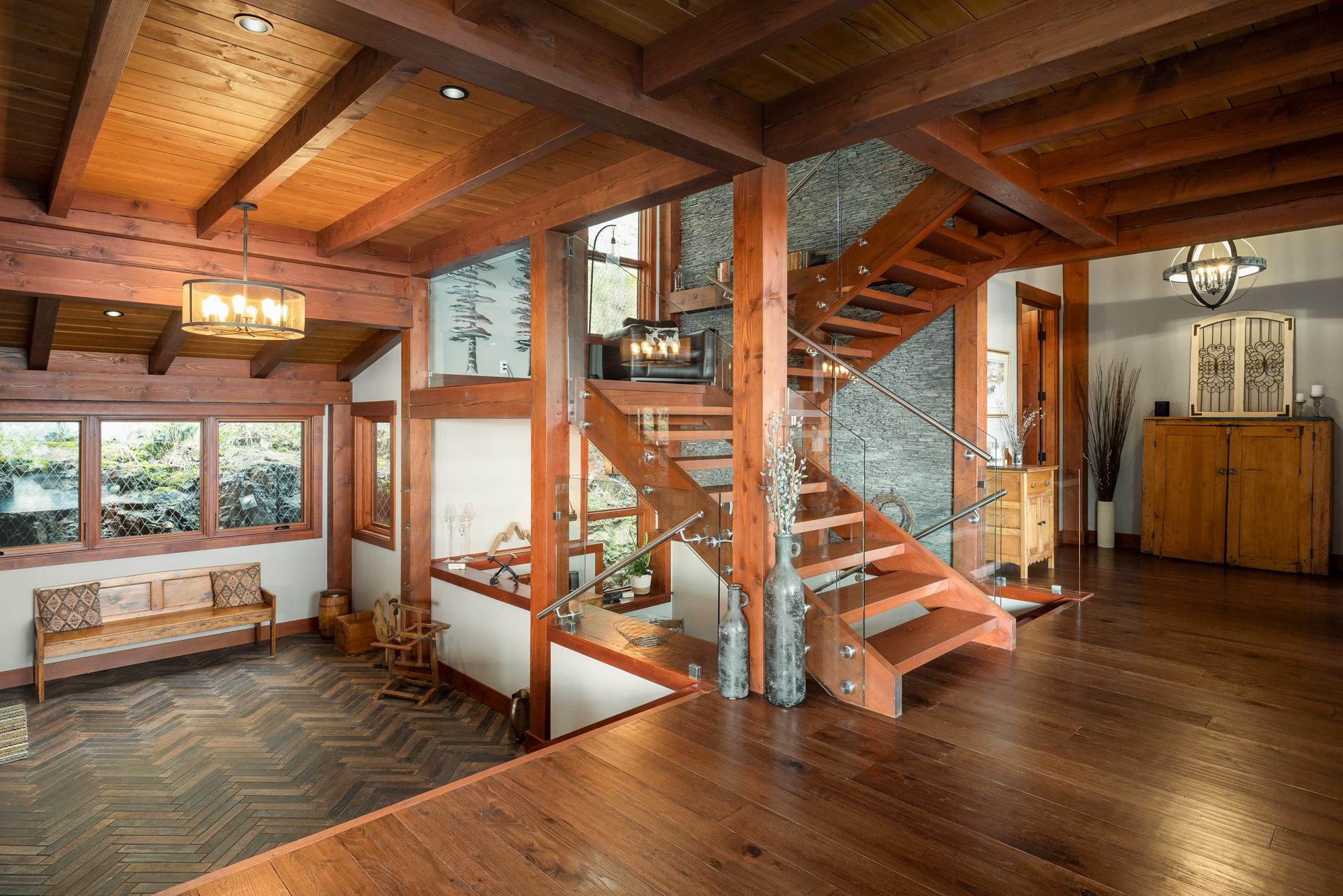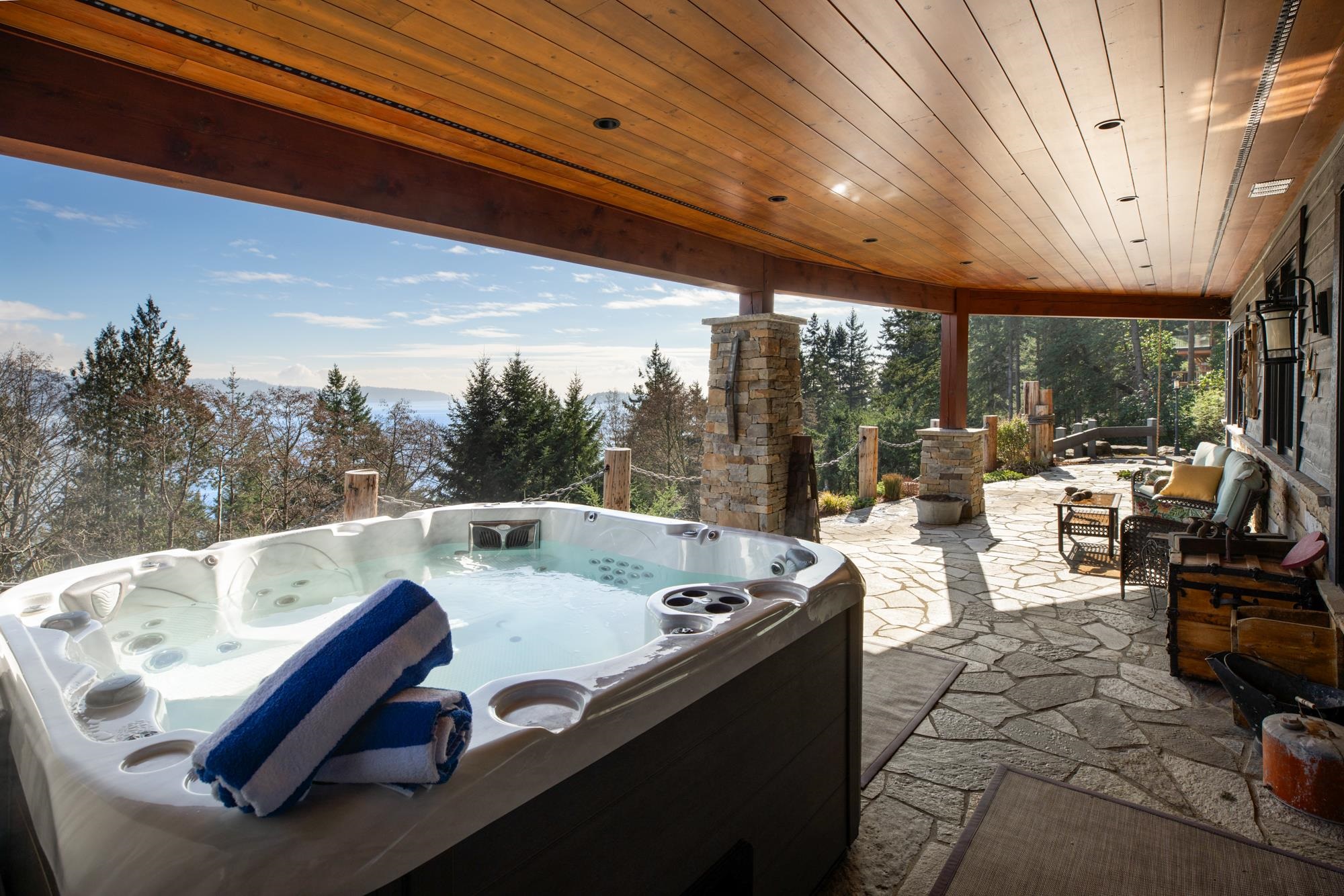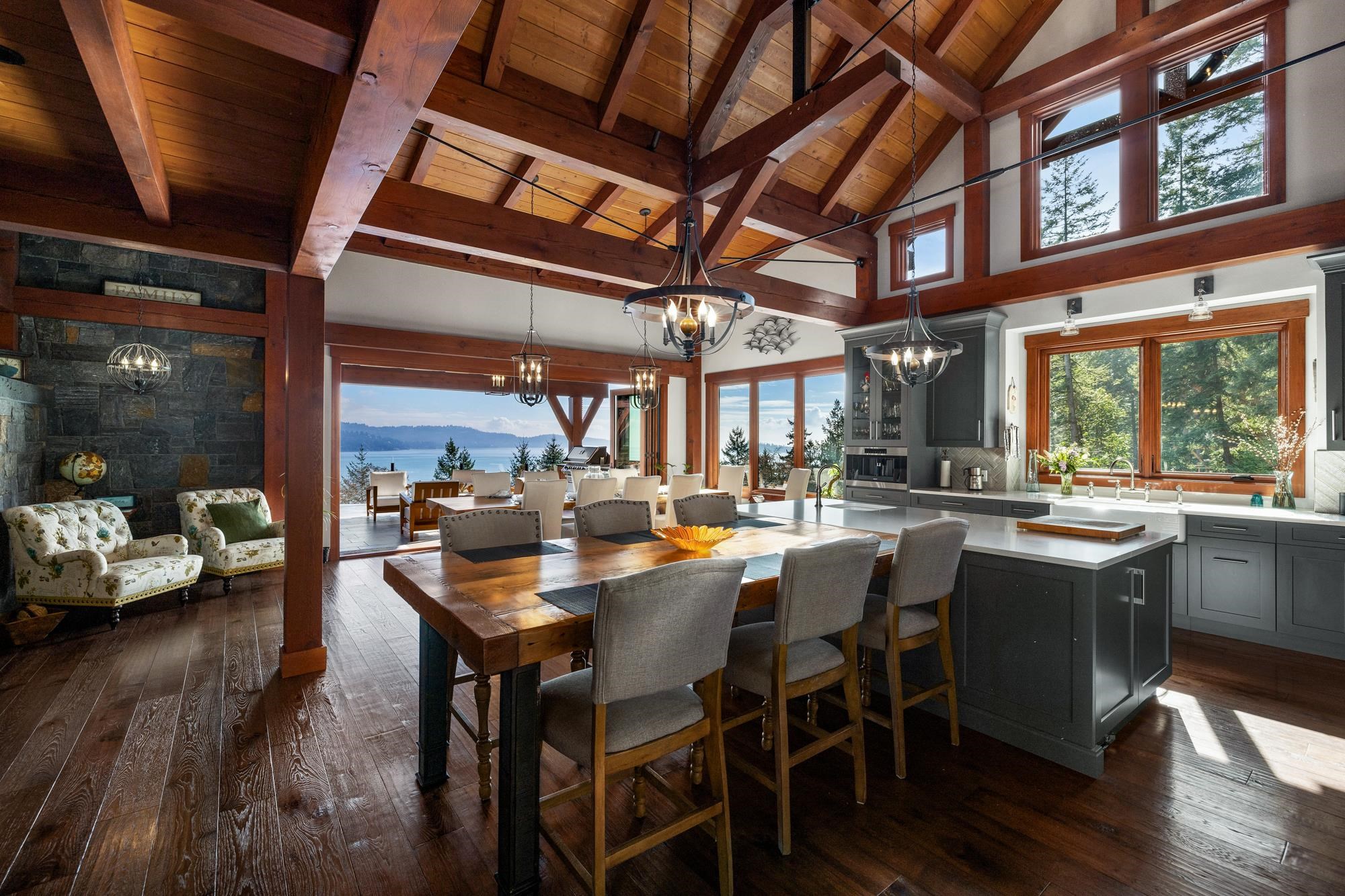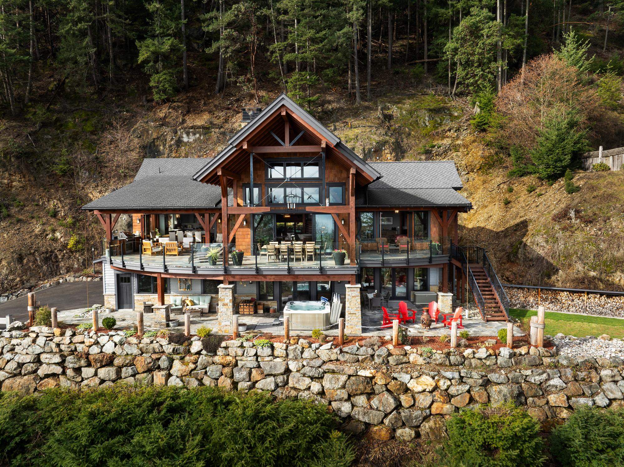 This stunning ocean view property featuring a masterpiece of engineering, custom built, Canadian Timberframe Ltd home is ready to welcome a new family. The expansive timber peaks & over 1100 sq.ft. covered entertainment deck sets it apart. The open plan main floor boasts timberframe ceilings soaring over 24'. Custom Loewen Douglas Fir interior/metal exterior windows & doors, engineered Hickory flooring & exclusive lighting compliment the space. Chefs will covet the gourmet kitchen with state of the art ...