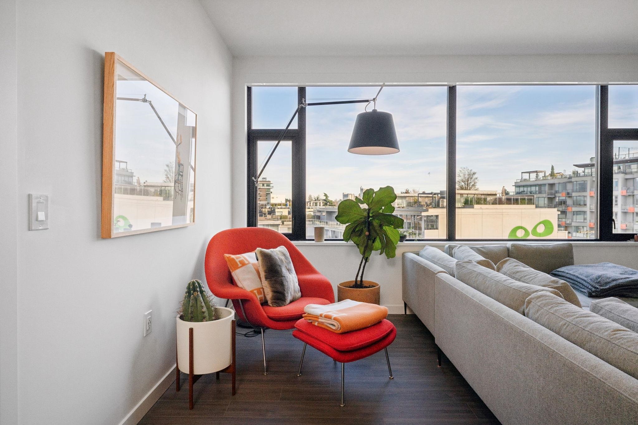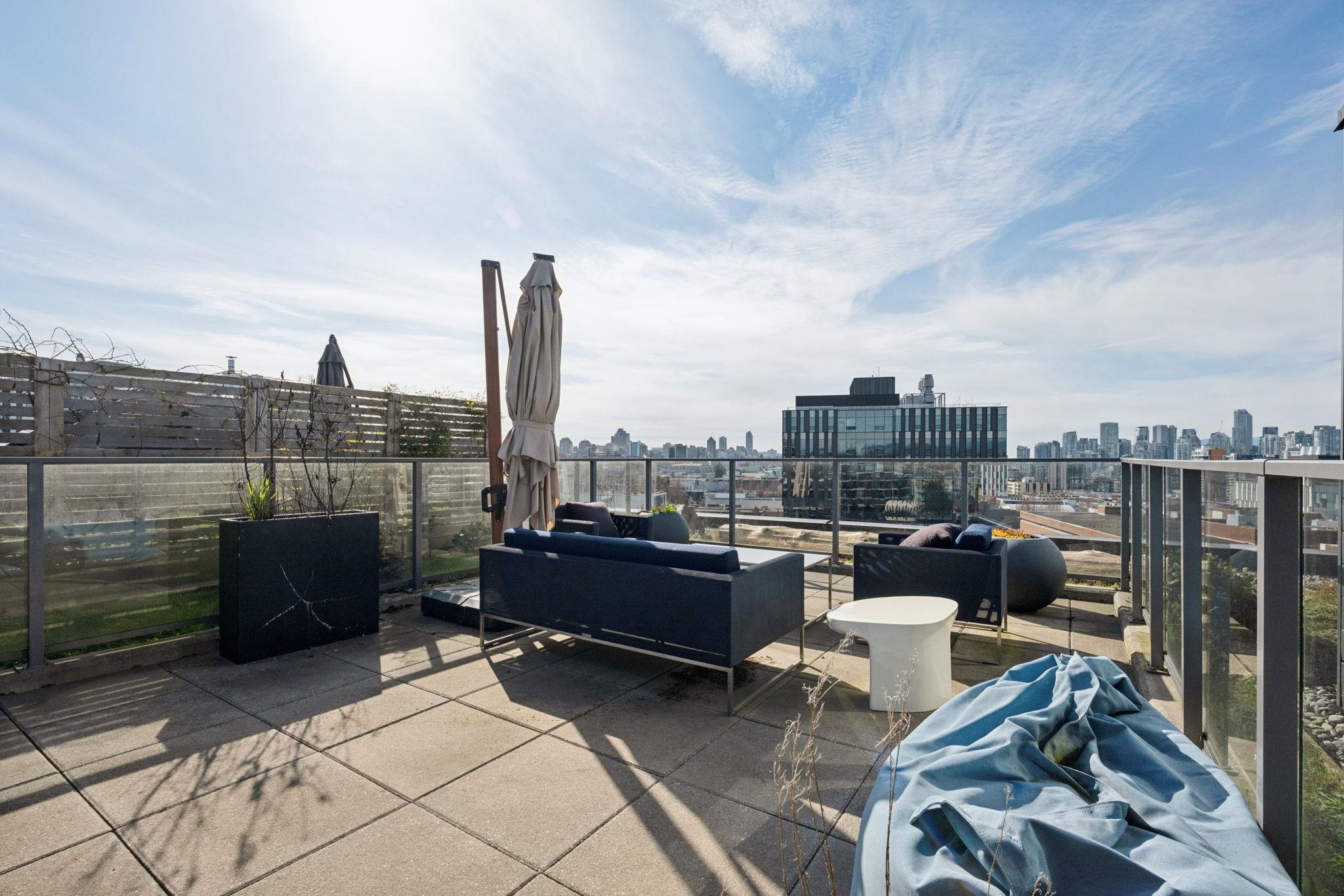Perched atop a boutique Chard Development, this 2 bed, 2 bath residence blends refined design with urban edge. Clean lines, modern finishes, and natural light define the open-concept living space, anchored by a sleek kitchen with premium Wolf stainless steel appliances. A standout private rooftop patio offers sweeping downtown Vancouver views for an elevated setting for quiet mornings or evening entertaining. Complete with 2 parking stalls, a private EV charger, and a large storage room, this home delivers ...