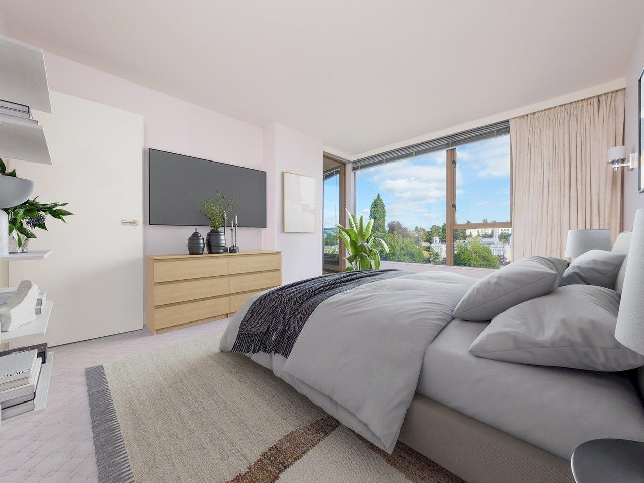 Welcome to sophisticated elegance at the Wilshire in prestigious Kerrisdale. This exclusive condo spans over 1,400 SF, featuring 2 bedrooms 2 bathrooms & family room. Enjoy sweeping views from the N. Shore Mountains to West Van, DT Van & English Bay from every room. Gourmet kitchen includes modern wood cabinets, granite, AEG Oven & Bosch DW. Rich Brazilian hardwood floors enhance the living spaces. Renovated in 2013, the kitchen, bathrooms & family room offer contemporary style. The spa-inspired ensuite fea...