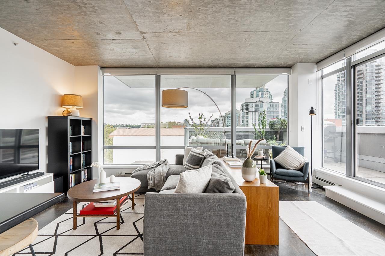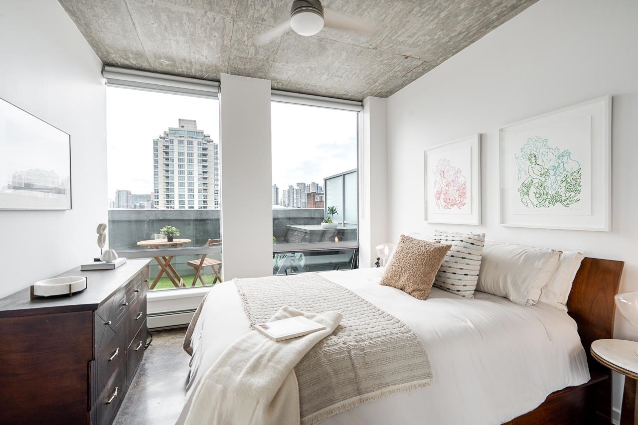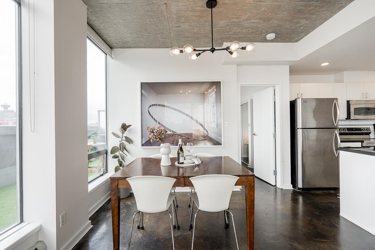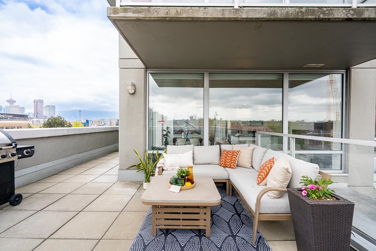 It's patio season in Strathcona! This 2-bed, 2-bath sub-penthouse boasts an airy, loft-inspired vibe, with soaring ceilings, polished concrete floors, and a bright, open-concept layout opening onto a massive almost 500 sqft private terrace. Inside, floor-to-ceiling windows provide the perfect canvas for panoramic views of False Creek, North Shore Mountains, and the Downtown skyline. Over 900 sqft offers two separated bedrooms, two full bathrooms (one ensuite), a spacious living area, insuite laundry, and a ...