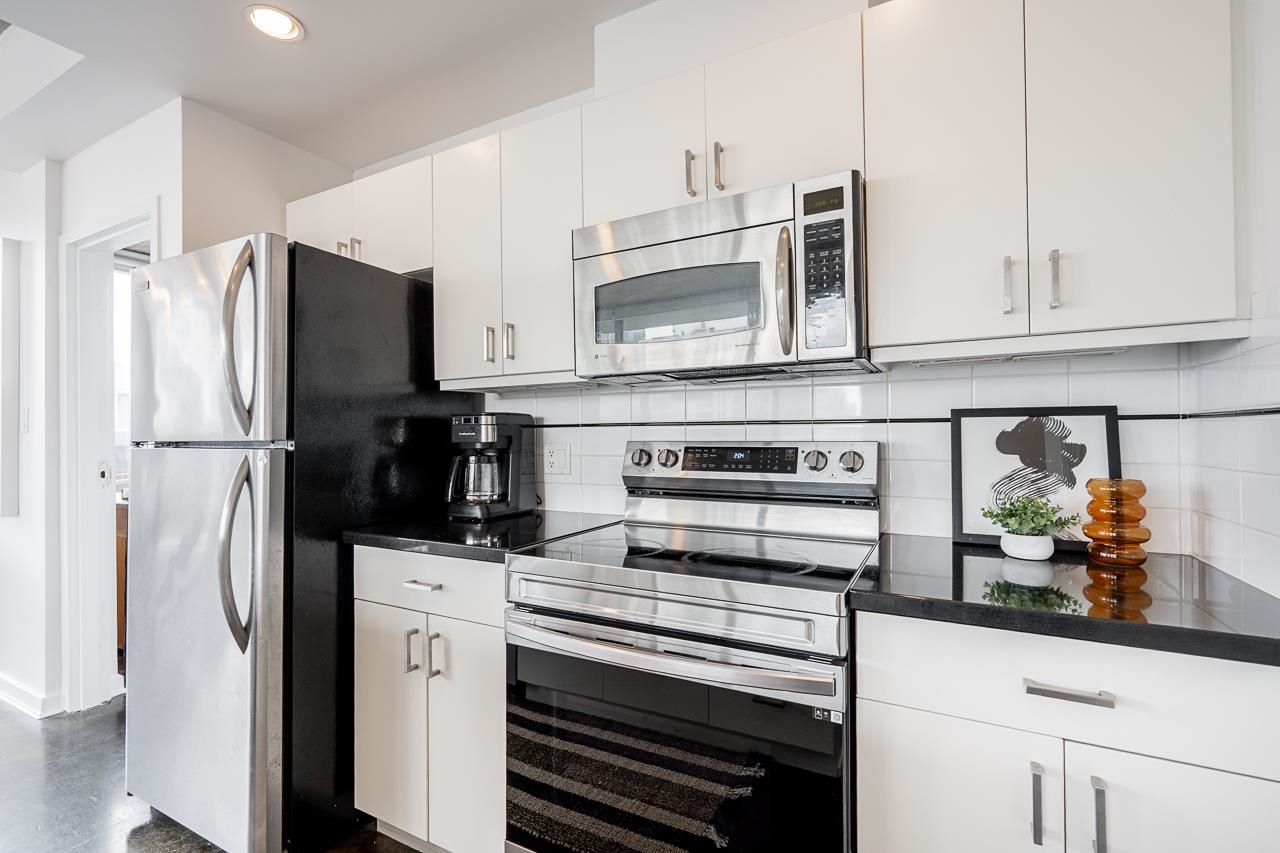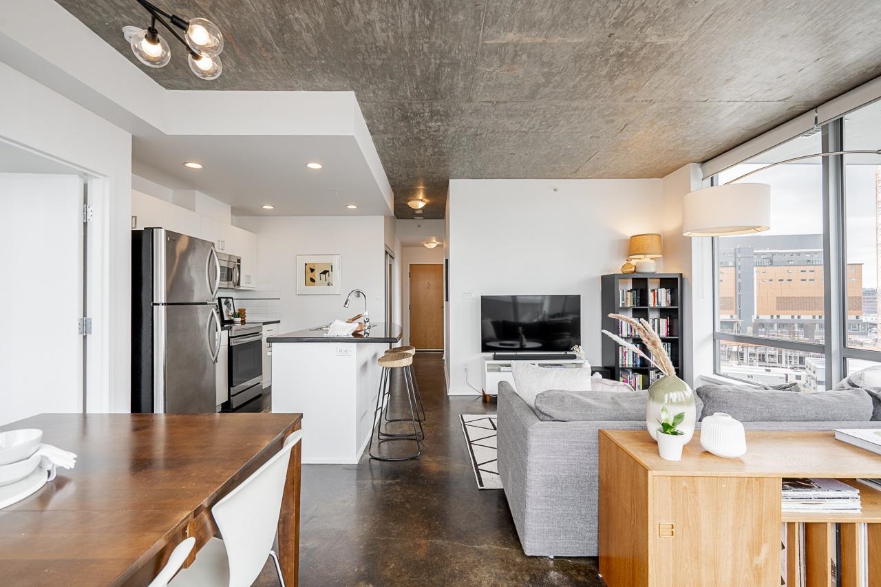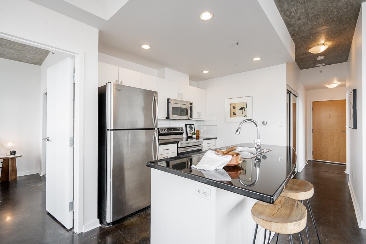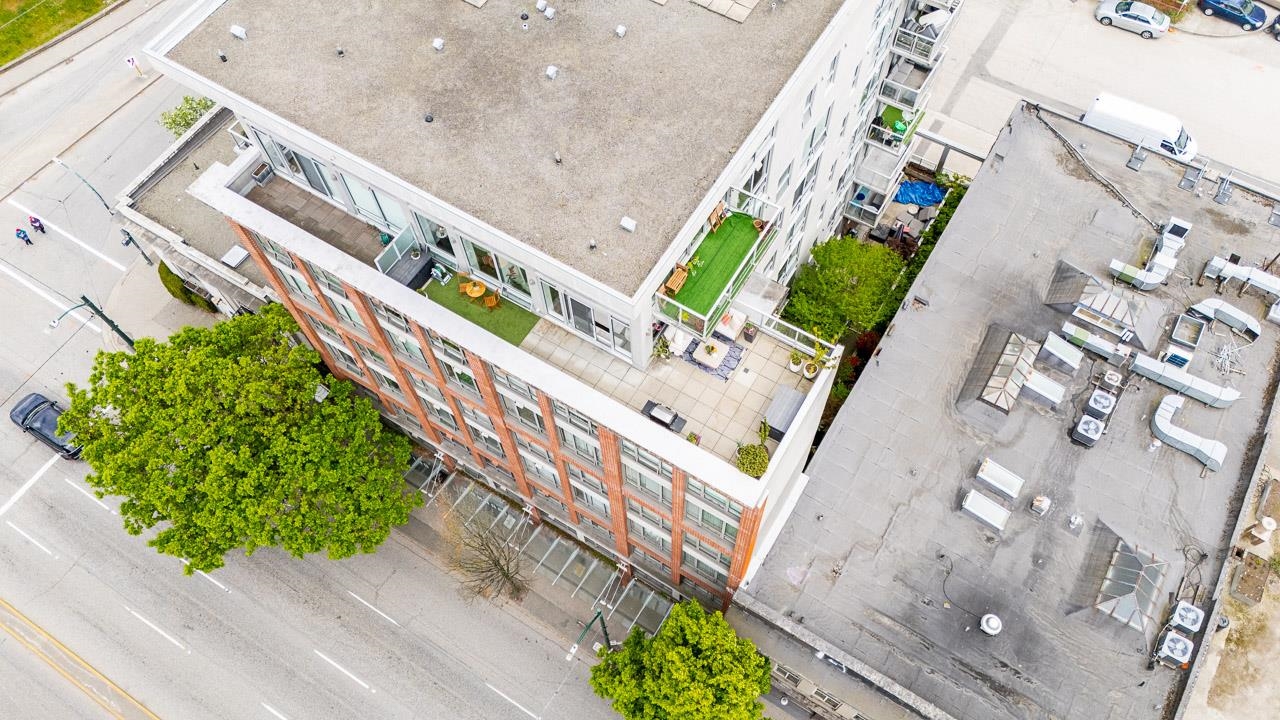 It's patio season in Strathcona! This 2-bed, 2-bath sub-penthouse boasts an airy, loft-inspired vibe, with soaring ceilings, polished concrete floors, and a bright, open-concept layout opening onto a massive almost 500 sqft private terrace. Inside, floor-to-ceiling windows provide the perfect canvas for panoramic views of False Creek, North Shore Mountains, and the Downtown skyline. Over 900 sqft offers two separated bedrooms, two full bathrooms (one ensuite), a spacious living area, insuite laundry, and a ...