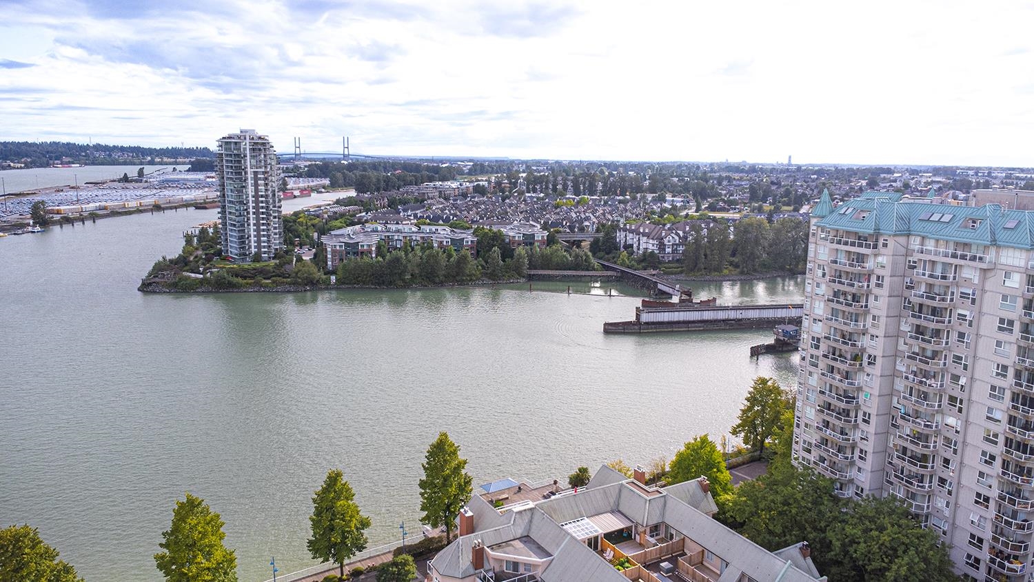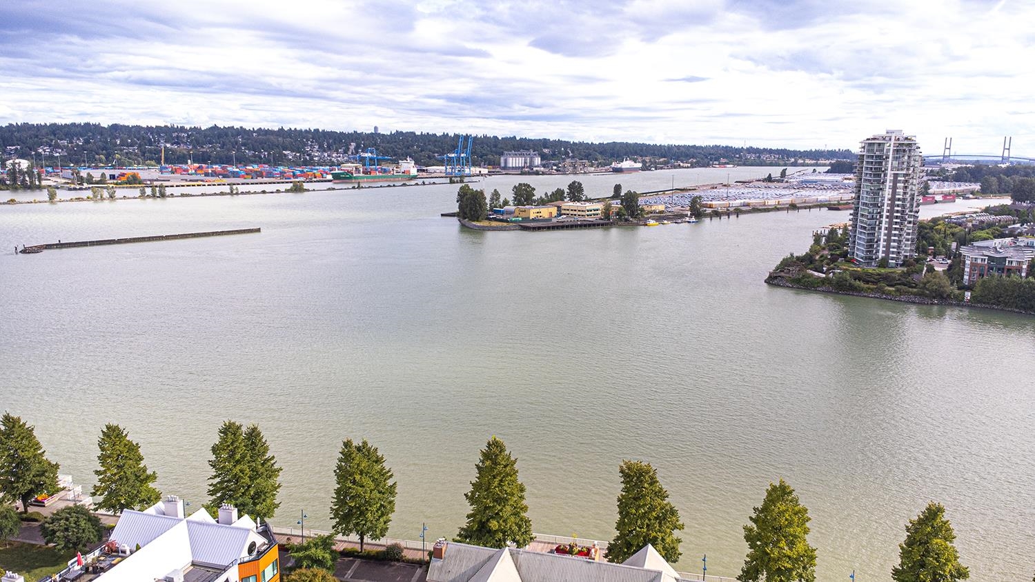 RIVIERA at the Quay – Riverfront Corner Unit. Rarely available 1,404 sq.ft. 2 bed and 2 bath corner home with spectacular southeast river views. Bright open kitchen flows into the dining and living area with fireplace. The spacious primary bedroom features a large ensuite, while all principal rooms open to the oversized south-facing deck. Includes walk-in laundry/storage room and 1 parking. Well-managed building with full amenities: indoor pool, hot tub, sauna, games room, clubhouse, and gym. Pets and renta...