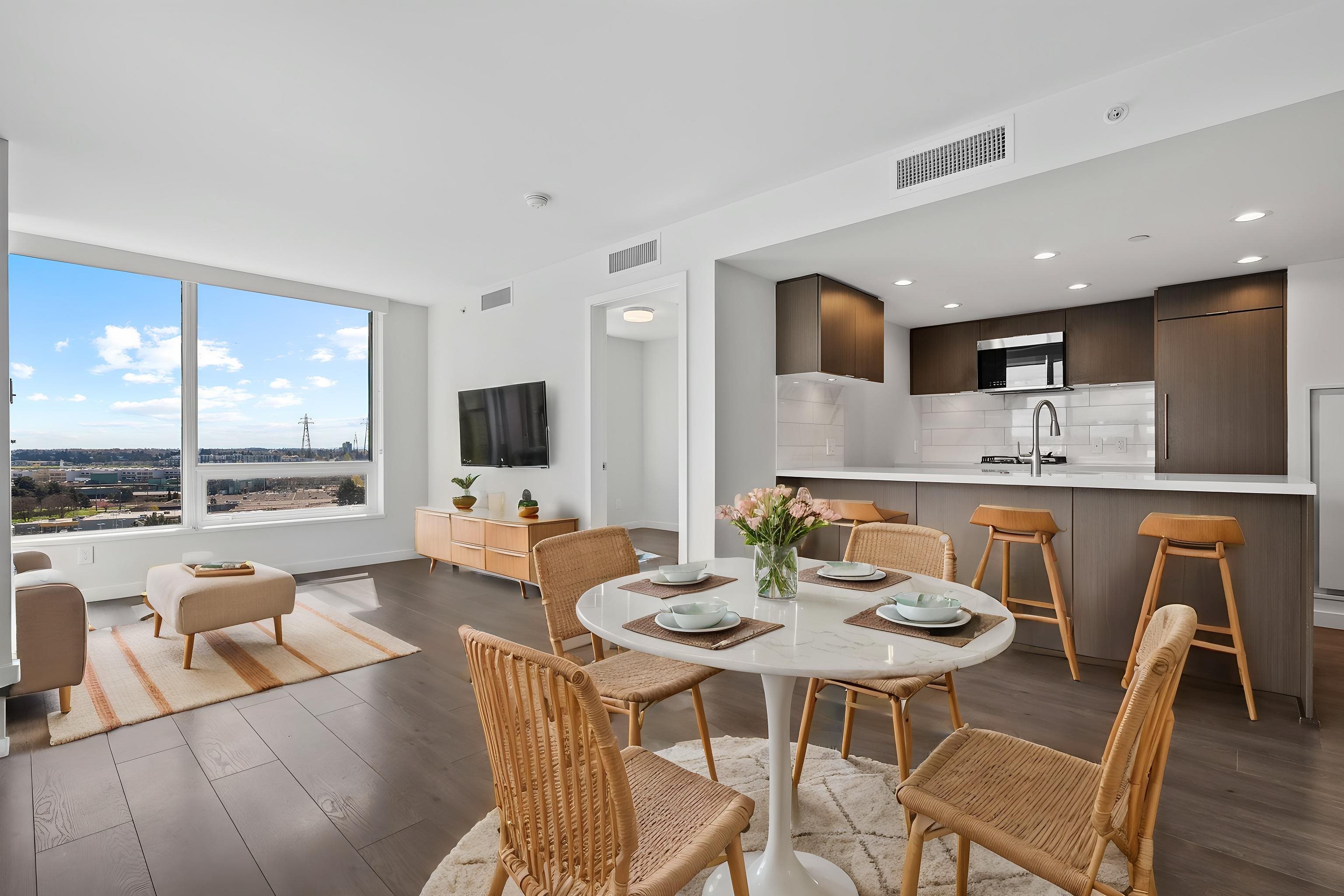 Stay cool, just in time for summer-this AIR-CONDITIONED 2 bed,2 bath plus Balcony CORNER home at the coveted Northwest is the total package. SE exposures and floor-to-ceiling windows flood the space w/natural light. Built by Onni in 2018, Northwest delivers resort-style living with 24-hour concierge, a fully equipped gym, party room, and rooftop garden. EV parking avail-future-proof your lifestyle. Inc. 1 parking stall and 1 storage locker. New D/W + fresh paint. Unbeatable location: Steps to Marine Gateway...