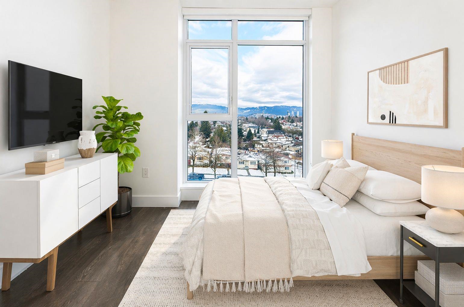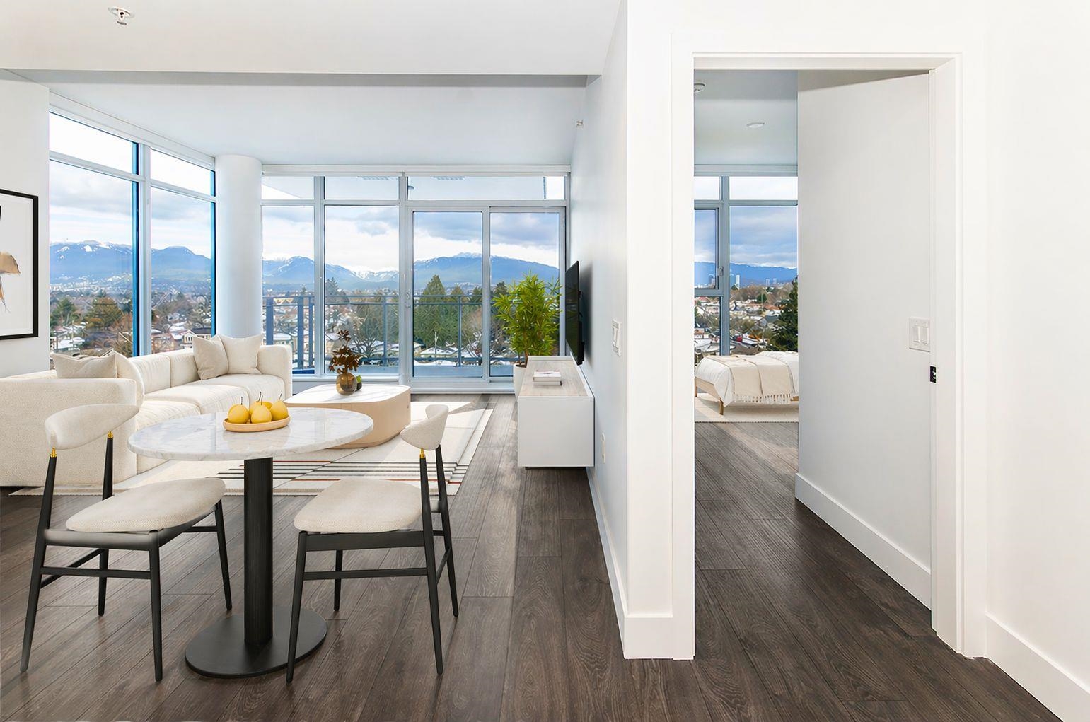 Exceptional residence at The Windsor, by Imani offers a perfect blend of comfort and location in vibrant Norquay Village. This thoughtfully designed 2 bedroom, 2 bathroom home features a spacious den, premium Bosch appliances, and air conditioning. Facing away from Kingsway, the home provides a serene and peaceful living environment. Enjoy breathtaking, unobstructed views of the North Shore mountains and downtown Vancouver—summer fireworks visible from your own home! Convenience at your doorstep with shops...