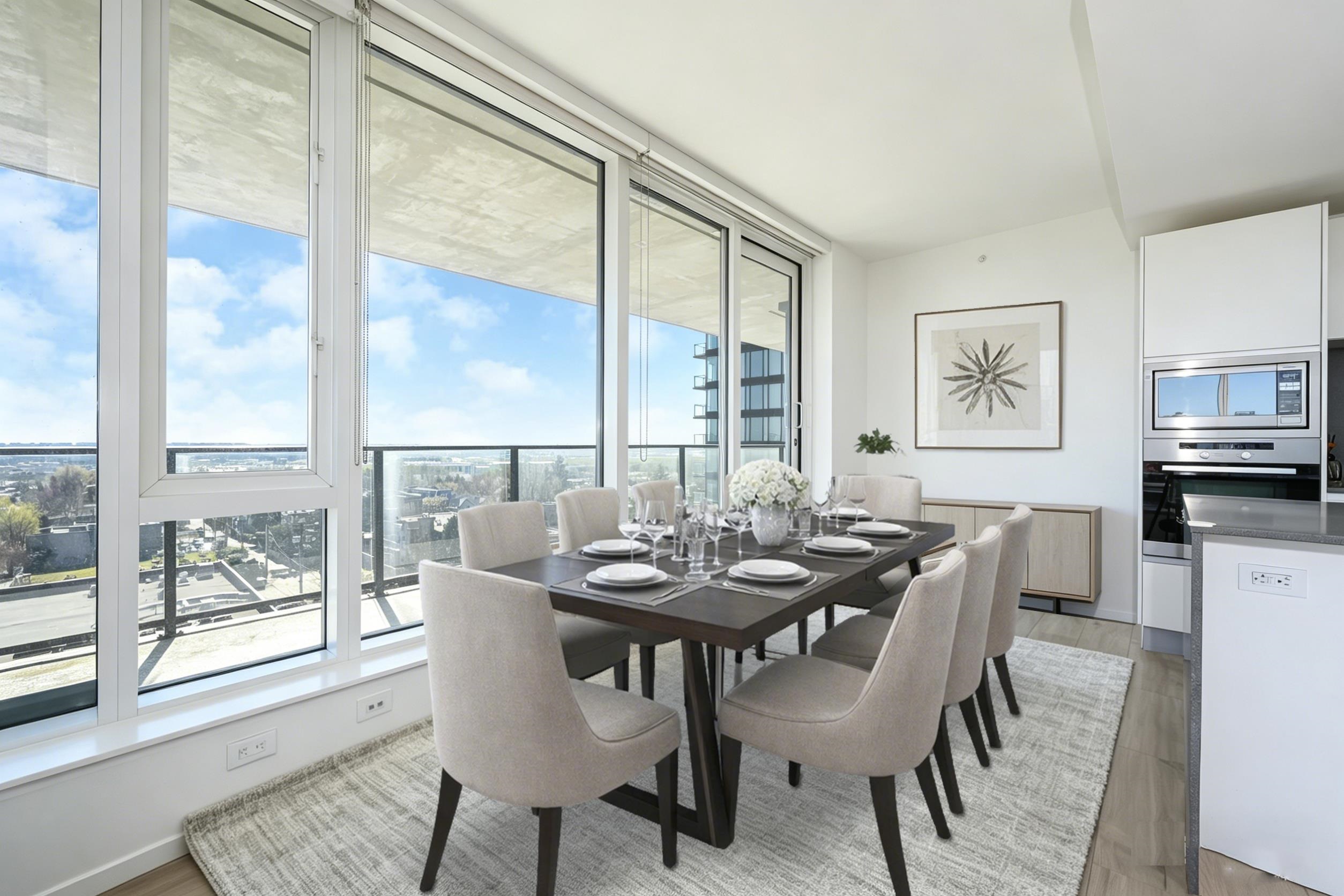 Granville at 70th by Westbank offers stunning SE facing mountain & city views. This 905 sqft. unit features open concept layout with 2 bedrooms + a den, complemented by high-end finishes throughout. Enjoy A/C, premium Miele & Sub-Zero appliances, European-style cabinetry, marble countertops, and a spacious balcony ideal for comfort and entertaining. Recently updated with new flooring & fresh interior paint. 1 parking stall & 1 storage locker. Exceptional amenities, including concierge service, a fully equip...