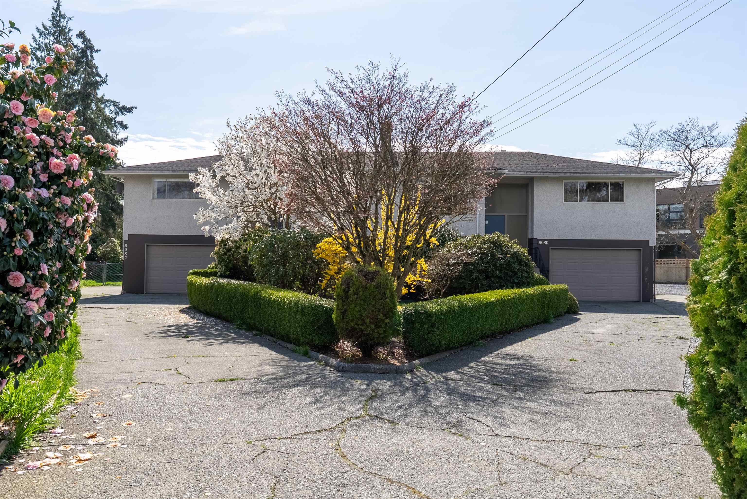 Full Side by Side DUPLEX w/a flexible plan that has a potential for 4 separate units. Updated, super clean & located on a huge park-sized 16,728 SF lot in prime Central Richmond by Blundell & No 3 Rd. Ample parking with 2 single garages and bonus parking for RV or Boat. The 8080 side has been completely renovated with newer kitchen, SS appliances, quartz counters & updated bath. The downstairs has a large family room, spacious laundry & back door that can be easily separated. The 8082 side is super cle...