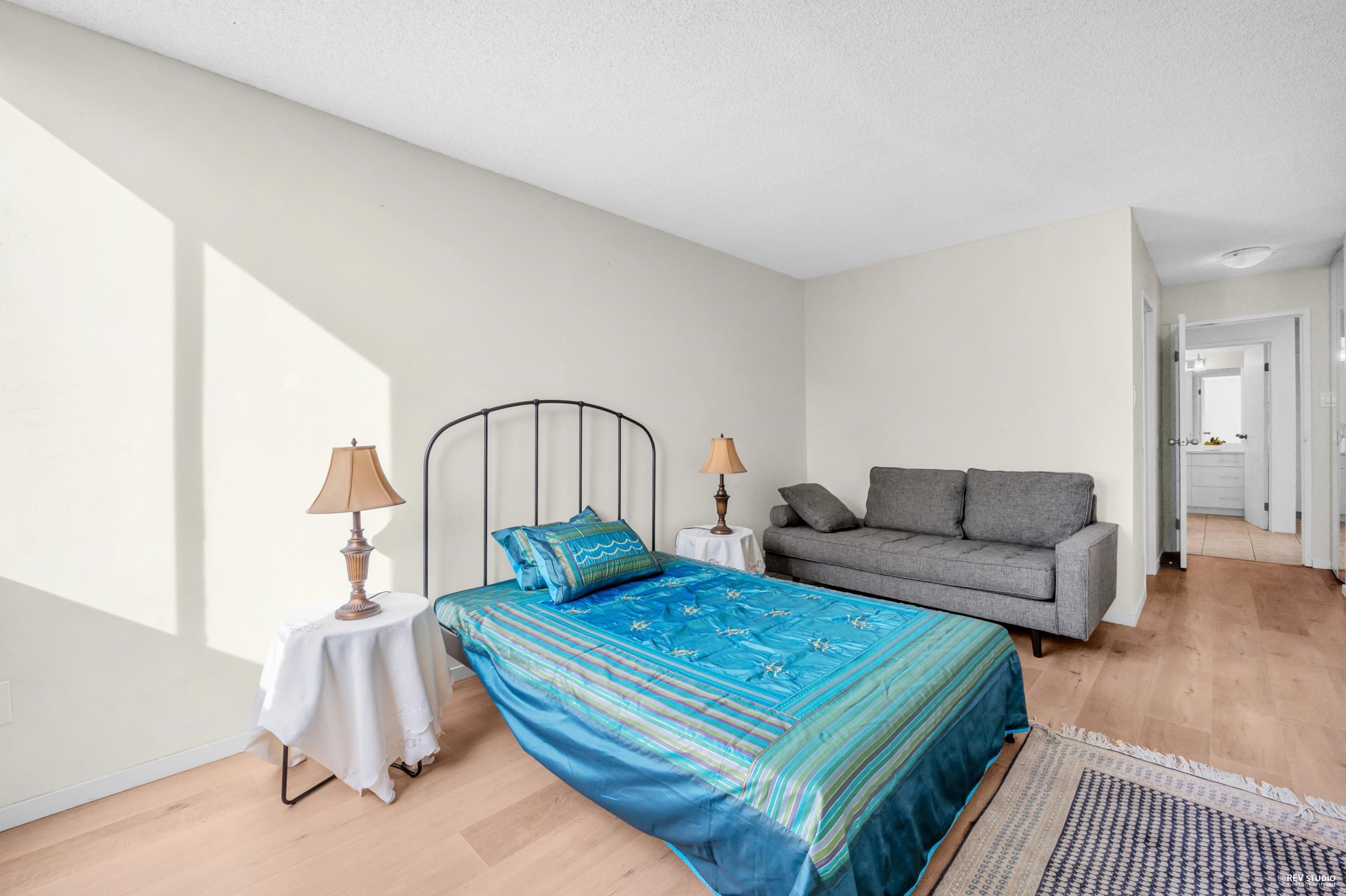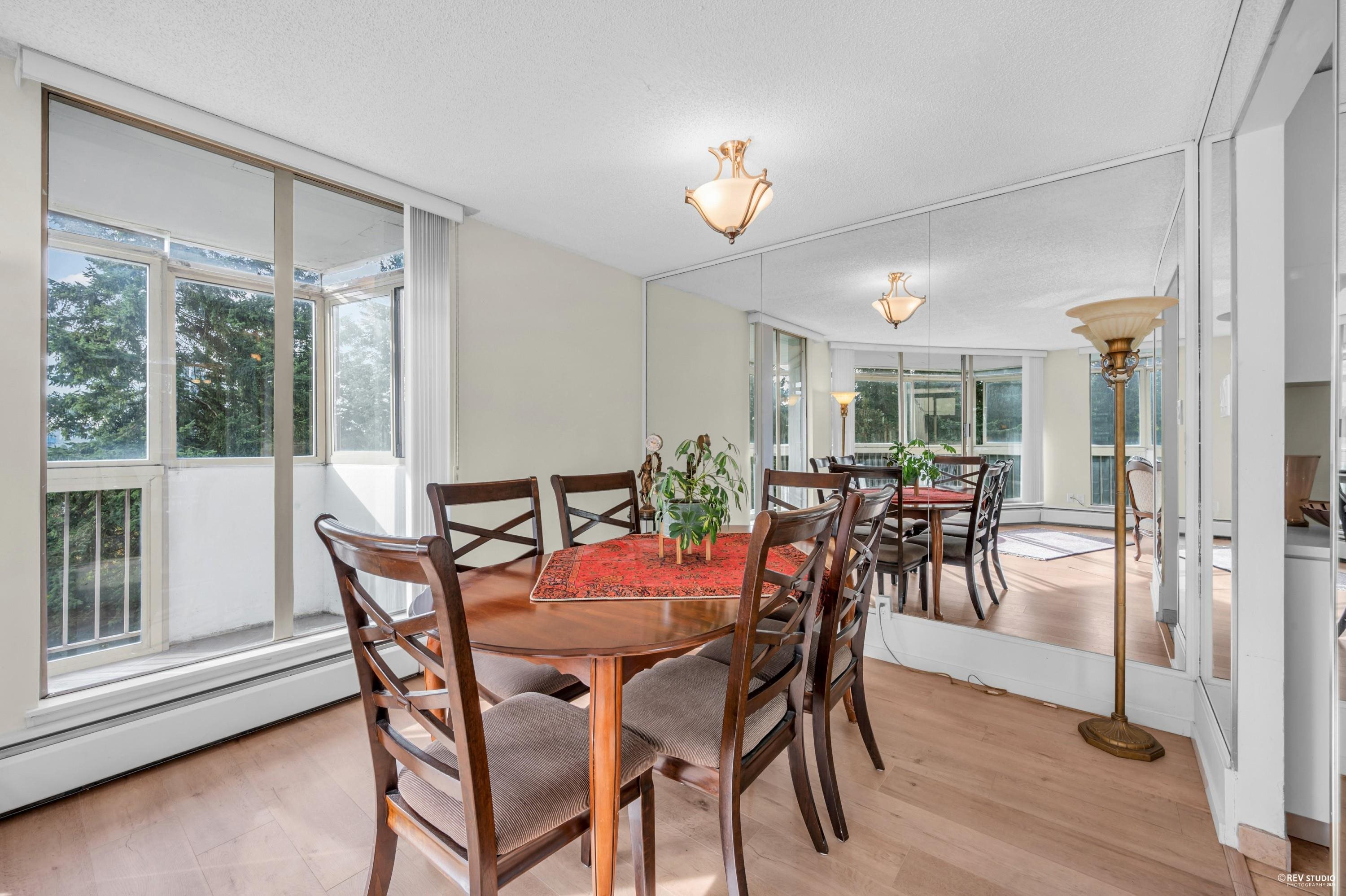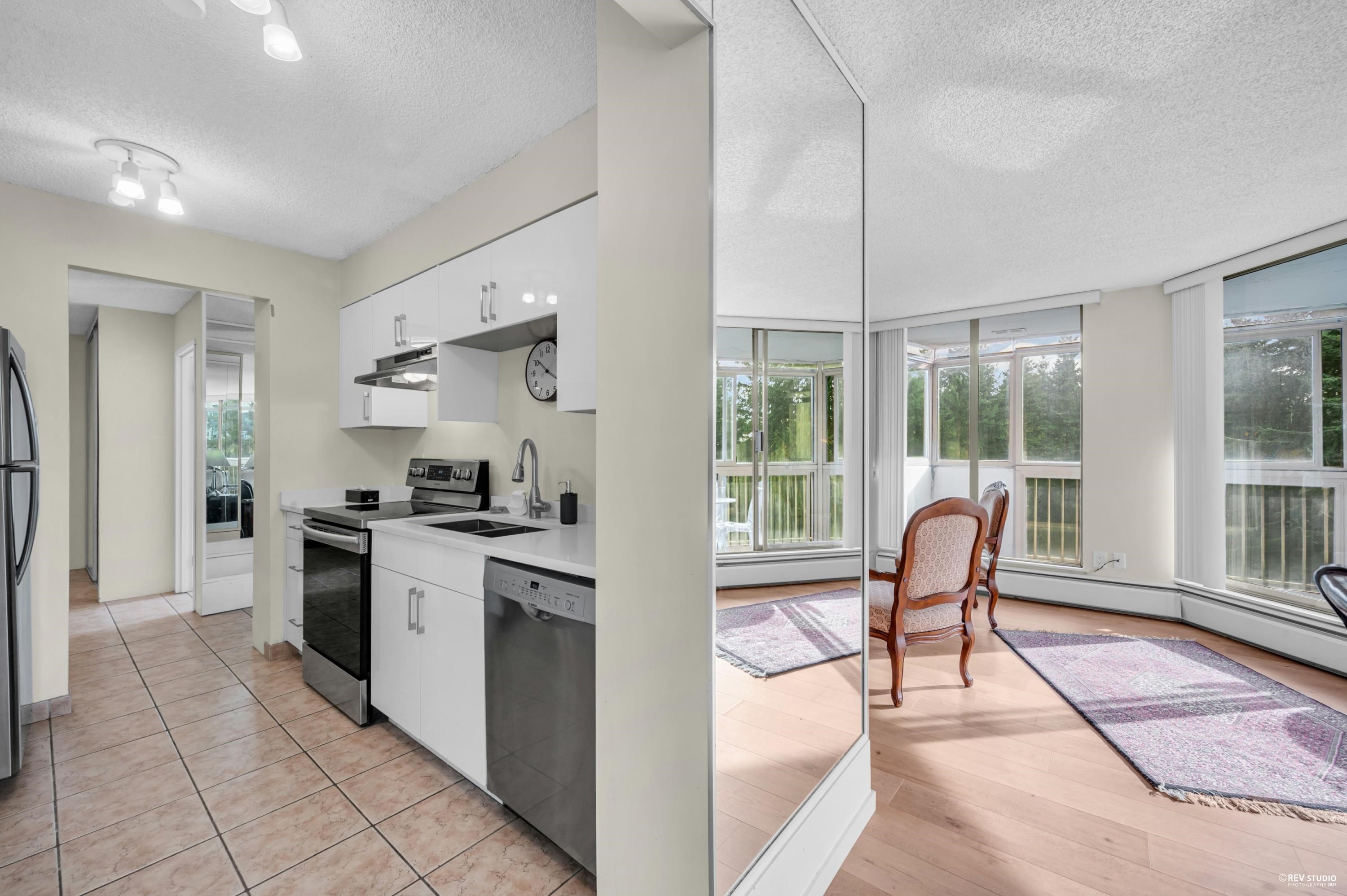 Rare southeast corner suite in the prestigious Capilano Building! Bright 2-bedroom, 1.5-bath home on the 8th floor with a wrap-around balcony and gorgeous garden views. A great outlook. Recently upgraded with a new kitchen, laminate flooring, tiles, appliances, and bathrooms. The in-suite storage room can be used as an office. Well-maintained building with recent updates to the roof, plumbing, elevators, and parking area. Resort-style amenities in a highly desirable location.