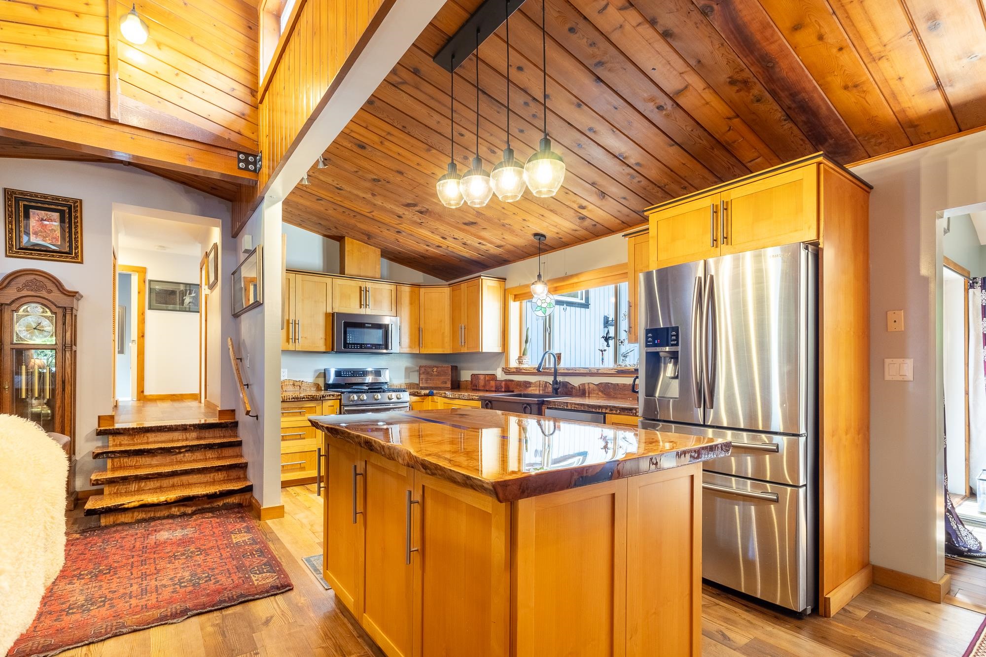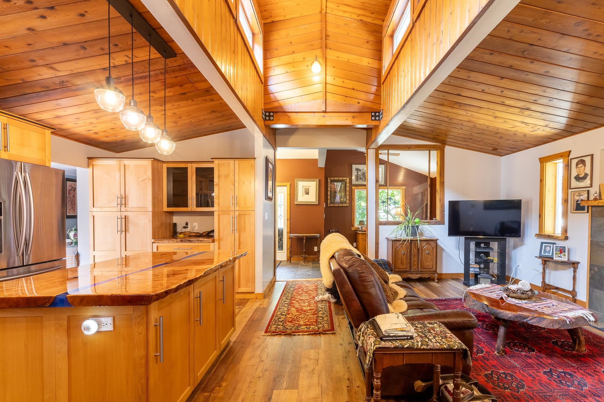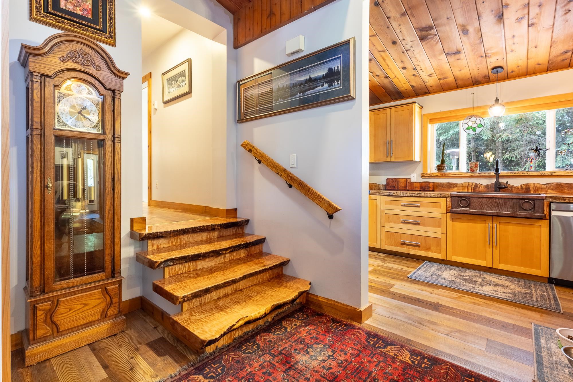 Tucked away on a fully private, flat ½-acre lot, this spacious 3–4 bedroom rancher offers peace, comfort, and room to grow. Inside, you'll find beautiful handcrafted custom wood finishes, such as live edge kitchen island countertop and staircase, 3 cozy gas fireplaces, and in-floor heat in the bathrooms. The versatile lower level is perfect for guests, a home office, studio or media room. Step outside to a spacious and private sunny deck with hot tub—ideal for entertaining. A detached double garage offers p...