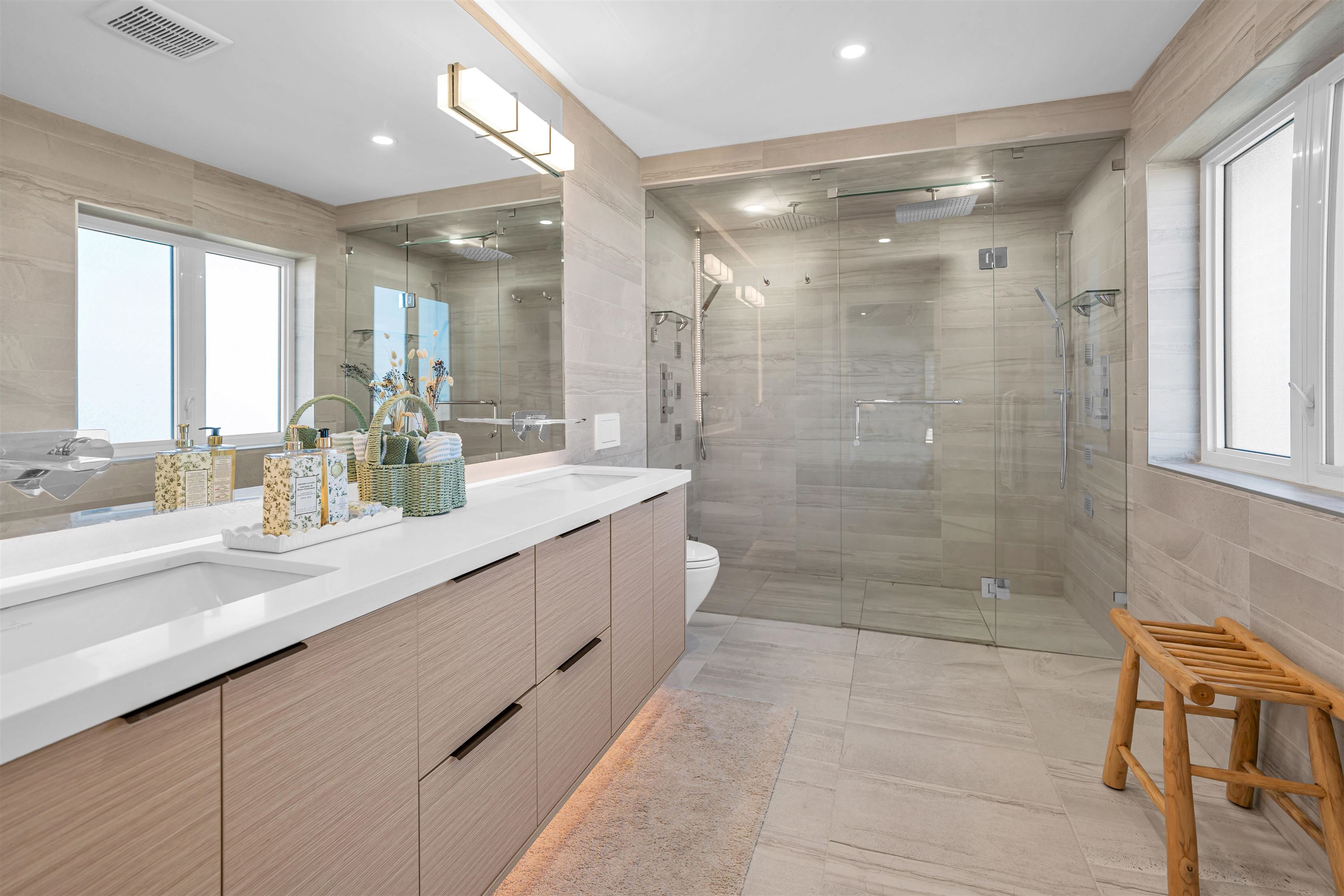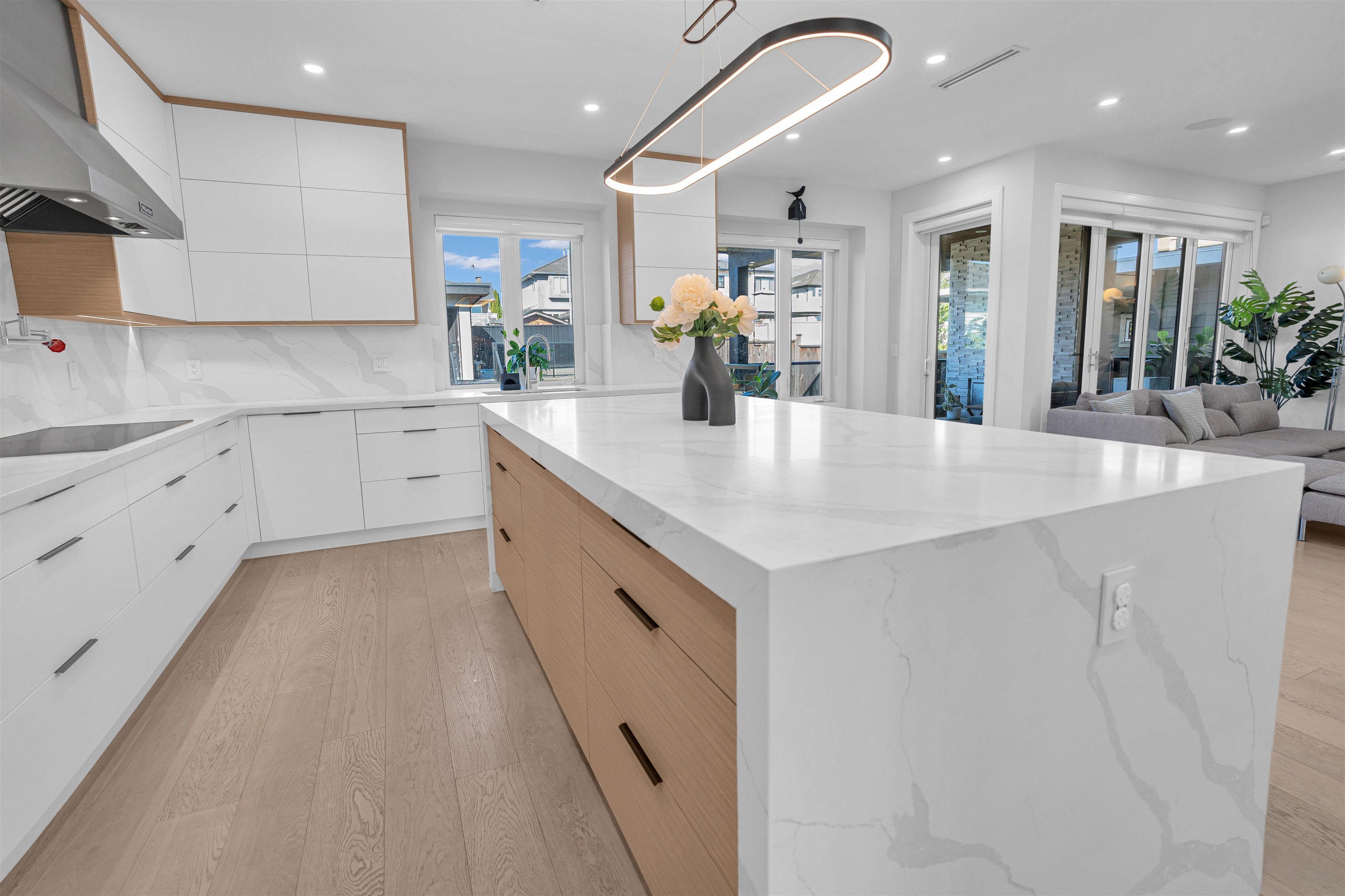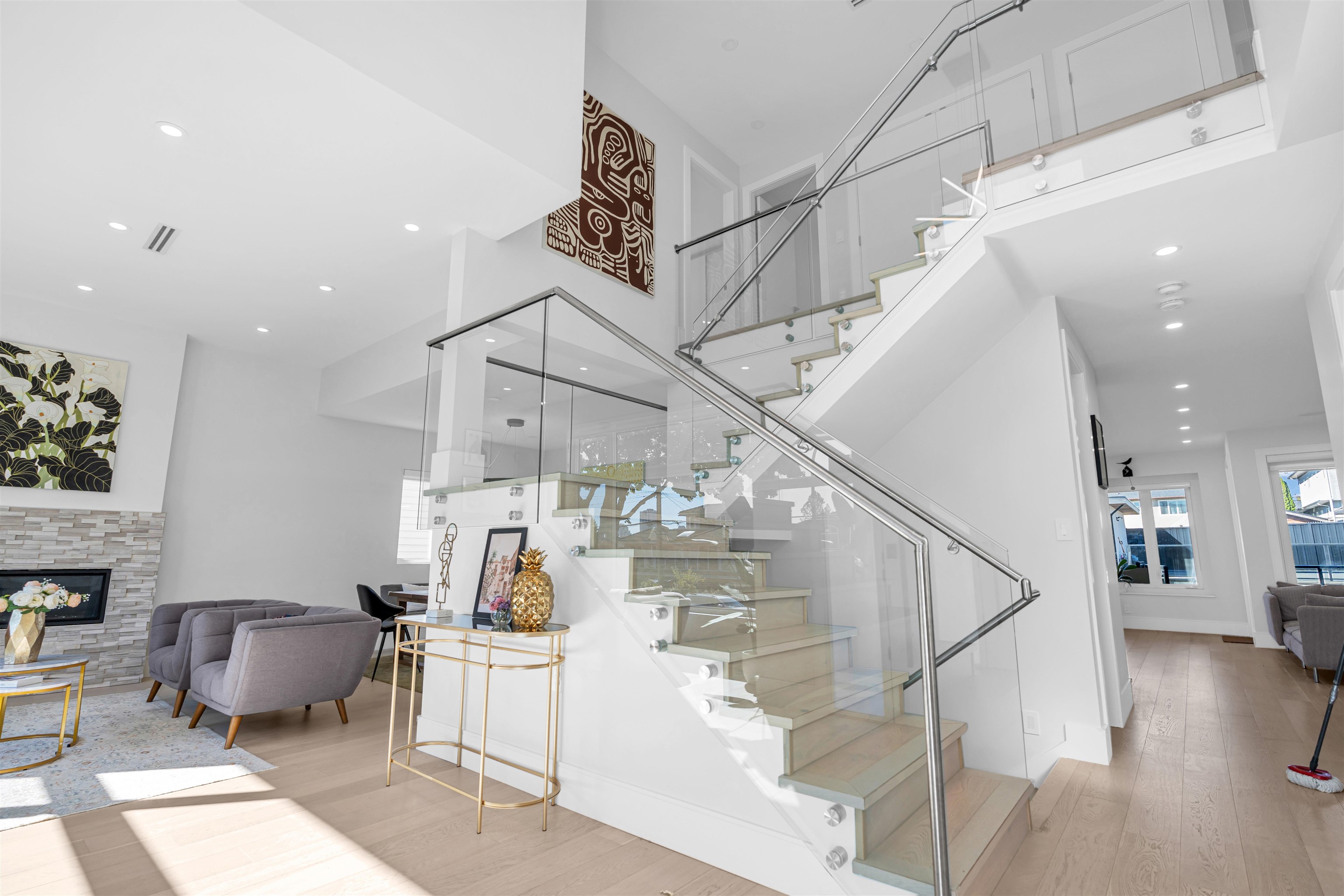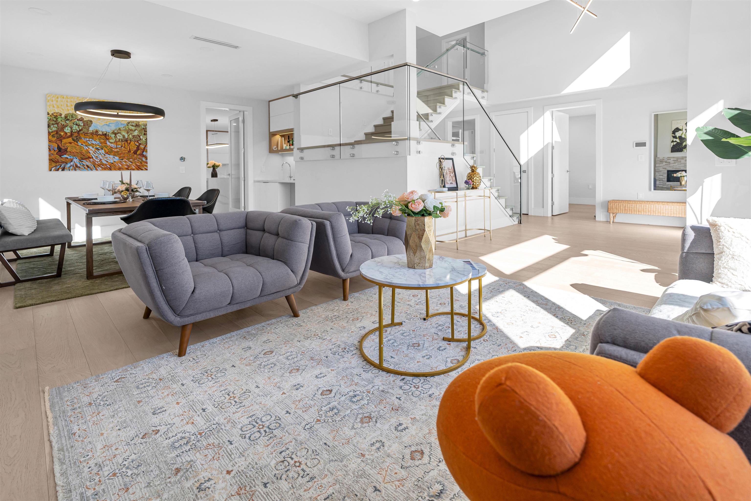 Extraordinary custom-built home offering over 4,500 sq.ft. of luxurious living space! Features 6 bedrooms, 6 bathrooms, potential for 8 bedrooms, and 3 kitchens including a 2-bedroom legal suite and soundproof media room. Exceptional craftsmanship with grand foyer, glass staircase, Miele appliances, and modern cabinets by Attractive Kitchen Cabinet Ltd. Family room opens to an entertainment-sized deck with outdoor fireplace. Includes radiant heat, A/C, HRV, central vacuum, Nest temperature control, EV charg...
