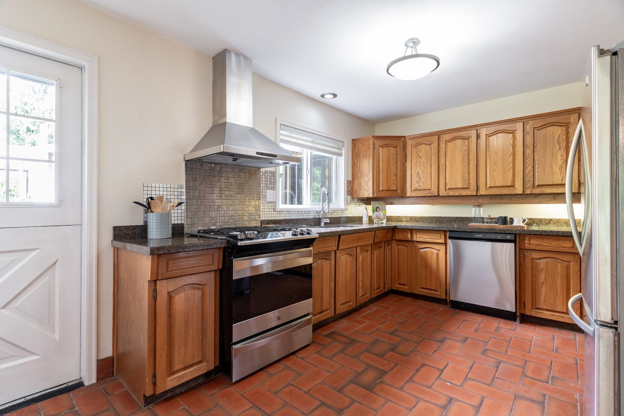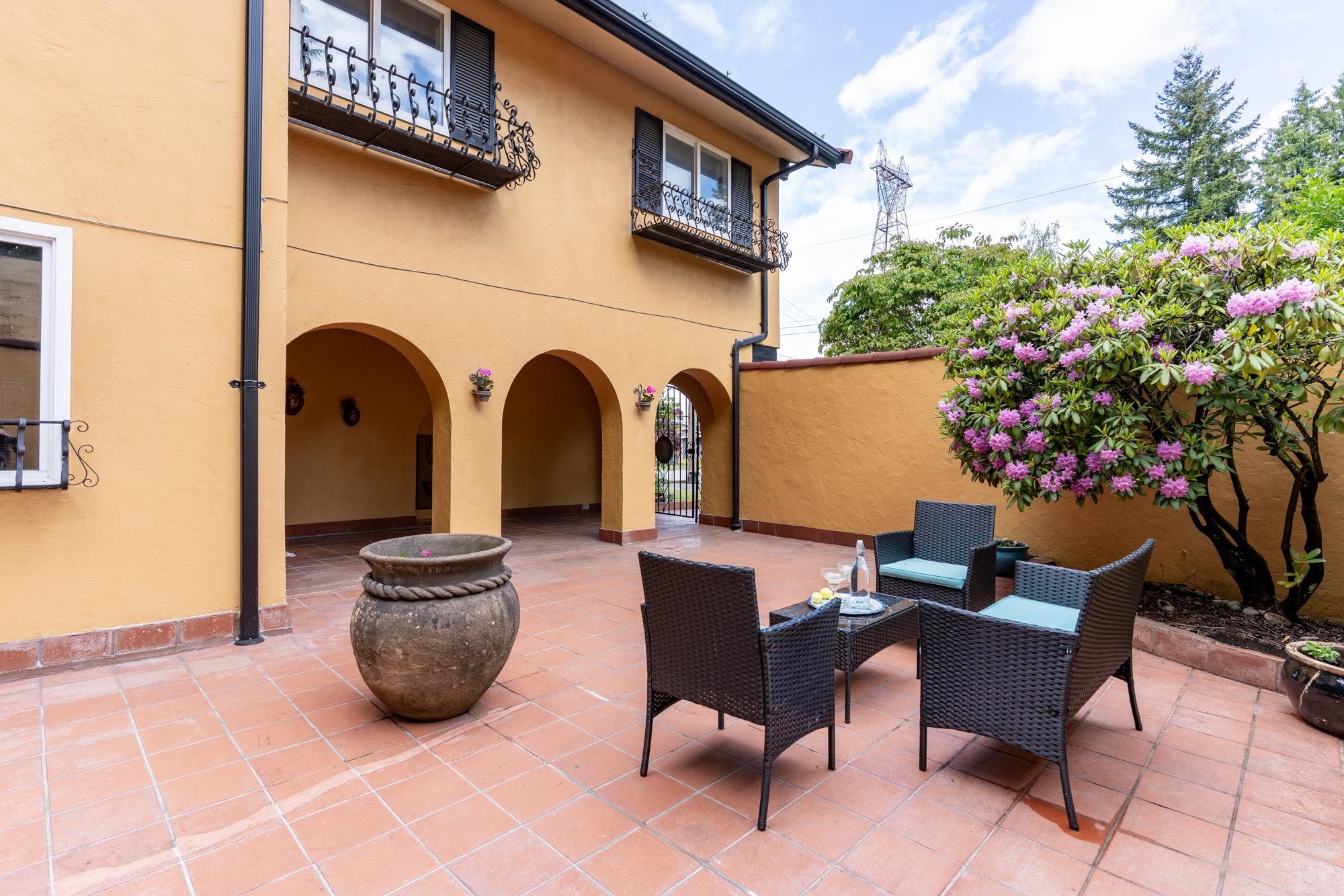 Over 2800 sqft offers lots of space, including the option of a main floor primary, seperate SUITE or home business. Spacious & bright, this beautiful home sits on a large 9150 sqft (75x120) ravine lot.The unique architecture offers a European feel, with vaulted ceilings, archways, skylights, & elegant design throughout.Enjoy a resort-like yard with sunny south exposure, multiple decks, patios, courtyard & views of the Fraser River & North Shore Mountains.The kitchen features oak cabinetry, granite counters,...