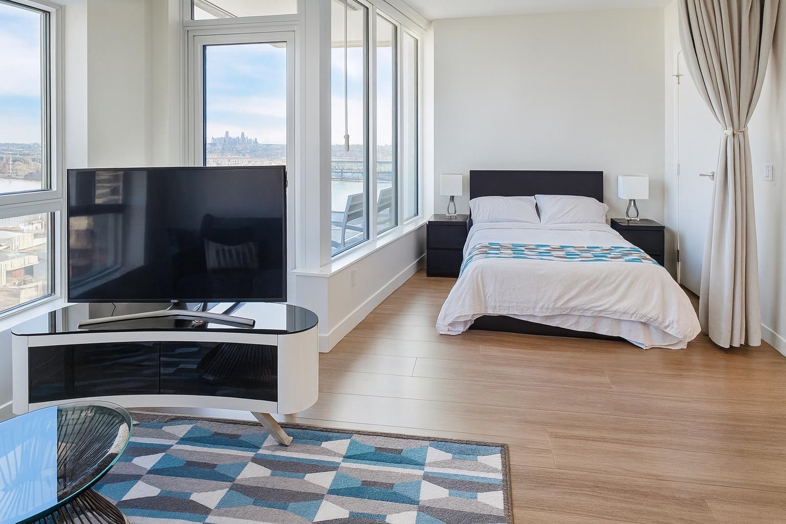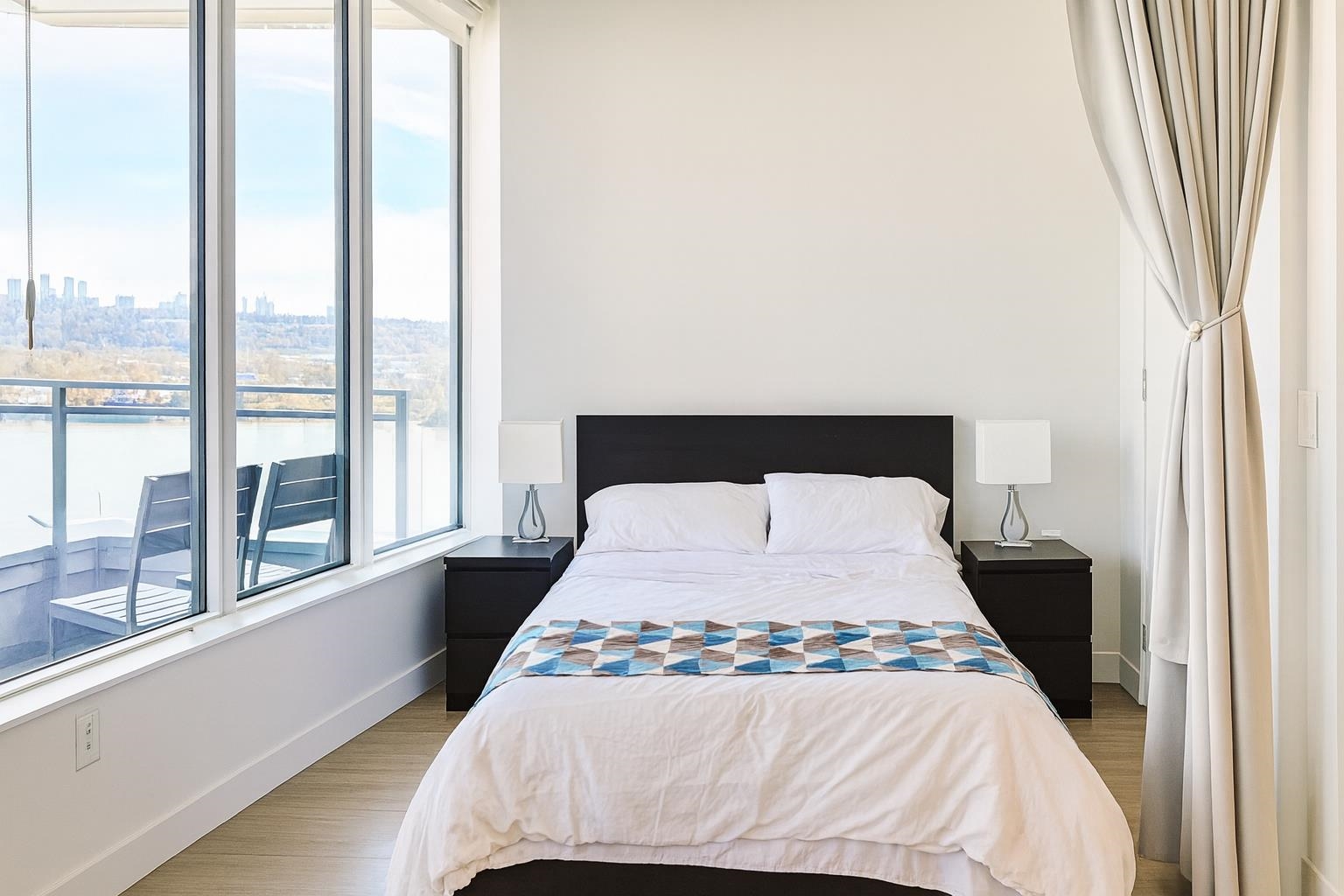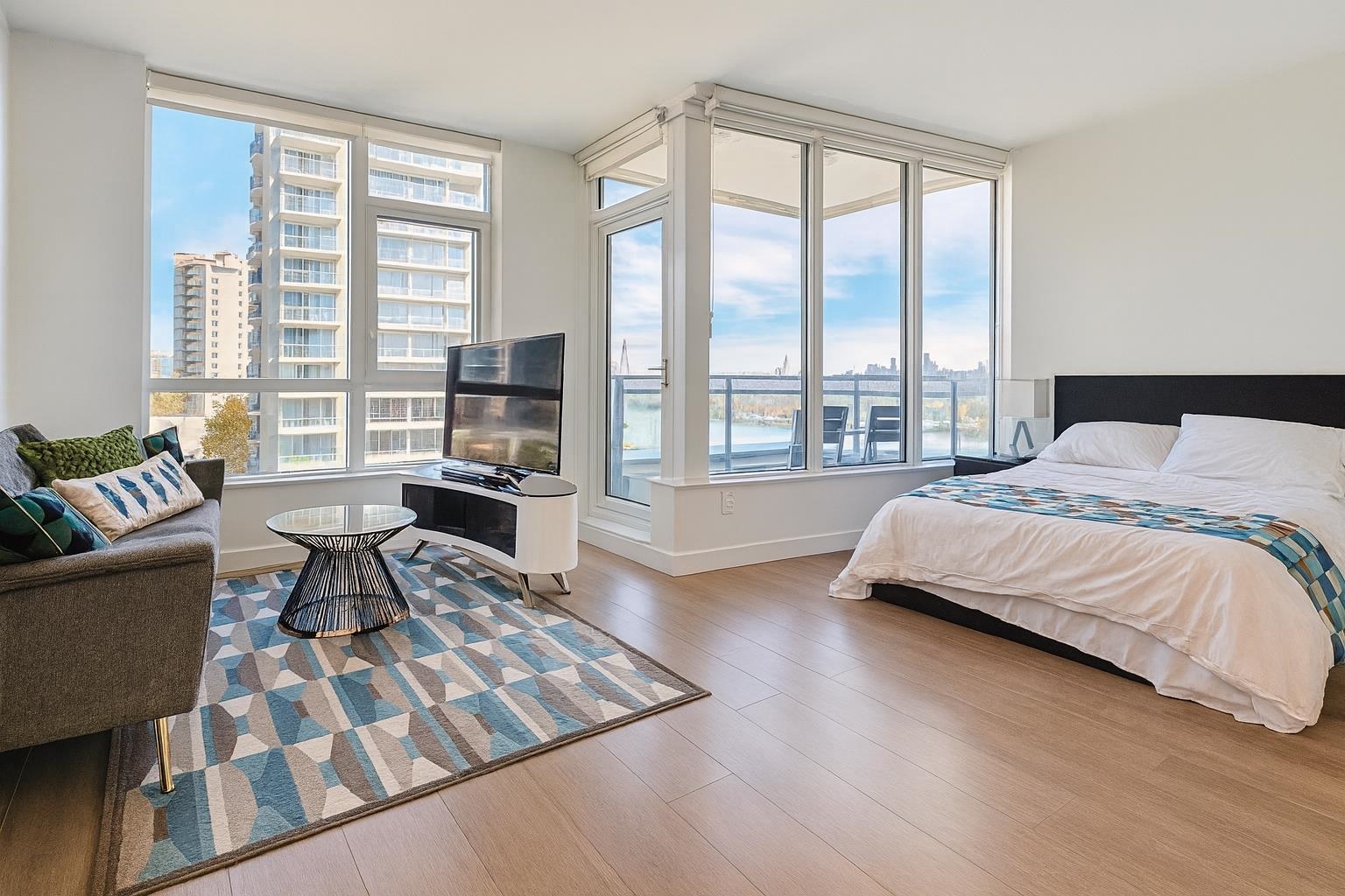 This 2024 built East facing Studio is fully furnished with modern furniture in the Downtown New Westminster neighborhood. This 461 sqft. suite offers an open plan studio + 1 bathroom with a river and city view Step inside and admire the elegant laminate floors, quartz countertops, and high end appliances in the kitchen. Enjoy breathtaking bridge and water views from the comfort of your own home. Stay comfortable year-round with air conditioning and take advantage of the amenities available in the building. ...
