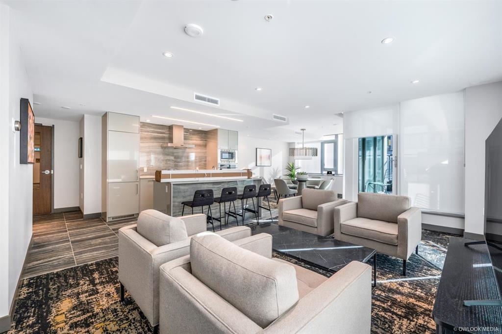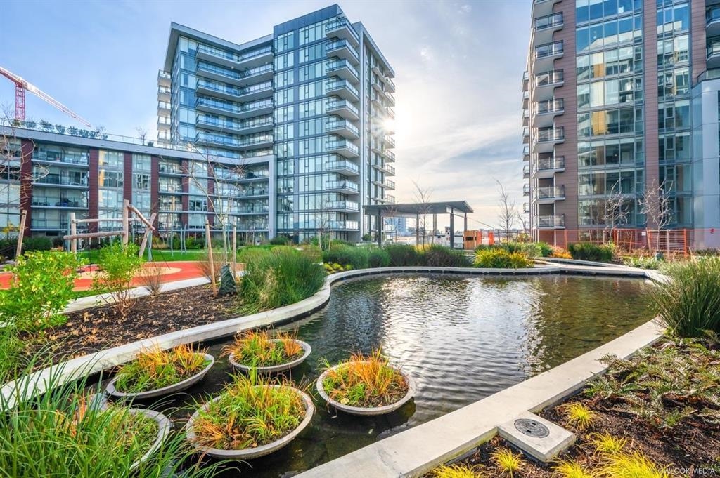 This South-East facing spacious 1 bedroom and Den in a concrete building sits on one of the largest Water Front developments by ViewStar, view of city and mountains. 8'8 high ceiling, open floor plan, engineered hardwood floors, high-end cabinetry, Miele integrated fridge & freeze, Miele stainless steel gas cooktop, Quart countertops & backlash, air conditioning. Enjoyment of Clubhouse, indoor swimming pool, Gym, Sauna & Hot tub, Study room w/ WIFI & charging, music & dance studios, playground, rooftop gard...