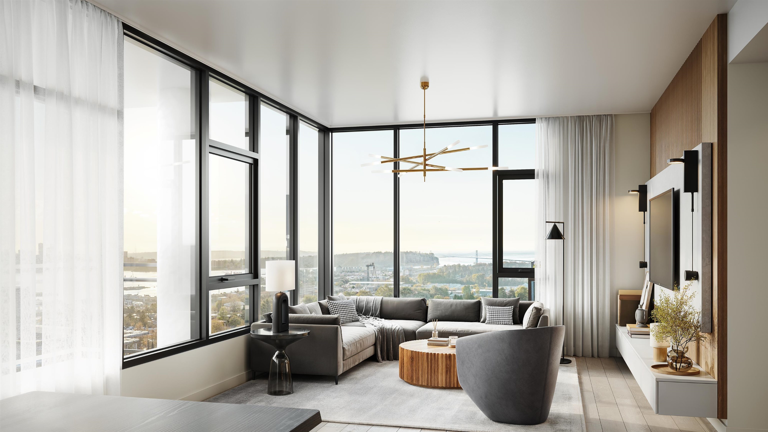 WATER VIEW! This 3 bed, 2 bath corner home is part of Polygon's Elle, a collection of concrete apartment residences located off 15th and Lonsdale in North Vancouver. Enjoy 1, 335 sq. ft. of living space boasting expansive windows, rich engineered wood flooring and a generous deck. The kitchen offers a large central island with overhang and wine fridge, engineered stone counter tops, and integrated appliances. The main ensuite boasts a spa shower with bench and luxurious soaker tub. Maintain an ideal interio...