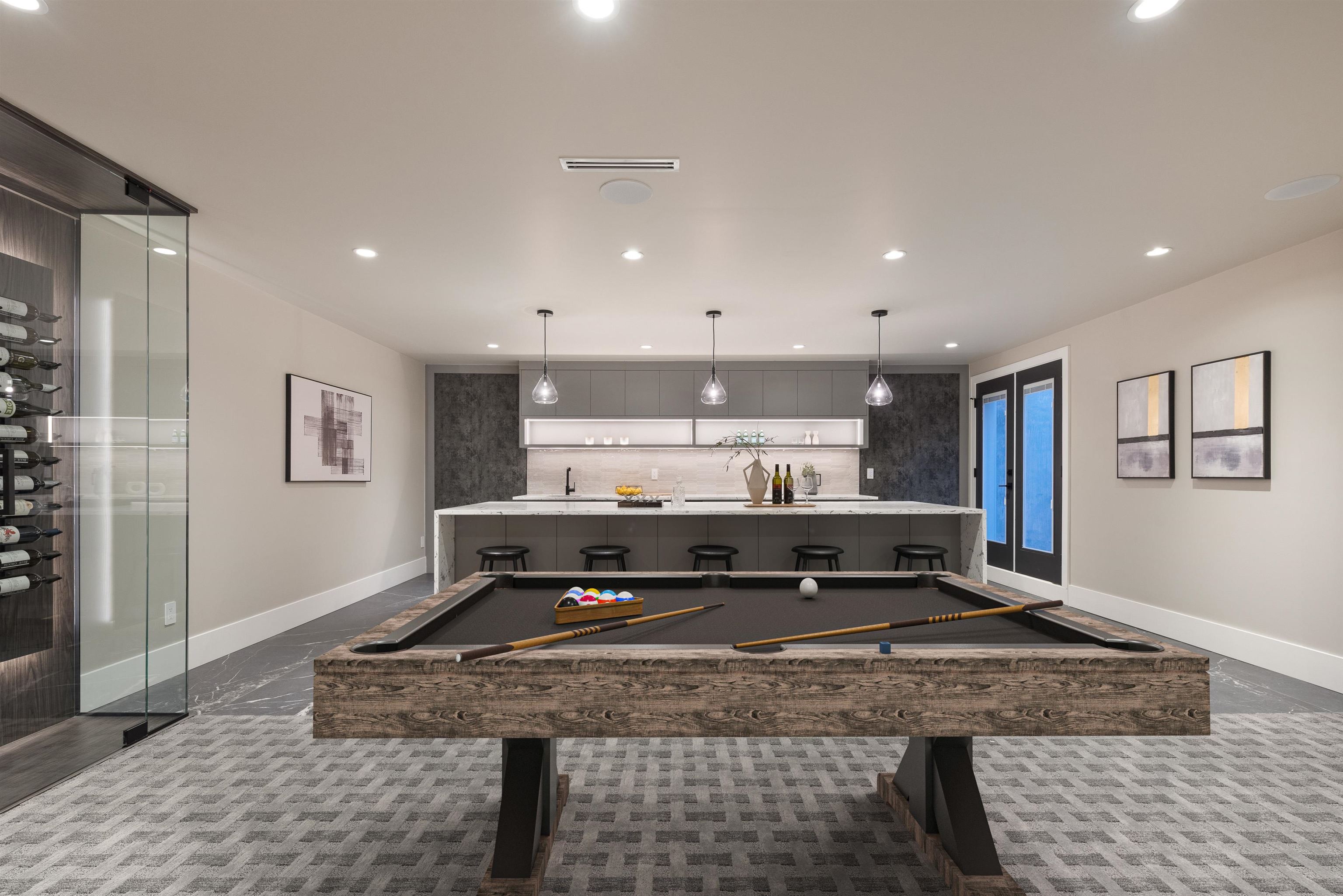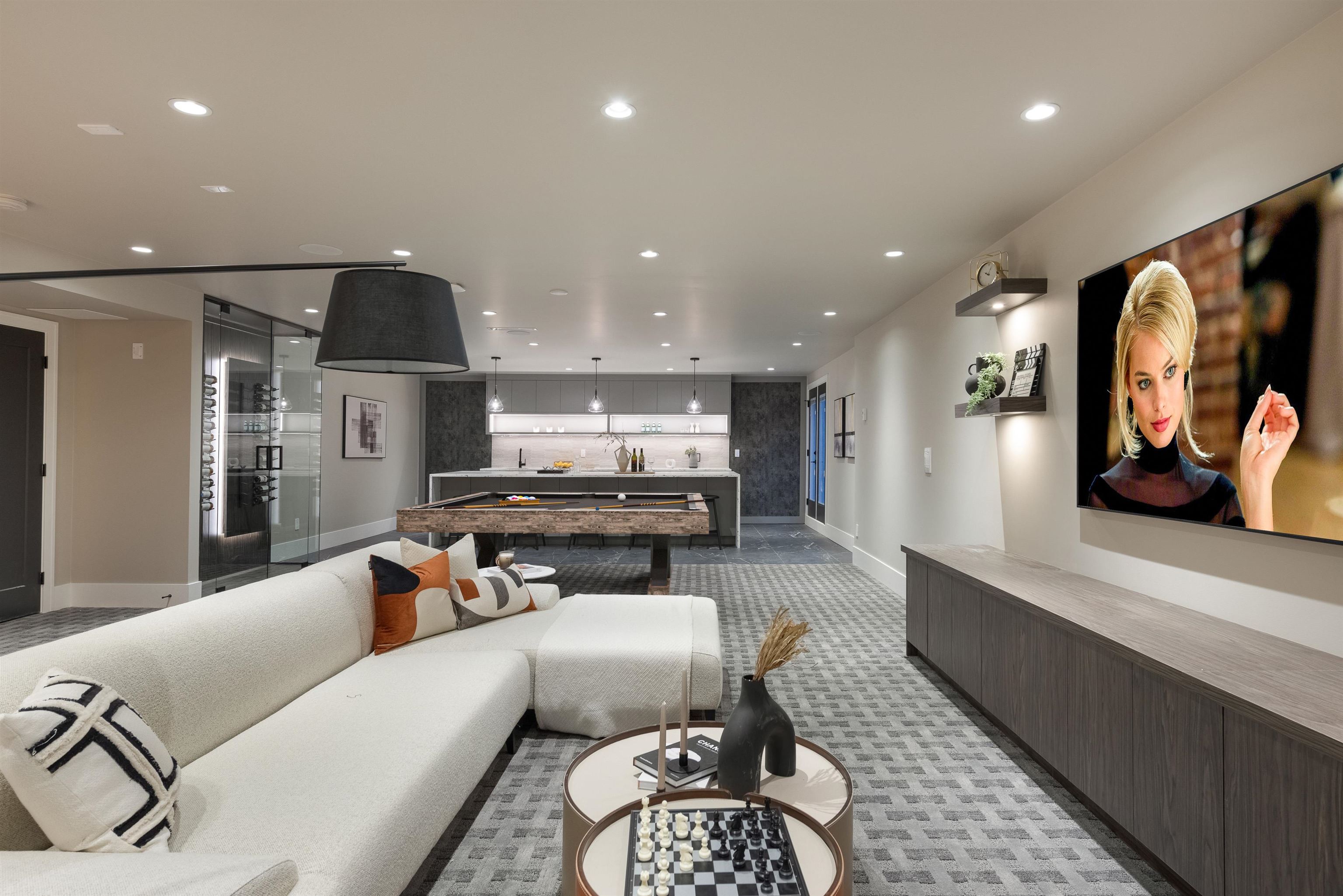 A statement of luxury and elegance. Situated in a private enclave in coveted Harbour Chines this 5600 SF designer masterpiece is located on an RARE 11,000 SF green belt lot. Bespoke interiors marry a classic warm palette with marble details for a timeless aesthetic. Main floor delivers an exceptional kitchen w/custom millwork and large 11 ft marble island. No detail has been missed with seamless integration of ID/OD living overlooking the picturesque greenbelt. Upstairs, presents a hotel like setting with l...