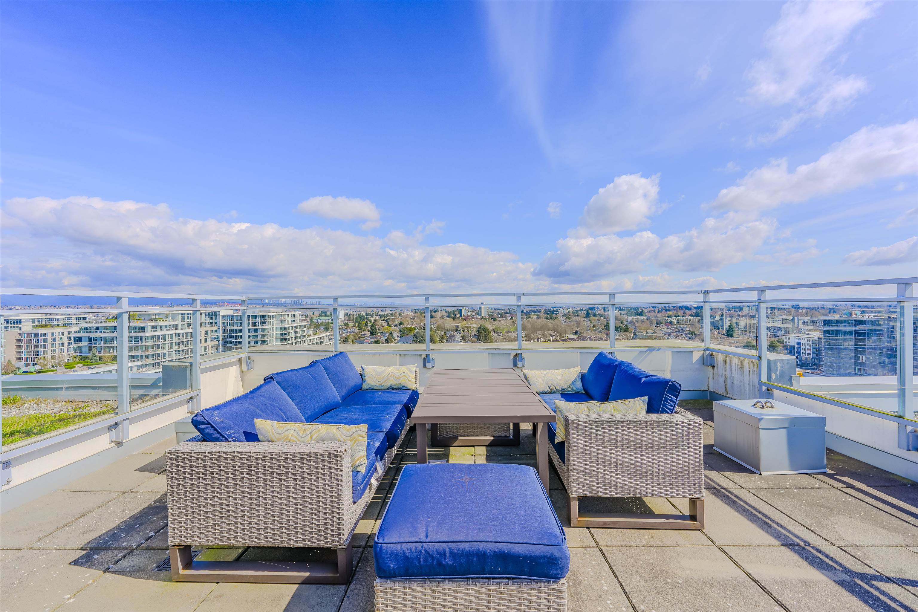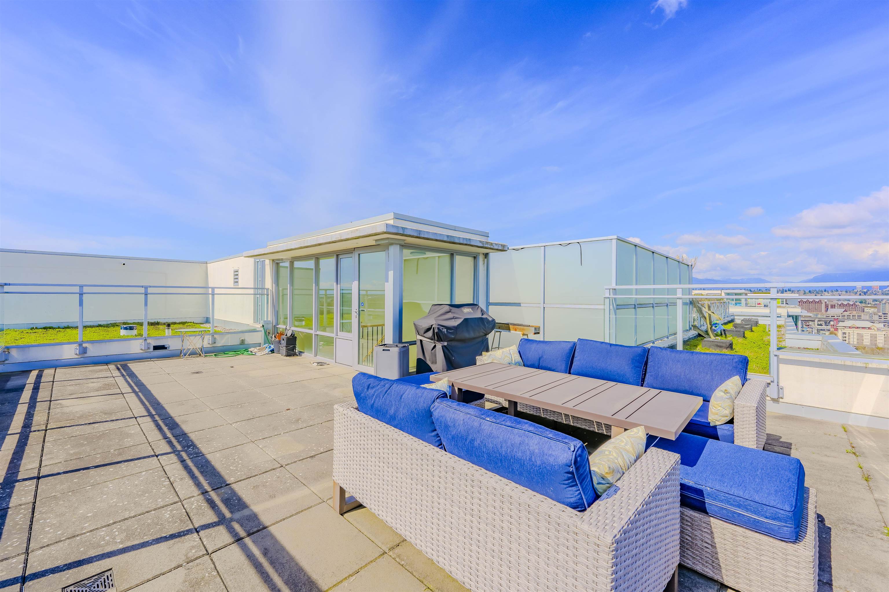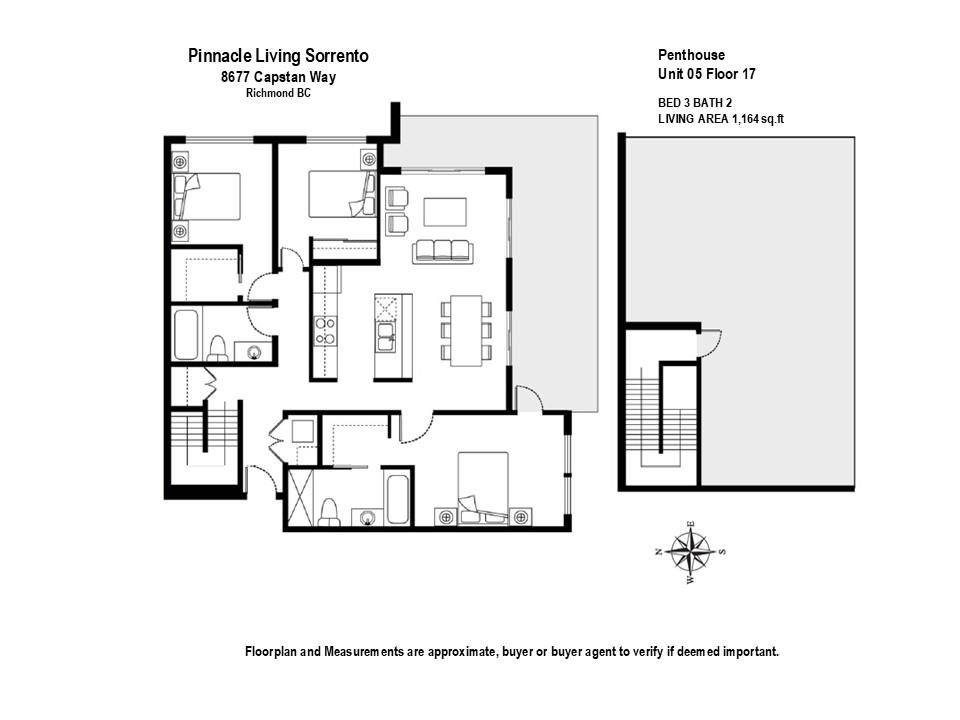 True hidden gem rarely available on market to own this exclusive PENTHOUSE at Capstan Village by Pinnacle! This South-Easting facing penthouse home feature 1164 sqft of modern living area with 3 spacious bedrooms, 2 bathrooms, and double parking stalls next to elevator. Two private outdoor spaces: a 280 sqft wraparound balcony off the living room plus a spectacular 560 sqft rooftop terrace with unobstructed views of north shore mountains, ocean and fast-growing cities, perfect for entertaining or relaxing. ...